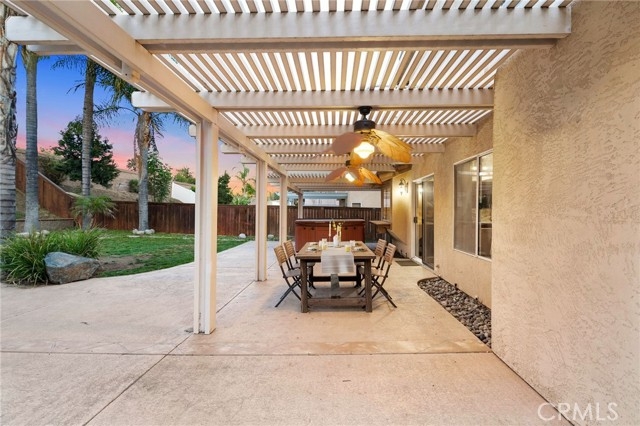 Welcome to 25220 Corte Sombrero, a captivating solar home nestled in the sought-after community of Alta Murrieta. This Spanish architectural gem is set on a generous 6,970 square foot lot with 1,725 square feet of living space, three bedrooms and two and a half bathrooms. As you approach this residence, you're greeted by inviting tropical landscaping. Upon entering, the openly flowing formal living room enchants with vaulted ceilings and large windows that bathe the space in natural light. The dining area continues this open concept design, complemented by newly installed wooden flooring for an added touch of elegance. Adjacent to this area is a cozy family room featuring a warm gas fireplace - an ideal spot for relaxation or casual entertaining. Just steps away lies the beautifully updated kitchen; equipped with stainless-steel appliances, a gas stove, quartz counters, stacked stone backsplash, and modern light fixtures. The outdoor space further enhances the allure of this property. Imagine hosting memorable gatherings in your private grassy backyard which is large enough to accommodate a pool. An outdoor kitchen with stainless steel BBQ and mini fridge makes for effortless entertaining while the latticed patio with ceiling fans ideal for setting a breeze during hot summer nights. Retreat upstairs to find the oversized primary bedroom offering vaulted ceilings and a spacious walk-in closet. The en suite bathroom provides a sanctuary for relaxation with its soaking tub, step-in shower, and dual sinks. Additional features of this home include a 2-car garage, extra wide driveway, new vinyl fencing, laundry area and Jack & Jill bathroom, no HOA and low taxes. Conveniently located near I-215 and various shopping outlets, this home also benefits from being part of Murrieta - one of Southern California’s most desirable cities known for its excellent schools system and abundant recreational opportunities including hiking trails, parks as well as numerous golf courses and wineries. This home offers a unique blend of comfort and style.
