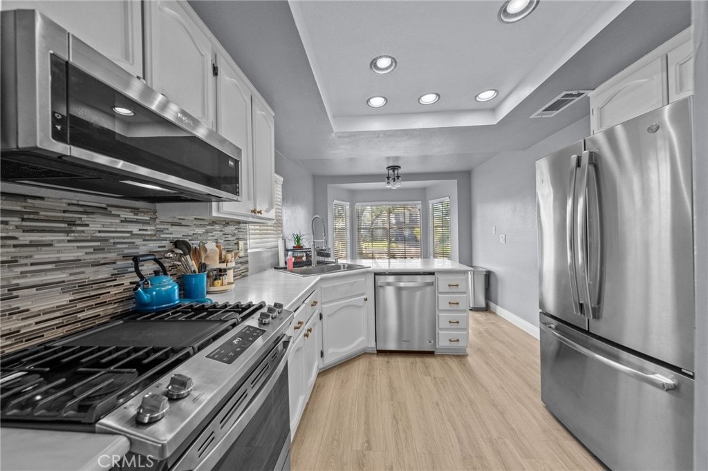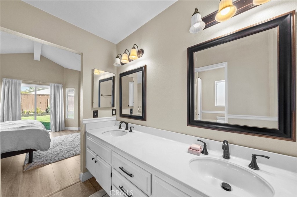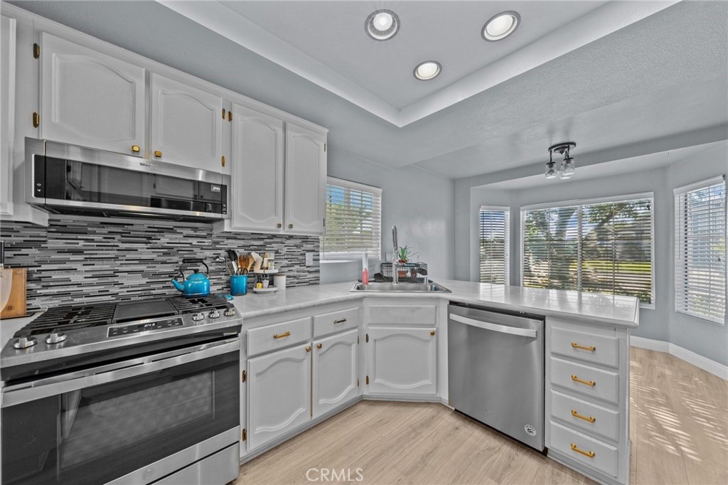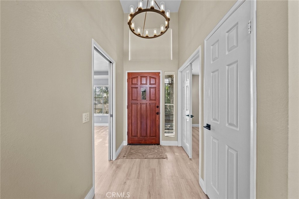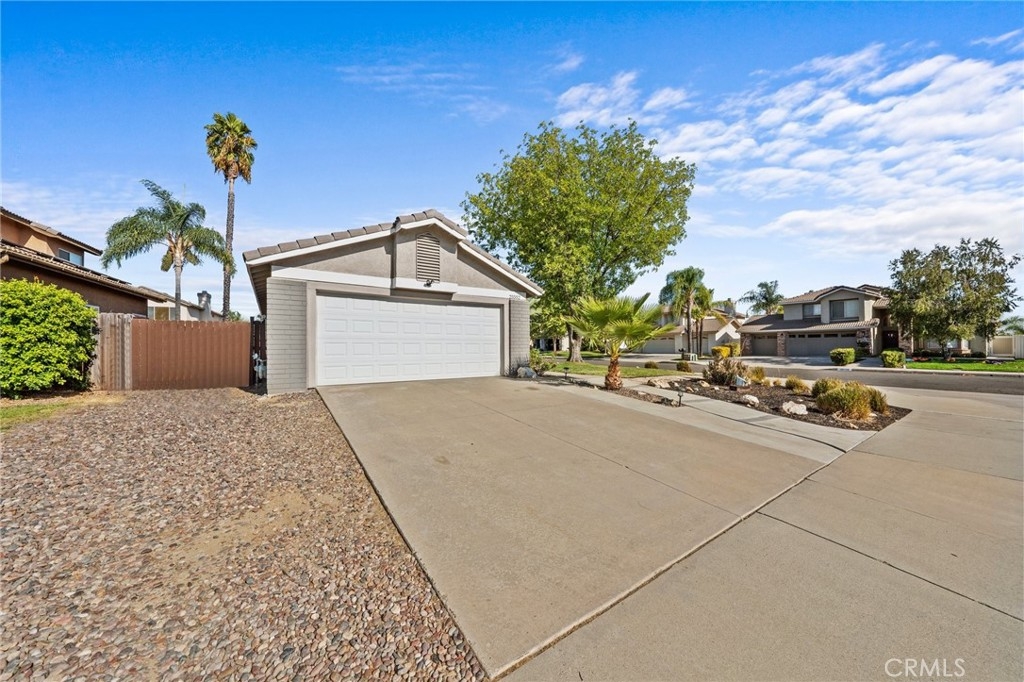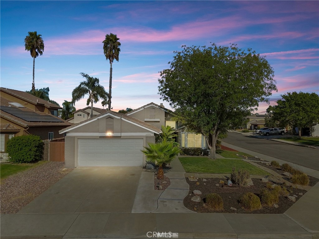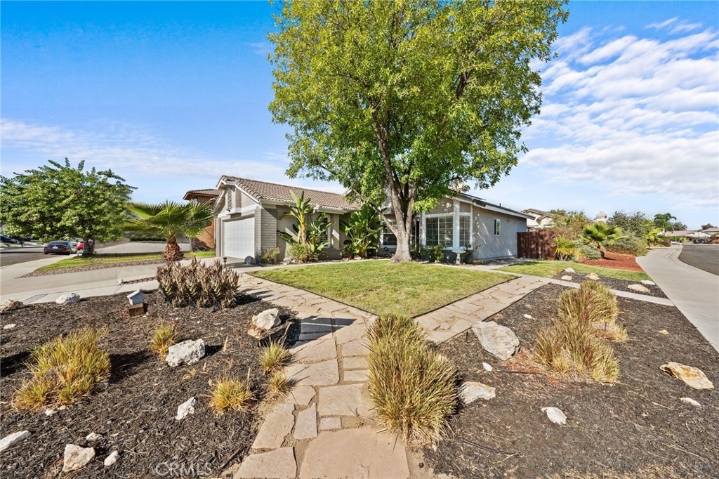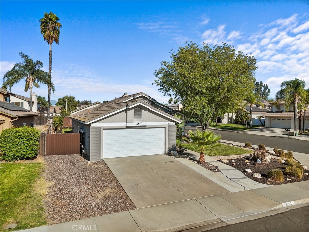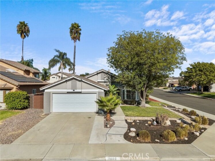 SOLAR | NO HOA | LOW TAX | REMODELED BATHROOM | UPDATED KITCHEN | CORNER LOT | You have A R R I V E D!! Welcome to this charming single-story home located on a corner lot in Murrieta, just off Whitewood Rd. This beautifully maintained home features freshly painted baseboards and updated light fixtures throughout, giving it a modern and inviting feel. As you enter, the first bedroom greets you to the left through elegant double doors. This room includes a closet with stylish sliding barn doors. Conveniently located next is the access to the two-car garage, which includes laundry hookups for easy living. Down the hallway, you’ll find a cozy bedroom and a tastefully remodeled full bathroom. The primary bedroom is a true retreat, featuring a newer sliding glass door that leads to the backyard. You also have en-suite access through sliding barn doors to a full bathroom with dual sinks. Back down the hallway, you’ll step into the spacious family room with an adjacent dining area. The updated kitchen offers dimmable lighting for any mood, along with an additional dining space that features three bay windows overlooking the front yard. From the family room, you’ll find another glass sliding door that opens to the private backyard. The backyard is complete with a durable aluminum patio cover, spacious lot with lush grass, and both plum and apple trees. This home is located in a quiet, family-friendly neighborhood, close to highly rated schools, shopping, dining, and with easy access to both the 215 and 15 freeways, as well as the Temecula Valley. This home has the perfect blend of comfort and convenience! You don't want to miss this one- schedule your tour today!
