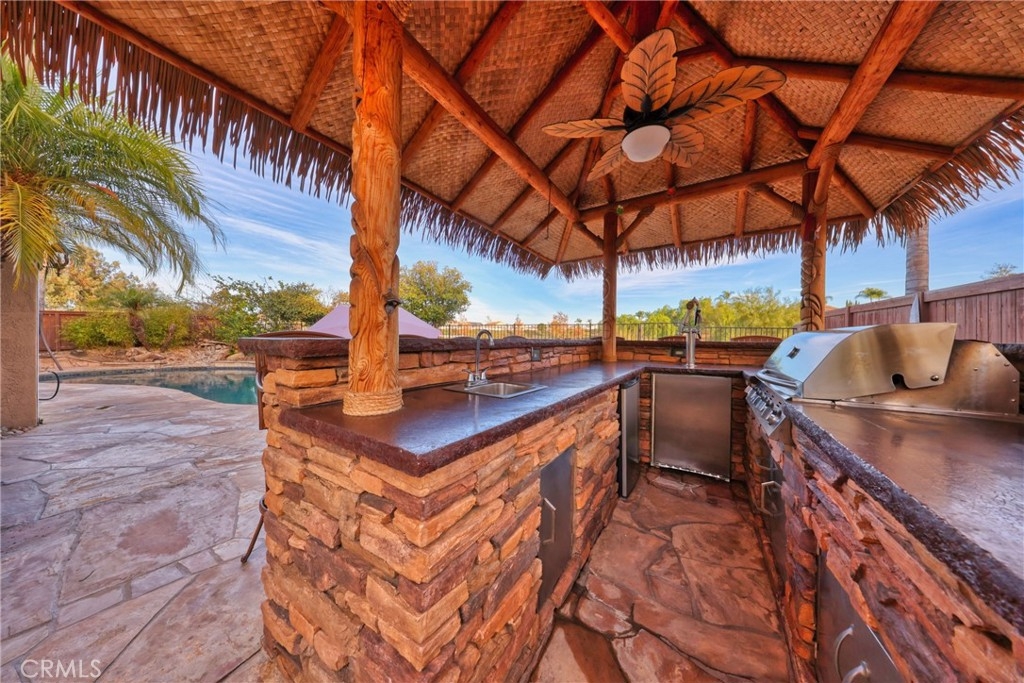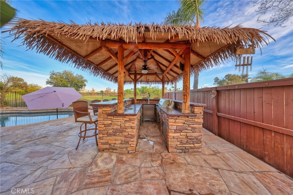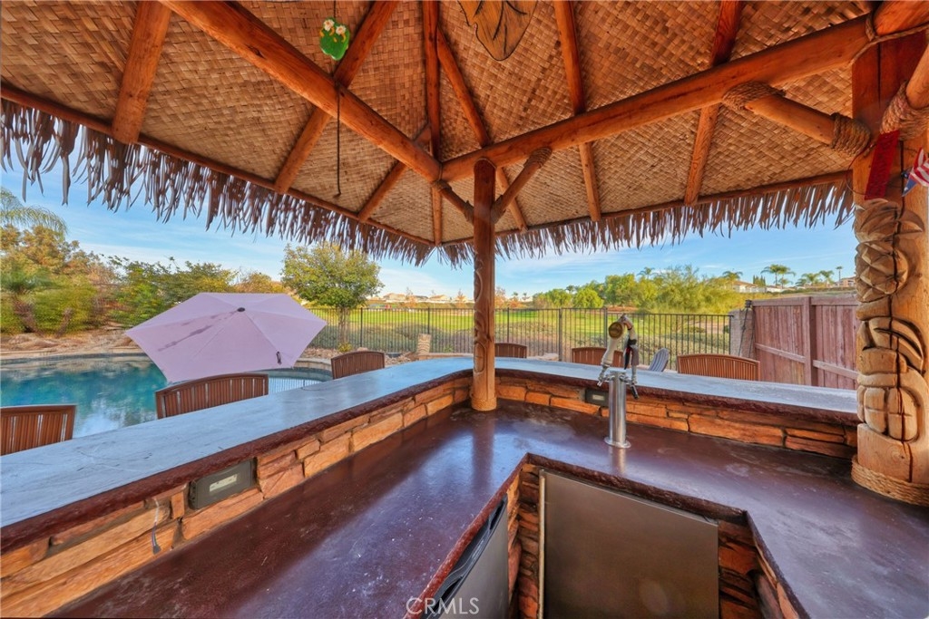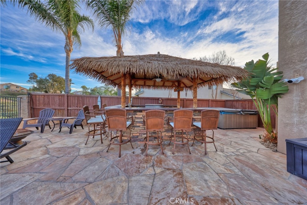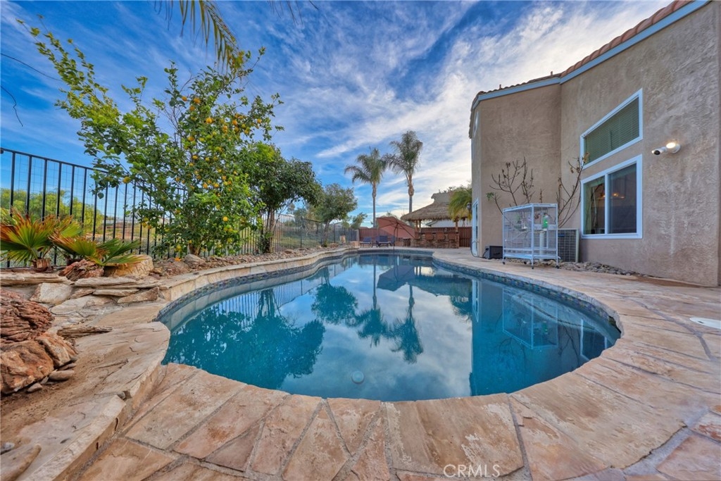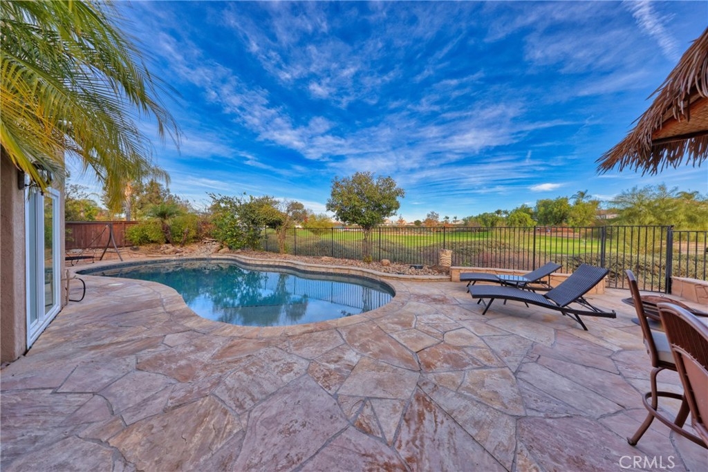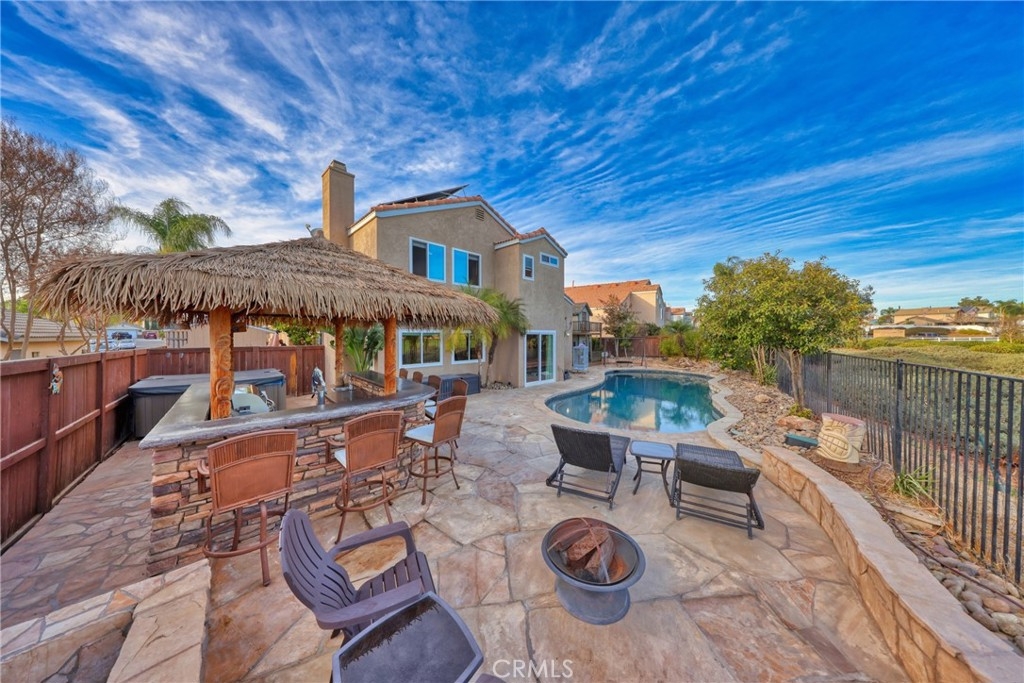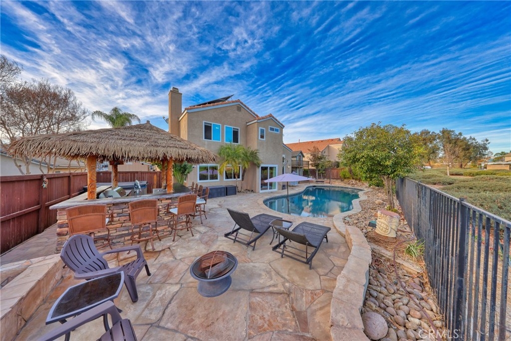 Spectacular Upgraded Alta Murrieta Community POOL HOME with LOW TAX + NO HOA or MELLO-ROOS! PAID OFF SOLAR & SECURITY SYSTEM! Begin the New Year in Style! Yes, Indeed! This solar powered home boasts 2,010 square feet of living space, 5-bedrooms, 3-bathrooms, 3-Car Garage with upgraded Epoxy flooring, high ceilings, and an open floor plan with tons of natural light, NEWER WINDOWS throughout with heat reflective tint in Primary Bedroom, Newer glass doors in main bathroom and downstairs bathroom, granite countertops in all bathrooms and kitchen with breakfast bar, PAID OFF top-notch Security Alarm System + Cameras, upgraded ceiling fans in all upstairs bedrooms, equipped with Whole House Fan, Newer mirrored closet doors in secondary bedroom, large private backyard with view gate overlooking Rancho Acacias Park, a NEW gas & solar heated sparkling Pool with waterfall and solar featuring a Baja shelf and umbrella holder, 7-seat above ground Spa with built-in blue-tooth speakers, equipped and entertainment ready with a must-see Tiki Bar with 5 Burner BBQ, double tap kegerator with kegs, sink, fridge and ample storage with a concrete countertop, enjoy dinner under the stars this coming summer, completed with a desirable Palapa roof- an open-sided dwelling with thatched bamboo, in addition- a 2-story playhouse 6' ceilings built-in A/C with wrap around balcony for the little ones, and much more for sharing exciting family moments. 1-BEDROOM + 1 BATHROOM DOWNSTAIRS with Custom Oversized Tile Shower for Guest or Mother-n-Law Quarters, with Four Bedrooms Upstairs, one being the Primary Bedroom WITH FULL RETREAT SPACE that could be used as an In-Suite private Nursery, Gym, Office, TV or Reading Room. RV parking potential 11.5 x 40, wrought iron / wood gates and amazing brick work entry in the front yard, lovely planters, easy-to-maintain landscape and hardscape throughout the exterior of the home. The home also has a nice wood Tuff Shed 8 x 12 for Storage in the backyard and is located near Award Winning Schools, Shopping, Dining, with Distinguished City Hospital, Walking Trails, Murrieta Hot Springs, Los Alamos Hills Sports Park, Pond Park, The Golf Club at Rancho California, and easy 15 and 215 Freeways Access for Commuters. Just minutes away from Temecula Wineries. More Photos Coming Soon! Your perfect family dream home has arrived!