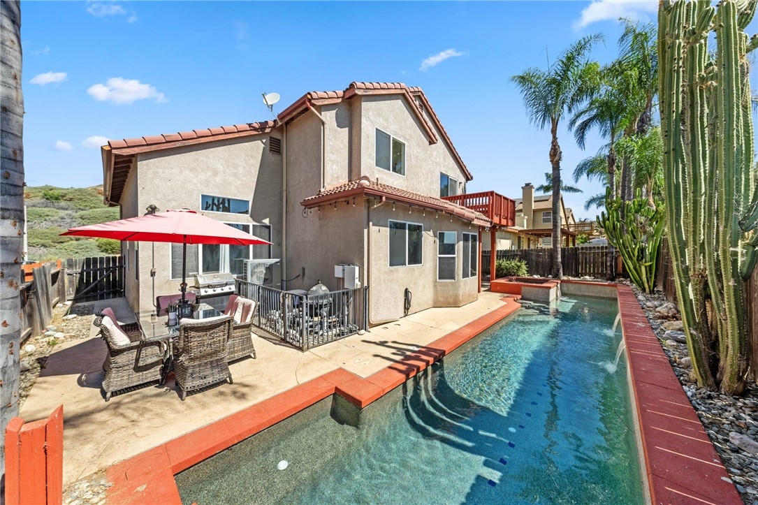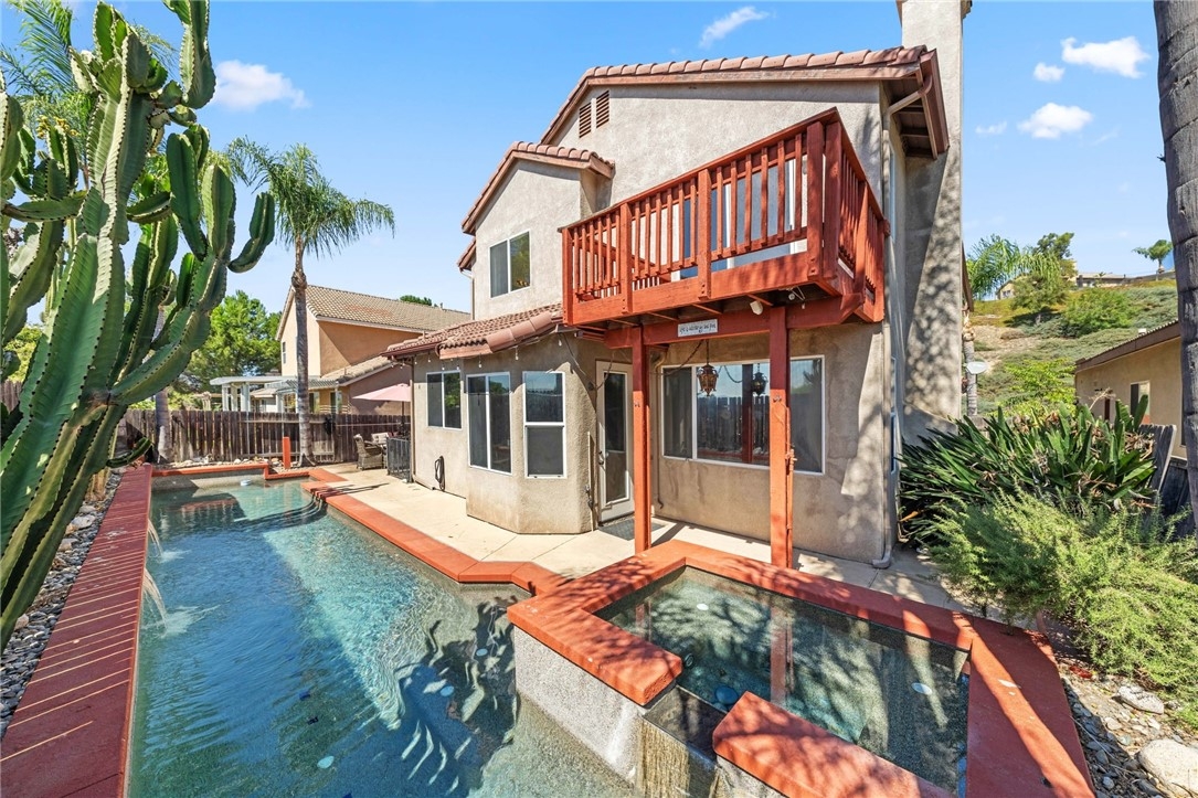 **GREAT ENTERTAINER** – Don't miss out on this INCREDIBLE opportunity to own a stunning pool home that boasts exceptional curb appeal, situated in the desirable heart of ALTA Murrieta. Just minutes from the 215 freeway, this prime location offers unparalleled convenience with access to top-rated schools and a variety of the best shopping and dining options in the area. This elegant two-story residence features an open floor plan that creates a warm and inviting atmosphere, enhanced by beautiful upgrades throughout. As you enter, you'll be greeted by a tastefully designed kitchen that has been thoughtfully upgraded to meet the demands of modern living, complete with stylish finishes and ample storage space. Beyond the kitchen, the versatile and highly sought-after downstairs bedroom provides the perfect solution for guests or multi-generational living. Step outside to discover an entertainer's paradise beneath the spacious patio, where you can host gatherings or enjoy peaceful afternoons by the pristine pool and luxurious spa. The outdoor space is designed for relaxation and fun, making it an ideal setting for summer barbecues or cozy evening get-togethers. Venturing upstairs, you'll find expansive bedrooms that offer comfort and privacy for family and guests alike. The highlight is undoubtedly the PRIMARY BEDROOM, a true sanctuary fit for a king. It features a private balcony that offers optimal views, perfect for enjoying your morning coffee or unwinding at sunset. ALSO featured in the Primary bedroom is an en-suite with a fireplace currently utilized as an office providing a perfect opportunity to work from home, blending functionality with luxury. In summary, this home is not just a place to live but a haven for entertaining and creating lasting memories. With its impressive features and unbeatable location, this gorgeous pool home is a rare find that you won't want to let slip away!