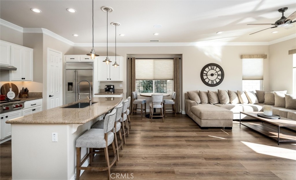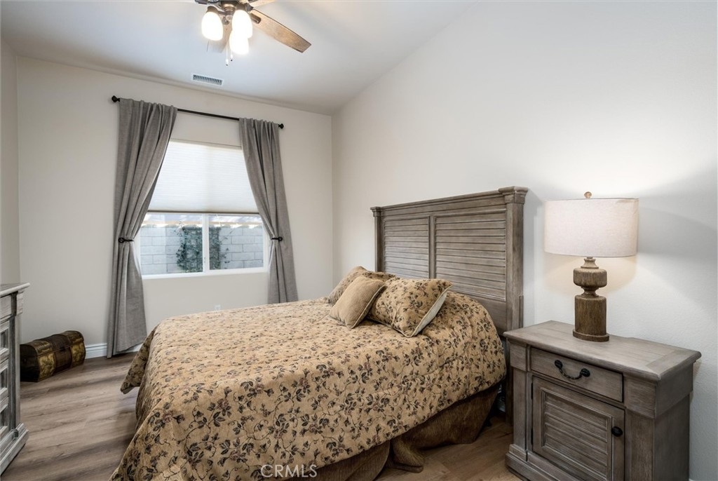 Located in one of Southern California’s premier gated golf course communities this stunning single level Bear Creek home has just undergone extensive renovations inside and out. Improvements began with top of the line LPV floors throughout the home which was followed by painting inside and out. The kitchen was remade with Wolf stove, oven and microwave and a Cove dishwasher. Cabinets were refinished in white and pull out drawers were added along with slow close doors. The family room was enhanced with custom cabinetry including lighting, a custom made fireplace door and surround sound system with flush mounted speakers. In the living room the fireplace was updated, stereo speakers added and a wine storage room was created. Both ensuite guest baths were remodeled with travertine shower conversions and counter tops. Toilets, bath hardware and fixtures were replaced throughout the home. Lighting inside and out was updated and enhanced. Landscaping both front and rear was removed and replaced. The backyard now features a luxurious solar heated pool and spa, and extensive use of Tuscan inspired pavers. The pavers were extended to the front yard as well as courtyard. A beautiful fountain accents the entry and leads to the custom etched glass front door. The two and a half car garages have recent epoxy floors, updated lighting, built in cabinets and custom racks. The home also features paid for solar and new window coverings throughout. Air conditioners and water heater have been replaced. Bear Creek amenities include swimming pool, spa, sauna, fitness center as well as tennis and pickle ball courts. All TV’s are included, pizza oven is excluded. Priced $200,000 below most recent comp. This home and similar listings of this floor plan have shown the square footage as 3078 and 3072 square feet. Buyer to verify all information and square footages. BBQ and island are excluded from sale. Seller is a licensed real estate broker.