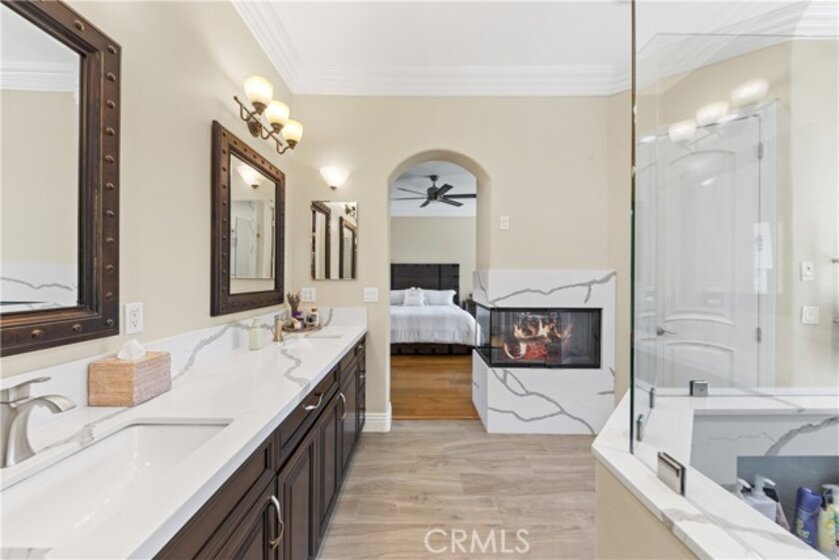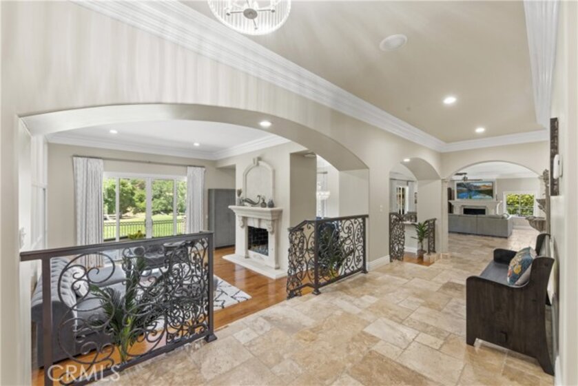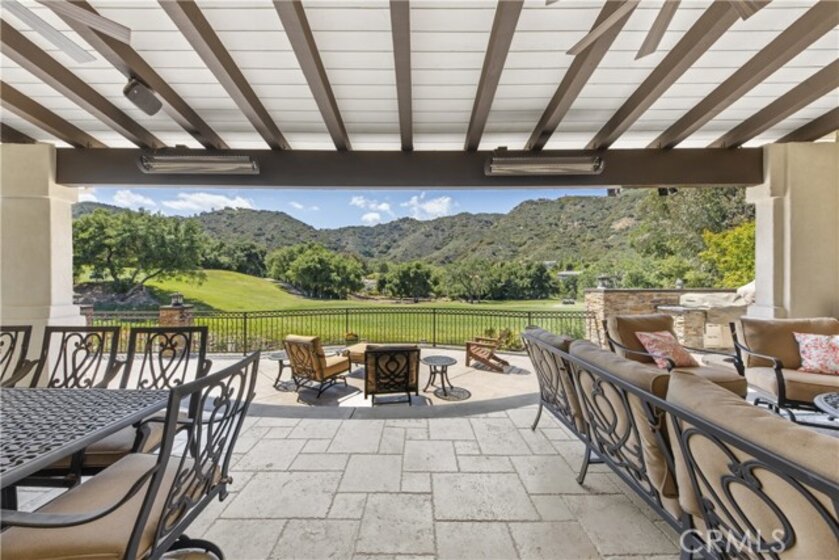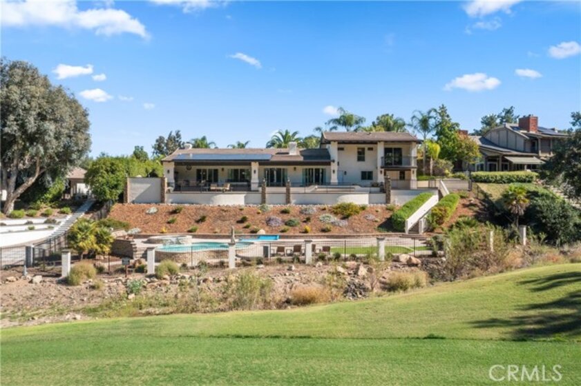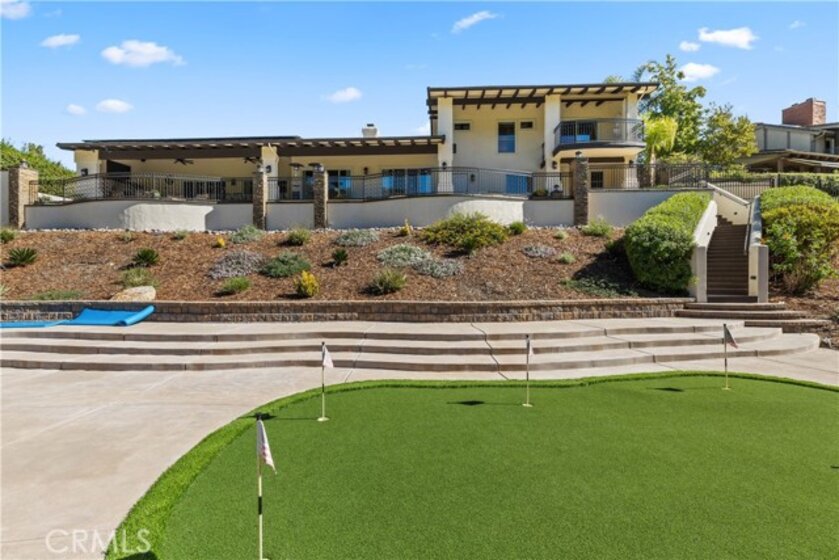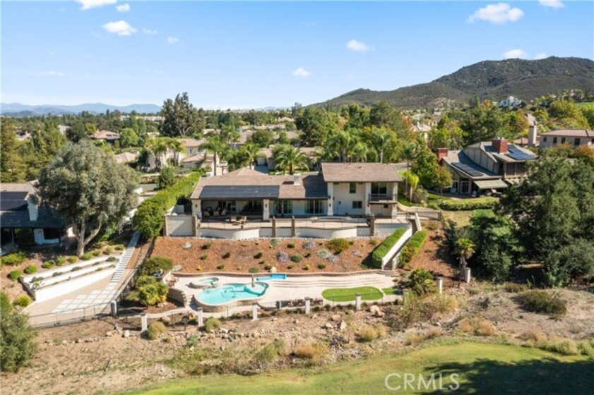 Welcome to an exceptional opportunity within the highly exclusive Bear Creek community, where sophistication, privacy, and resort-style living come together seamlessly. This luxurious pool home offers 4,140 sq ft of elegantly appointed space, including 4 spacious bedrooms, 5 bathrooms, and an entertainer's layout designed for both comfort and refinement. With paid solar already in place, the home combines luxury living with energy efficiency, a rare and valuable bonus. The heart of the home is an exquisite chef's kitchen, thoughtfully equipped with high-end stainless steel appliances, crystal lighting, three wine refrigerators, two warming drawers, and a generous walk-in pantry-all opening to expansive living spaces that are ideal for hosting. From the family room's fireplace and serving bar to the formal living and dining rooms finished with sandstone floors and crown moulding, every detail exudes understated elegance. Step outdoors to your private sanctuary overlooking the 5th green of Bear Creek's renowned Jack Nicklaus-designed golf course. Enjoy breathtaking views and year-round entertaining with a sparkling pool and spa, outdoor fireplace, putting green, built-in BBQ with pizza oven, ceiling fans, and heaters-all designed to elevate your lifestyle. Additional highlights include a hidden bonus room/office, a dedicated workout space, a laundry room, and full whole-home sound wiring. As a resident of Bear Creek, you'll enjoy access to premier amenities including a private golf course, fitness center, tennis and pickleball courts, bocce ball, a community pool and spa, clubhouse, and 24-hour guard-gated security. Located near top-rated schools with convenient freeway access, this remarkable estate offers the perfect blend of luxury, comfort, and exclusivity.