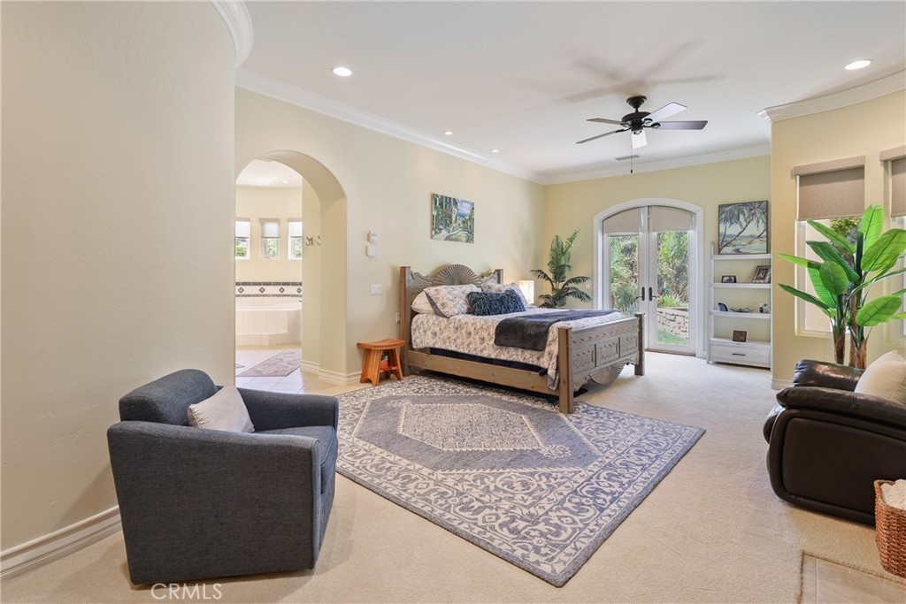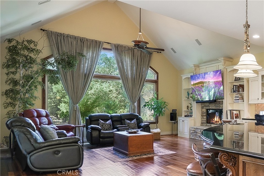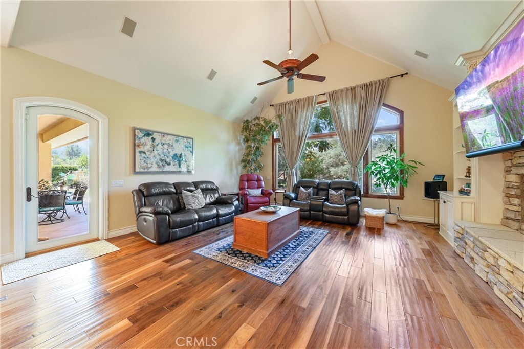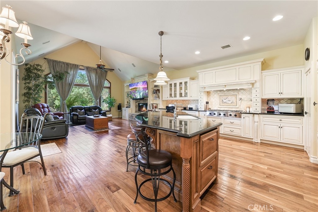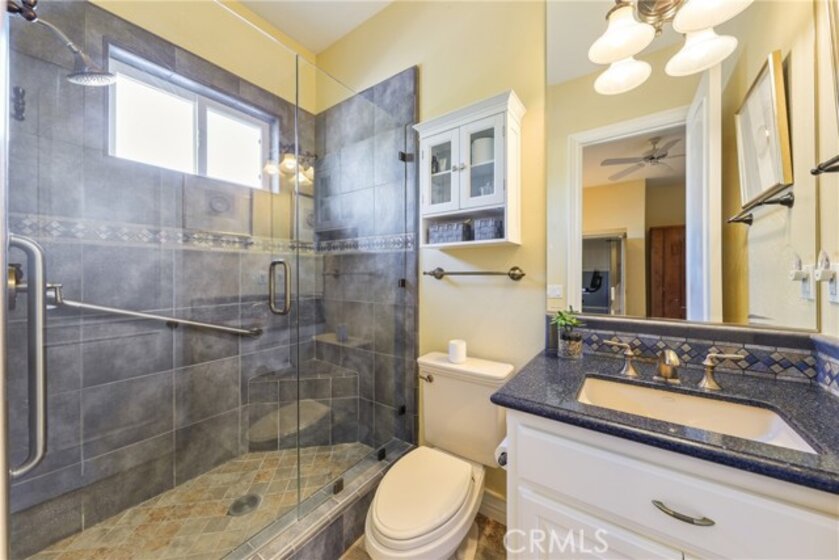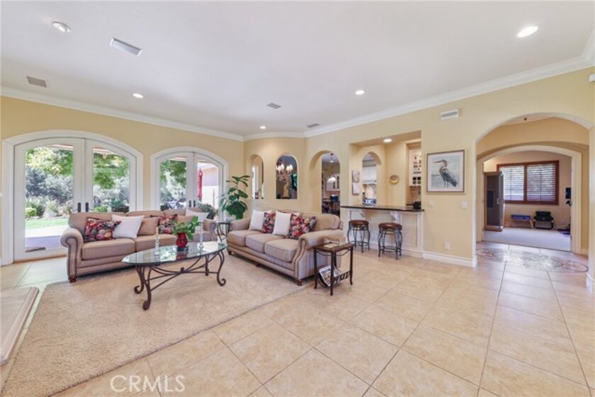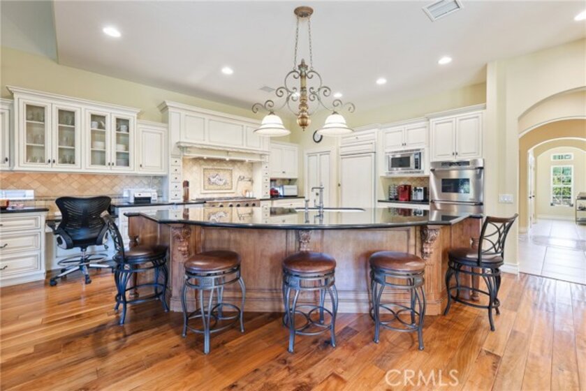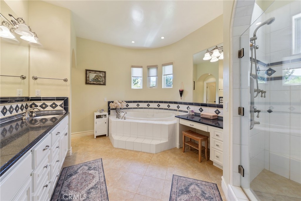 Tucked away on a serene cul-de-sac, this single-story French Provençal estate blends timeless architecture with modern luxury. Rare offering of elegance and lifestyle in the prestigious Bear Creek Community. Framed by graceful oak trees and sweeping hillside views, the home offers 4 bedrooms, 4.5 bathrooms, and exquisite living spaces designed for both comfort and elegance. Inside, the heart of the home is a chef’s kitchen featuring a center island, 6-burner range with griddle, double ovens, granite counters, and a walk-in pantry. The adjoining family room dazzles with a stone fireplace and a picture window that captures the beauty of the natural landscape. The primary suite is a private retreat with its own fireplace, French doors leading to a secluded jacuzzi, and a spa-inspired bath with soaking tub, dual sinks, vanity, walk-in shower, and expansive closet. Each additional bedroom enjoys its own en-suite bath, with two opening onto a charming courtyard. Outdoors, private patios and a welcoming front courtyard invite relaxation and entertaining, while a resort-style spa with stone and waterfall features completes the setting. An oversized 3-car plus golf cart garage with epoxy floors, along with a fully paid solar system, ensure convenience and efficiency.