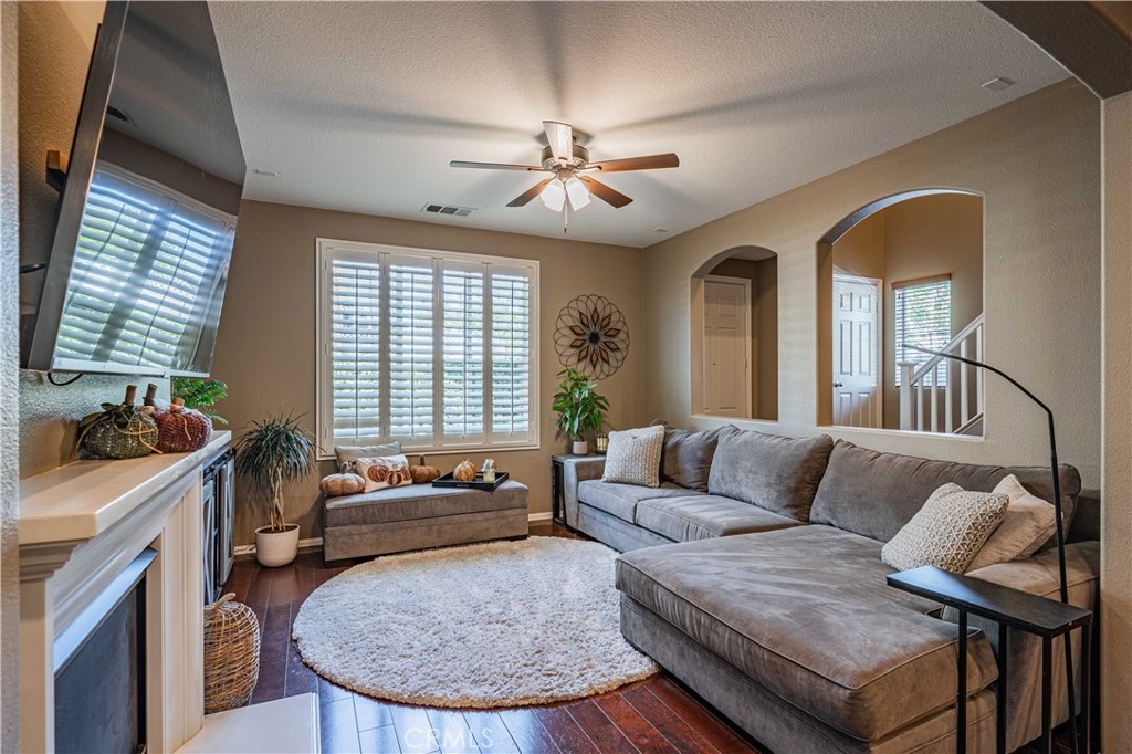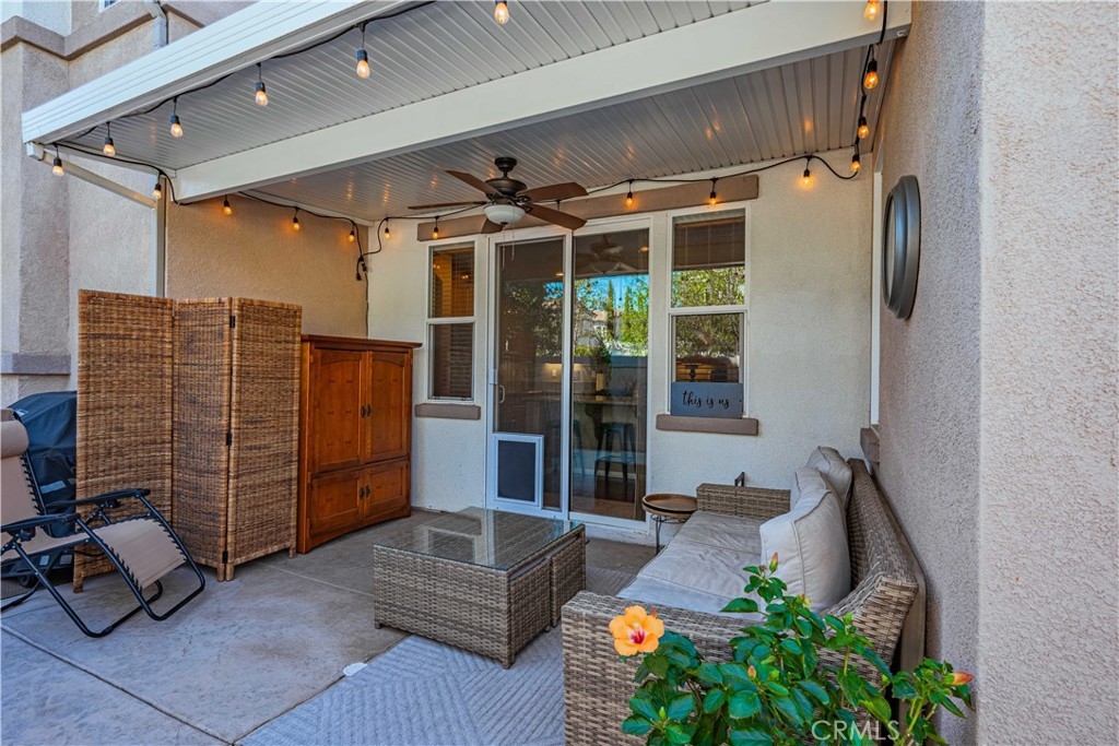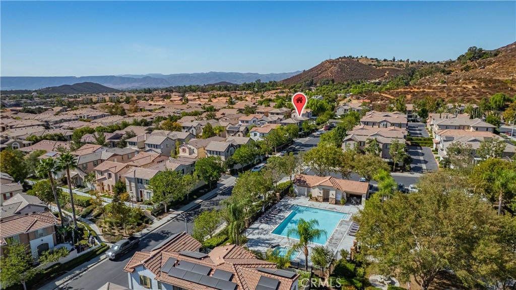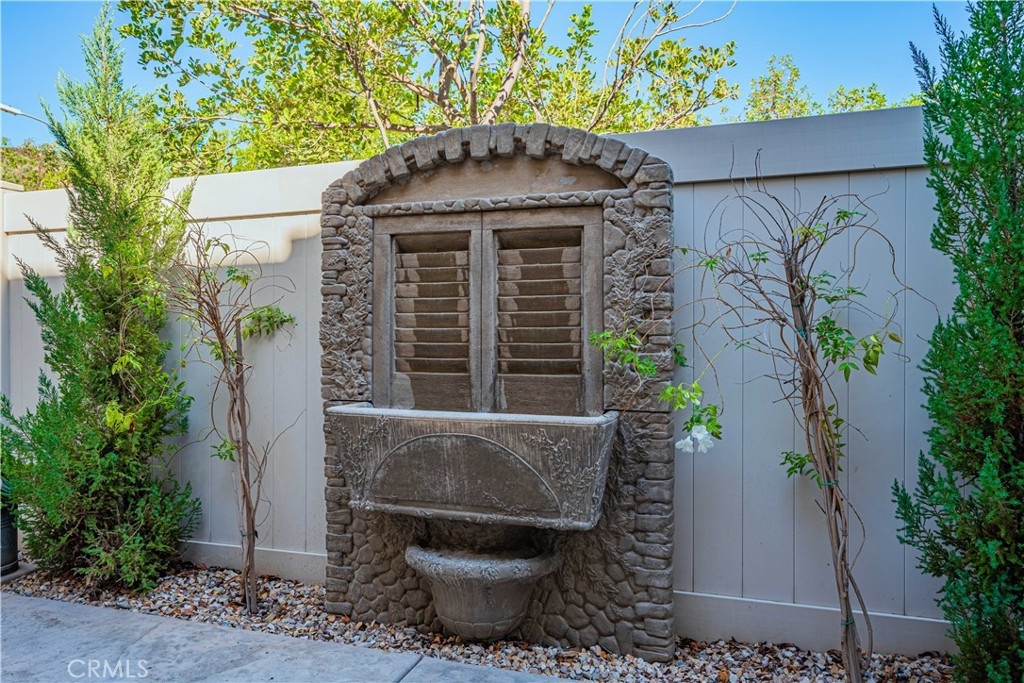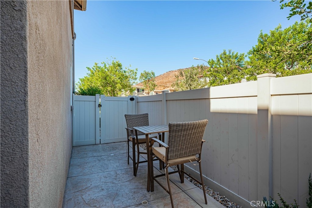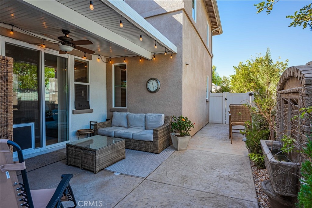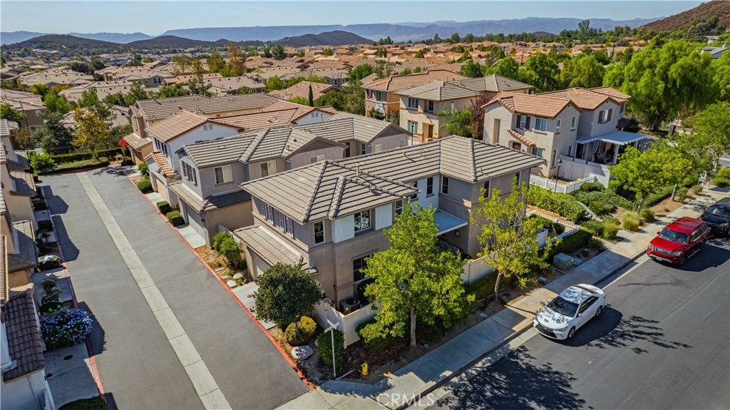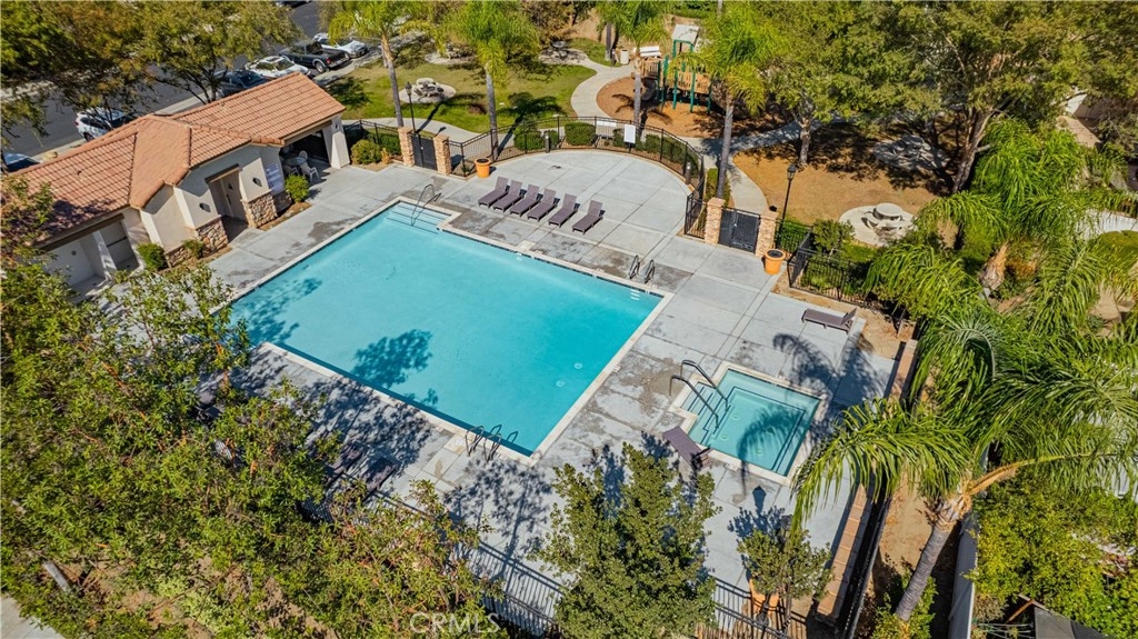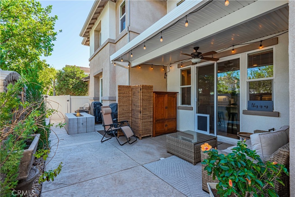 Welcome to the Gated Community of Bel Flora in the heart of Murrieta. This Charming single family home offers a warm inviting atmosphere with an open floor plan, hardwood floors, cozy fireplace complemented by stylish shutters. The spacious kitchen features a center Island with granite, 4 burner stove and newer black stainless fridge and dishwasher. It's a perfect area for cooking and entertaining. Step outside to a cozy patio with a built in fire pit, waterfall, covered sitting area, ideal for relaxing and entertaining year round. Upstairs you'll find 3 bedrooms, including the primary suite that offers a walk in closet for all your storage needs. The primary bath is equipped with a soaking tub, walk in shower, and dual sinks. All bedrooms have carpet and wood blinds, and walk in closets. The attached 2 car garage with direct access provides ample storage with built in shelves for organization. A small front yard with a classic white vinyl picket fence adds to the curb appeal and charm. This home is conveniently located within walking distance to the association pool and spa, and outdoor picnic area adding easy access to relaxation and recreation. The community provides a safe and serene environment, enhanced with a playground, sidewalks, street lights, and plenty of parking. Beautifully landscaped with abundant trees and lush foliage. Close to shopping, schools, 215 Freeway, Costco, and lots of new restaurants. Has an EV charger in the garage for an electric vehicle.