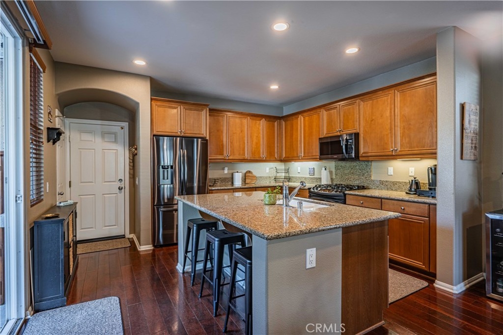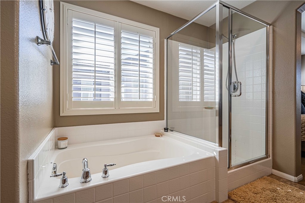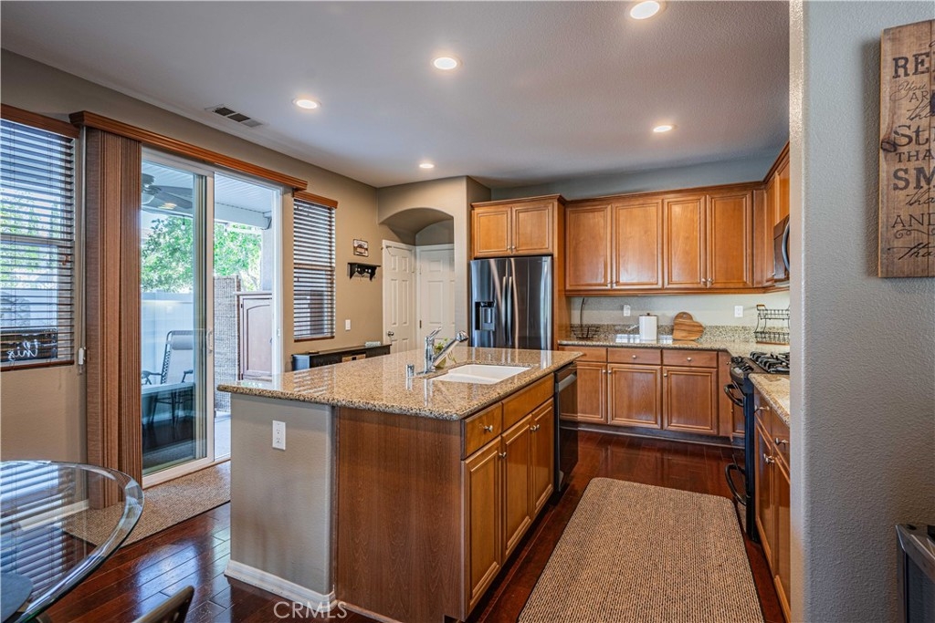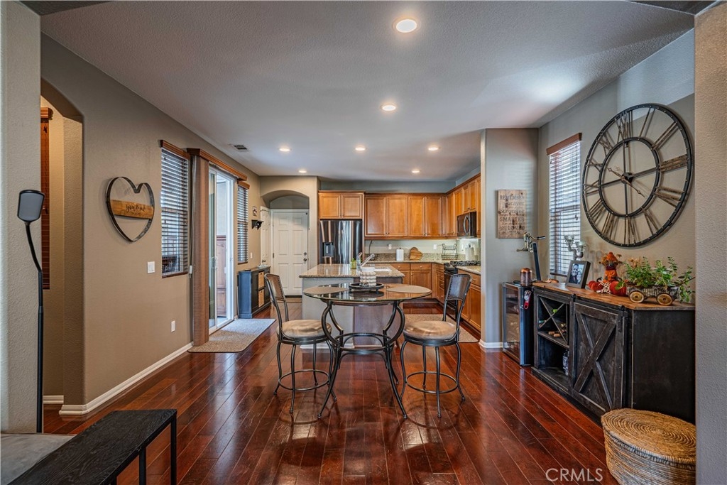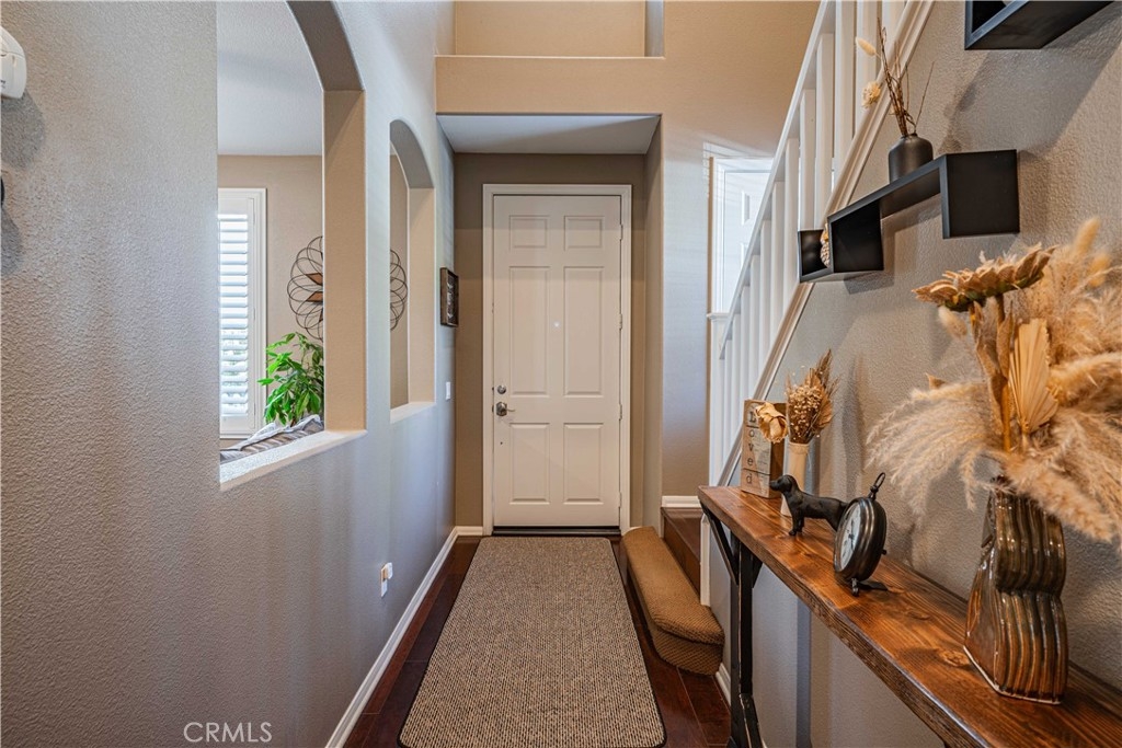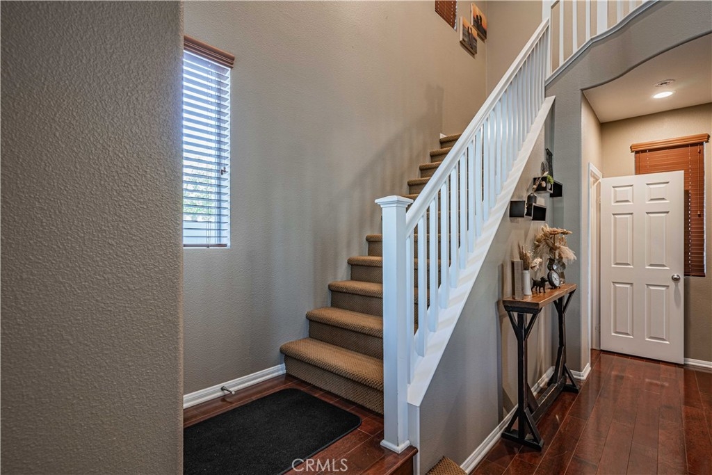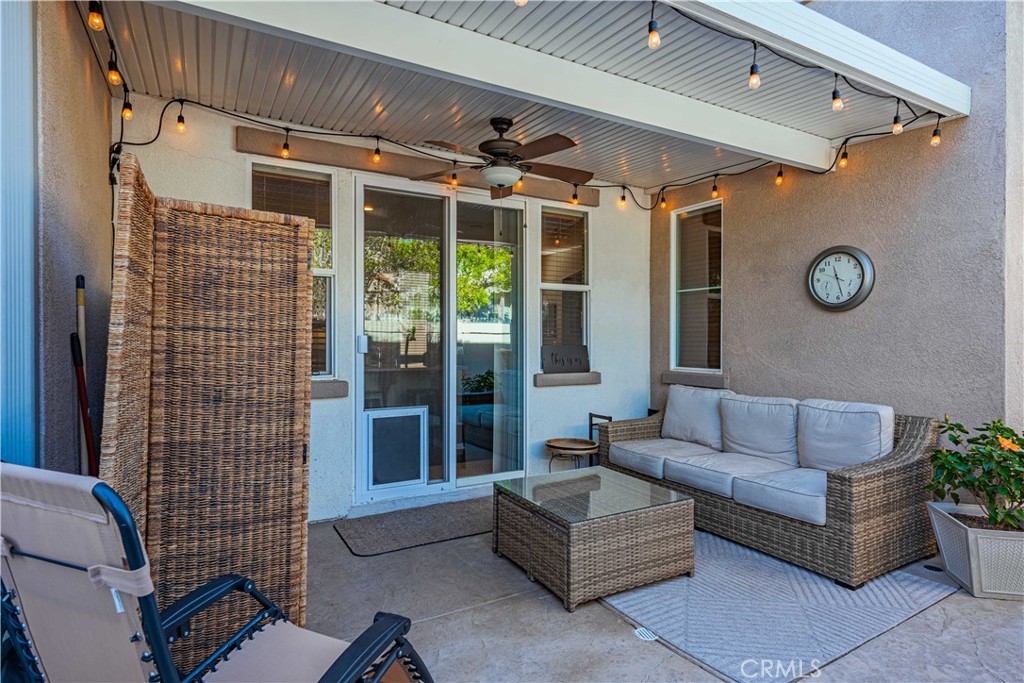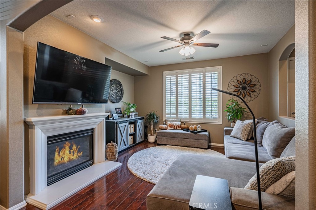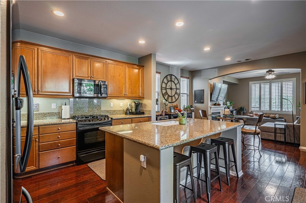 Welcome to the Gated Community of Bel Flora in the heart of Murrieta. This Charming single family home offers a warm inviting atmosphere with an open floor plan, hardwood floors, cozy fireplace complemented by stylish shutters. The spacious kitchen features a center Island with granite, 4 burner stove and newer black stainless fridge and dishwasher. It's a perfect area for cooking and entertaining. Step outside to a cozy patio with a built in fire pit, waterfall, covered sitting area, ideal for relaxing and entertaining year round. Upstairs you'll find 3 bedrooms, including the primary suite that offers a walk in closet for all your storage needs. The primary bath is equipped with a soaking tub, walk in shower, and dual sinks. All bedrooms have carpet and wood blinds, and walk in closets. The attached 2 car garage with direct access provides ample storage with built in shelves for organization. A small front yard with a classic white vinyl picket fence adds to the curb appeal and charm. This home is conveniently located within walking distance to the association pool and spa, and outdoor picnic area adding easy access to relaxation and recreation. The community provides a safe and serene environment, enhanced with a playground, sidewalks, street lights, and plenty of parking. Beautifully landscaped with abundant trees and lush foliage. Close to shopping, schools, 215 Freeway, Costco, and lots of new restaurants. Has an EV charger in the garage for an electric vehicle.