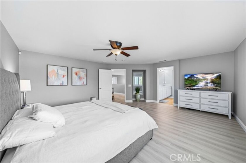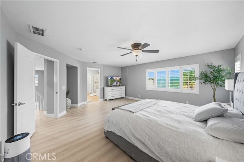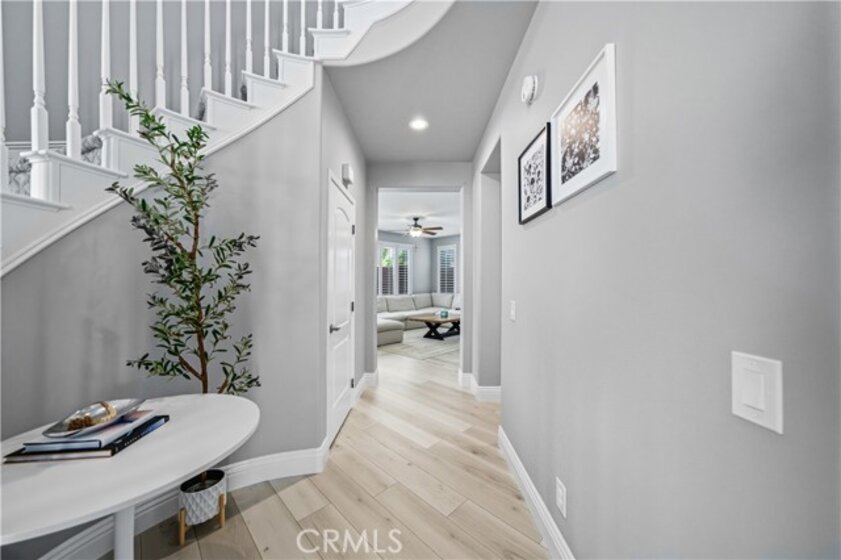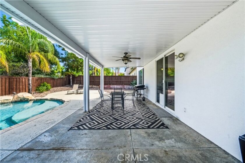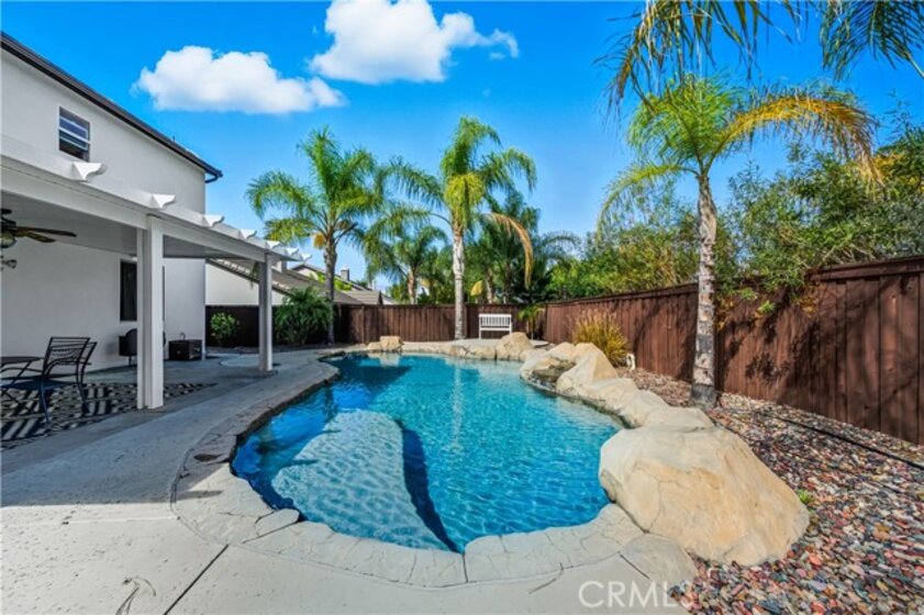 Welcome to 30618 Lily Pond Lane, a stunning 5-bedroom, 3-bath residence with a 3-car garage, nestled in the highly desirable Central Park community of Murrieta. This beautifully upgraded home blends luxury, comfort, and efficiency with soaring vaulted ceilings, a grand spiral staircase, and upgraded waterproof laminate flooring throughout. The open-concept family room with a cozy fireplace flows seamlessly into the gourmet kitchen, which boasts brand-new quartz countertops, a large center island, and freshly painted cabinets. A downstairs bedroom with a nearby bathroom offers ideal guest accommodations, while the upstairs master suite serves as a true retreat with a jetted tub, walk-in shower, dual vanities, and a massive walk-in closet, complemented by three additional spacious bedrooms and a well-appointed bathroom. The backyard is designed for both relaxation and entertainment with a sparkling saltwater pool featuring a new pump and safety fence, along with freshly painted exterior surfaces and patio cover. Efficiency upgrades abound, including a 17.00 kW Tesla solar panel system, Tesla Charger subpanel, new HVAC system, new dishwasher, and new water heater, ensuring long-term savings and convenience. Residents of Central Park enjoy exceptional HOA amenities such as a clubhouse, pool, spa, tennis courts, playgrounds, walking trails, and beautifully maintained parks, all while benefiting from low HOA fees and low taxes. Zoned for the prestigious Temecula School District, this home also offers the rare opportunity for a conventional loan with a very low assumable interest rate, making it an unbeatable find in one of Murrieta’s most sought-after communities.
