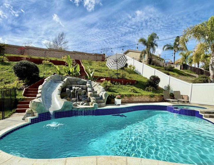 Welcome to this gorgeous 6-bedroom, full 4-bathroom pool home, perfectly situated on a cul-de-sac with the added benefit of no HOA and PAID OFF Solar! This thoughtfully upgraded residence caters to modern living, featuring a bedroom and full bathroom conveniently located on the main floor, ideal for guests or multigenerational families. The heart of the home is the gourmet kitchen, designed for culinary enthusiasts, boasting high-end appliances, ample counter space, and sleek finishes that make cooking a joy. The backyard oasis, complete with a sparkling heated pool/spa, waterfall and slide provides the perfect setting for relaxation and entertaining. With paid-off solar panels, enjoy energy efficiency and reduced utility costs, making this home as sustainable as it is comfortable including two tankless water heaters. Each room is meticulously designed to offer both style and functionality, creating a harmonious living environment. Don’t miss the opportunity to own this exceptional property that combines luxury, convenience, and modern amenities in one of the most desirable locations close to top-rated schools. Welcome to this gorgeous 6-bedroom, full 4-bathroom pool home, perfectly situated on a cul-de-sac with the added benefit of no HOA and PAID OFF Solar! This thoughtfully upgraded residence caters to modern living, featuring a bedroom and full bathroom conveniently located on the main floor, ideal for guests or multigenerational families. The heart of the home is the gourmet kitchen, designed for culinary enthusiasts, boasting high-end appliances, ample counter space, and sleek finishes that make cooking a joy. The backyard oasis, complete with a sparkling heated pool/spa, waterfall and slide provides the perfect setting for relaxation and entertaining. With paid-off solar panels, enjoy energy efficiency and reduced utility costs, making this home as sustainable as it is comfortable including two tankless water heaters. Each room is meticulously designed to offer both style and functionality, creating a harmonious living environment. Don’t miss the opportunity to own this exceptional property that combines luxury, convenience, and modern amenities in one of the most desirable locations close to top-rated schools.