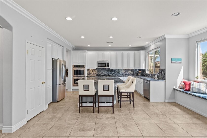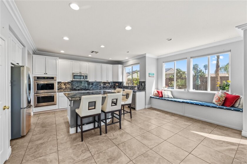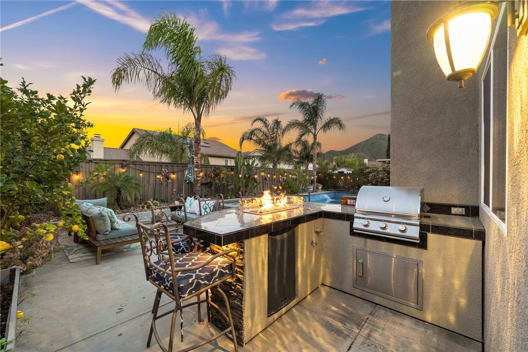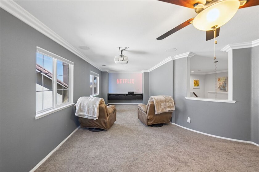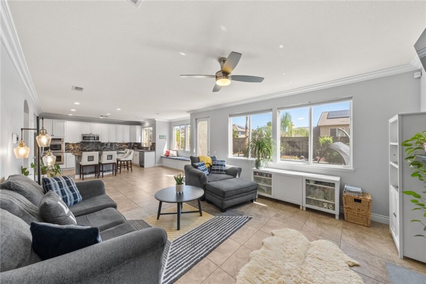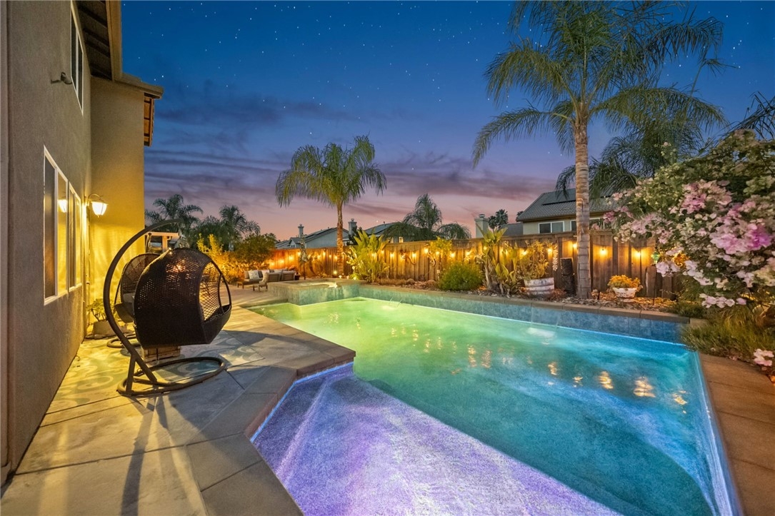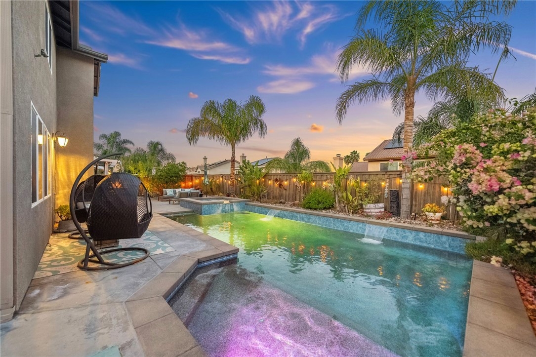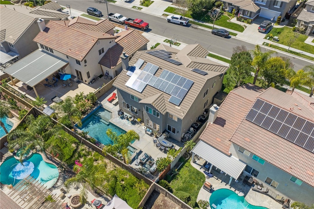 Welcome to this stunning pool home in the highly sought-after Copper Canyon neighborhood of West Murrieta, offering space, upgrades, and lifestyle with NO HOA and low taxes. Featuring 4 bedrooms, 3 bathrooms, and approximately 3,287 sq. ft., this beautifully maintained home also includes a rare 4-car garage with backyard pull-through access and solar for energy efficiency. Charming curb appeal welcomes you with a quaint koi pond (fish included) and inviting entry. Inside, the spacious floor plan offers a formal living room, dining room, first-floor bedroom, and full bathroom, ideal for guests, an office or multigenerational living. The home opens to an open-concept kitchen and family room designed for everyday living and entertaining. The upgraded kitchen features a large granite island, double ovens, butler’s pantry, walk-in pantry, soft-close drawers, under-cabinet lighting, and a built-in storage bench overlooking the pool. The family room offers a cozy fireplace and welcoming gathering space. The main floor also includes additional storage and a laundry room. Upstairs, a spiral staircase leads to the expansive second level. The primary suite includes a window bench with backyard and mountain views, a spa-like bathroom, and a large walk-in closet. Two additional bedrooms and a full bathroom complete the upper level. A massive loft/movie room offers flexible space for a media room, gym, office, or potential additional bedroom, complete with in-wall speakers, receiver, and projector. The resort-style backyard features a saltwater PebbleTec pool with Baja step, spa, waterfall features, and color-changing lights. Enjoy outdoor entertaining with a BBQ island featuring a built-in fire pit tabletop and mini fridge, along with mature fruit trees including kumquat, pomegranates, lemons, and grapes. Additional features include basketball hoop, new screens, new water heater, dual AC units, EV charger, 220V in the garage (wired for infrared sauna), crown molding, recessed lighting, ceiling fans, window tinting, whole house fan, and front and rear screen sliders for summer breezes. The home also includes a solar PPA. Conveniently located near parks and about one mile from Cole Canyon Elementary, within top-rated Murrieta schools and just 20–30 minutes from Temecula Wine Country. This exceptional Copper Canyon home offers the perfect blend of space, upgrades, and resort-style living.