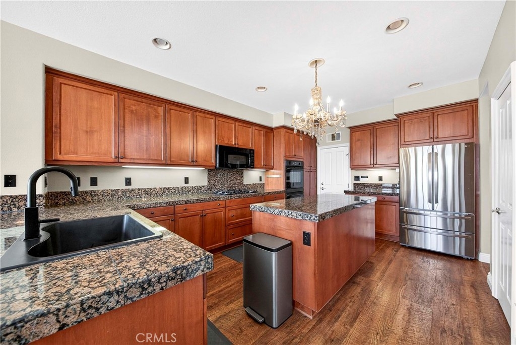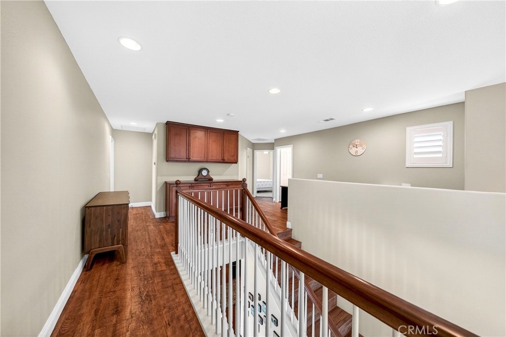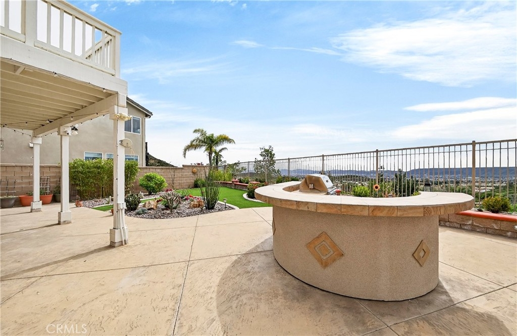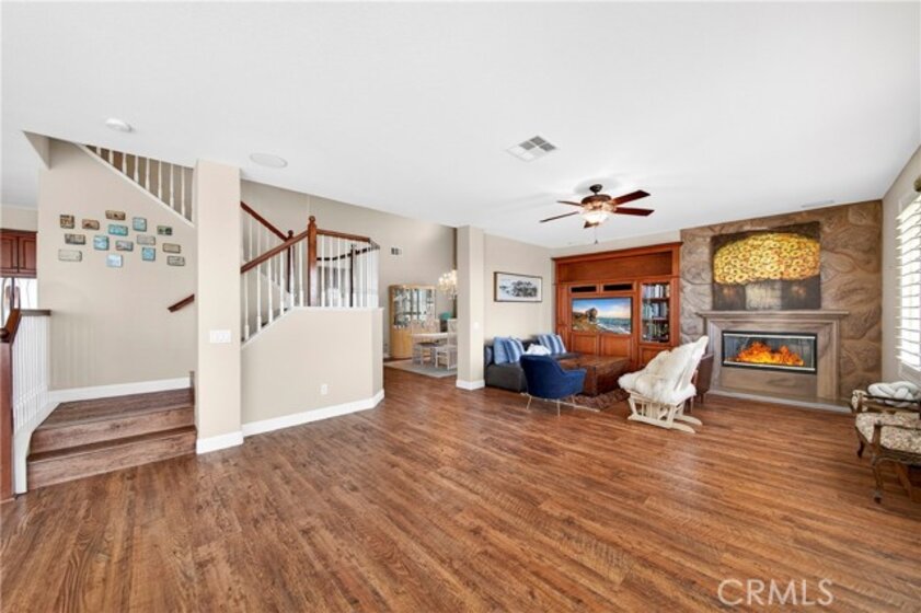 Location, Location, Location!! - Beautiful view home located in the prestigious Greer Ranch gated community and located in a secluded gated community perched on gentle rolling hills overlooking the scenic Murrieta Valley. This spacious two-story residence offers approximately 3,201 sq. ft. of living space with 5 bedrooms and 3 full bathrooms on an 8,276 sq. ft. lot, built in 2004. The home features a desirable floor plan with one bedroom and a full bathroom on the main floor, ideal for guests or multi-generational living. The first floor includes a bright family room with a cozy fireplace, a formal dining area, and a spacious kitchen with granite counters, a pantry, and beautiful valley views. Upstairs offers: The second floor has 4 bedrooms and 2 bathrooms and a small office/loft area. The primary suite features a sliding door with access to a private balcony where you can enjoy panoramic views of the surrounding hills and city lights. Interior highlights include high ceilings, wood-style vinyl flooring, window shutters throughout. The large laundry room, located on the first floor just beyond the dining room, has a separate entry/exit to the home. The backyard is also impressive, featuring a barbecue area and a beautifully landscaped garden. The property also includes central air conditioning, a 2-car garage, and leased solar panels. The front yard is spacious enough for RV parking, and as a corner unit, it offers added privacy and quiet. Located in a 24-hour security, guard-gated community with HOA amenities and within the Murrieta Valley Unified School District, this home offers privacy, scenic views, and comfortable Southern California living.