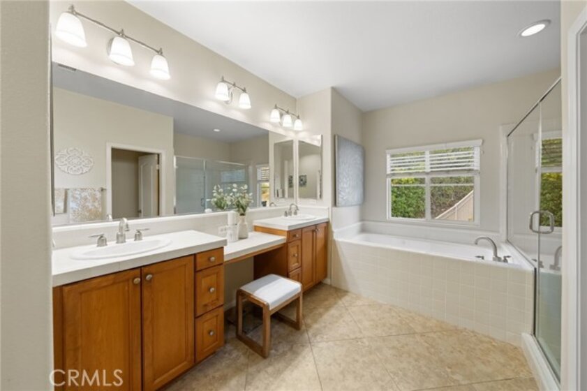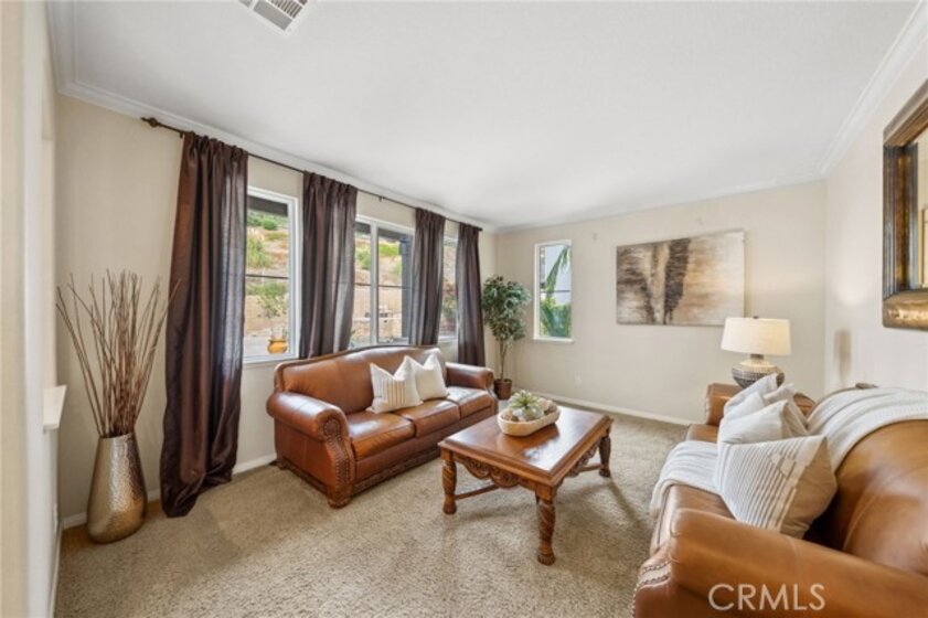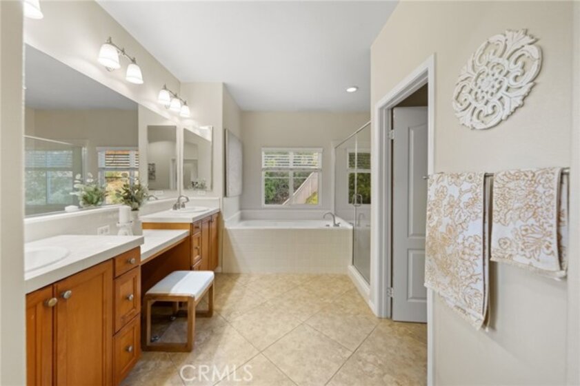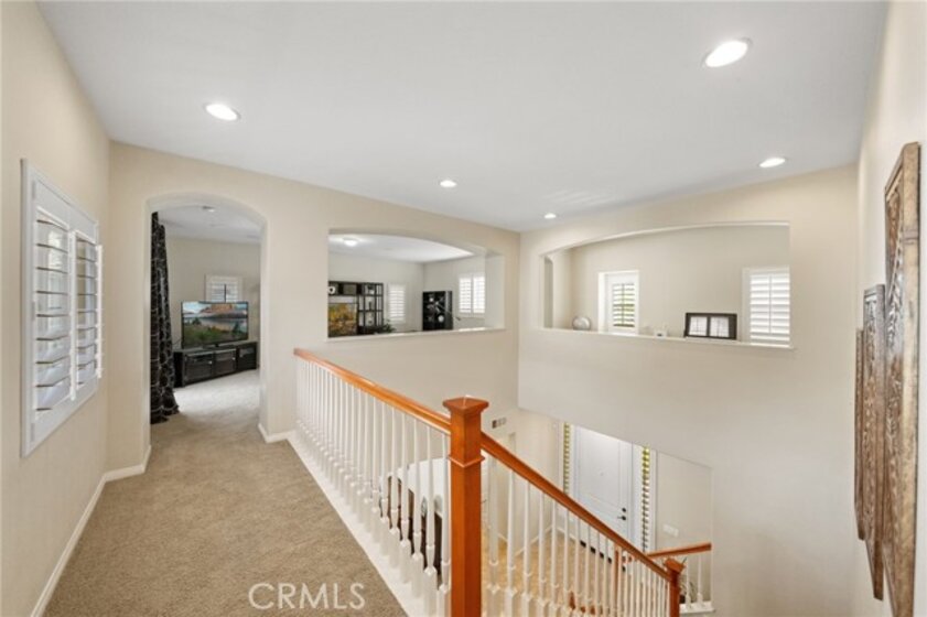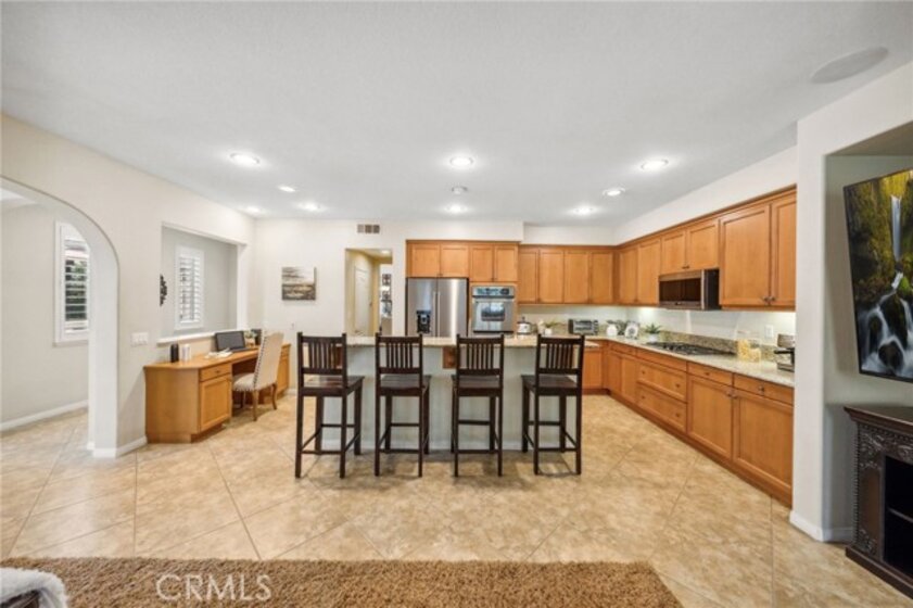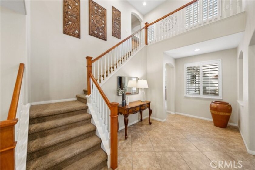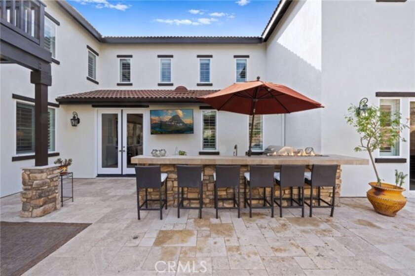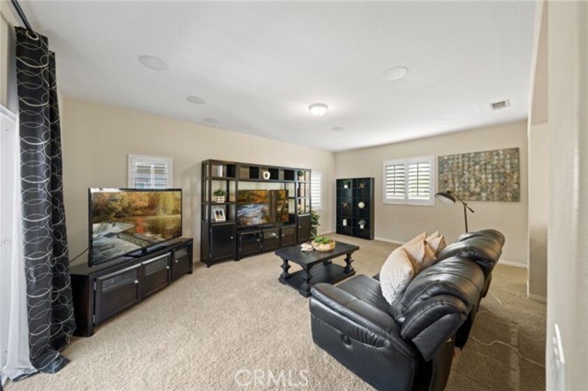 This RARE GEM sits at the end of a CUL-DE-SAC, offering unparalleled PRIVACY with no neighbor on the left—just tranquil, open preserve space. The moment you approach, the STUNNING CURB APPEAL, complete w/ brand-NEW EXTERIOR PAINT & a long driveway, makes a grand first impression. The charming front porch invites you to step inside, where soaring 2-story ceilings greet you w/ elegance & spaciousness.The MAIN FLOOR features a PRIVATE BEDROOM w/ new carpeting & plantation shutters, along w/ a full bath showcasing a WALK-IN SHOWER & updated lighting—perfect for guests. The living room is bathed in natural light from numerous windows & accented w/ crown molding, while the dining room opens directly to the backyard through French doors. At the heart of the home, the family room & kitchen shine in an open-concept layout. Cozy up to the gas FIREPLACE in the family room, complete w/a sophistacted audio system, PLANTATION SHUTTERS & ceiling fan, or gather around the large eat-in island in the kitchen. Granite counters, maple cabinetry, SS appl.,& a built-in desk make this kitchen both functional & beautiful. The adjacent butler's pantry w/walk-in pantry connects to the dining room, adding convenience for hosting.Upstairs, a SPACIOUS LOFT w/ a built-in desk area for 2 opens to a BALCONY overlooking your private oasis—a sparkling saltwater pool & spa surrounded by lush tropical landscaping. 3 secondary BR, 1 w/ its own attached BA w/dual sinks, provide ample space for family or guests. Down the hall, the primary suite offers serenity w/its own FP, private balcony, & a luxurious en-suite BA featuring dual sinks, a jetted tub, & a lg. walk-in shower. Step outside to experience an ENTERTAINER'S PARADISE. The backyard boasts a SALTWATER POOL, RAISED SPA, gorgeous TRAVERTINE PATIO, a built-in BBQ complete w/ seating, fridge, & side burners, + a FIRE PIT perfect for evening gatherings. Pockets of seating are nestled throughout the yard, creating a RESORT-LIKE ATMOSPHERE. A state-of-the-art outdoor video & audio system, including 4 rock speakers & a mounted 65-inch TV w/ Wi-Fi, enhances your outdoor experience. A 3-car tandem garage provides ample storage & parking.Greer Ranch offers 24-hour security, a community pool, clubhouse, parks, walking trails, family-friendly events, & more. Conveniently located near both the 215 &15 freeways, top-rated Murrieta schools, shopping, Old Town Murrieta, & Temecula wineries, this home combines luxurious living w/ an unbeatable location.