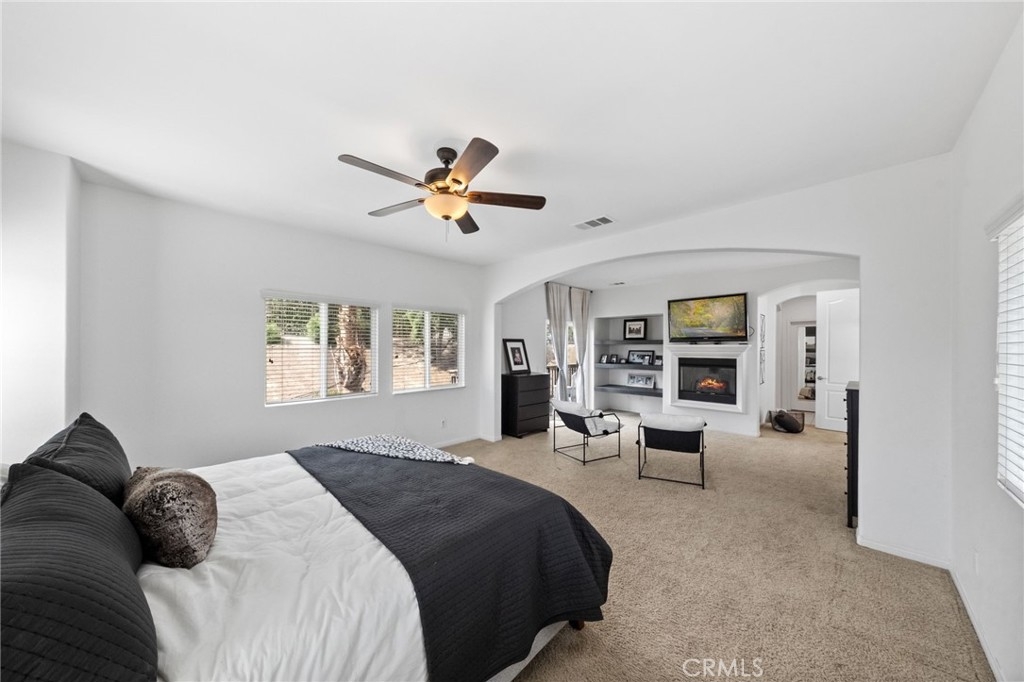 *MOTIVATED SELLERS *OWNED SOLAR * UPDATED HOME * LARGE POOL-SIZED LOT * GUARD-GATED COMMUNITY Beautifully updated 4-bedroom + LOFT modern farmhouse style home in the coveted guard-gated community of Greer Ranch! Set on a spacious 13,504 sq ft POOL-SIZED CORNER LOT, this 3,362 sq ft home features striking curb appeal with a crisp white exterior, black accents, and a 3-car tandem garage. Fully paid solar panels dramatically reduce electric costs, often bringing your SCE bill to zero! Step inside to soaring two-story ceilings, luxury vinyl plank flooring, and a recently painted neutral interior. The front living room, currently used as an office, includes crown molding, while the separate dining room opens to a generous side courtyard-perfect for dining under the stars or entertaining guests. The open-concept kitchen and family room sit at the rear of the home, featuring white cabinetry, quartz countertops, stainless steel appliances, modern lighting, and a stylish tile backsplash. A cozy fireplace anchors the family room, flanked by custom floating shelves that add charm and functionality. Ideal for multigenerational living or guests, the main floor offers a full bedroom and a bathroom with a walk-in shower. Upstairs, where BRAND NEW CARPET WAS JUST INSTALLED (not photographed) you'll find a spacious loft/bonus room with a ceiling fan, a laundry room with a sink and storage, 2 additional bedrooms with ceiling fans, and a shared bath with dual sinks. The private primary suite offers a quiet place to unwind, complete with its own balcony & fireplace. The ensuite bath includes a jetted tub, walk-in shower, dual vanities, and a large walk-in closet. The backyard offers plenty of usable space with a grassy area for play, a patio with a gazebo for relaxing or socializing, and a large courtyard off the dining room for effortless indoor-outdoor living. The pool-sized lot offers versatility and privacy. It's ideal for entertaining, pets, or future customization. Additional highlights include a QuietCool whole house fan and EV charger in the garage. Greer Ranch is known for its peaceful setting, rolling hills, nature, and top-tier amenities including 24-hour guarded gates, a pool, spa, clubhouse, parks, trails, basketball court, and year-round community events. Located within the top-rated Murrieta school district and close to shopping, wineries, and both the 215 and 15 freeways, Bottle Brush Way offers a rare blend of comfort, convenience, and community.