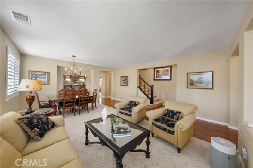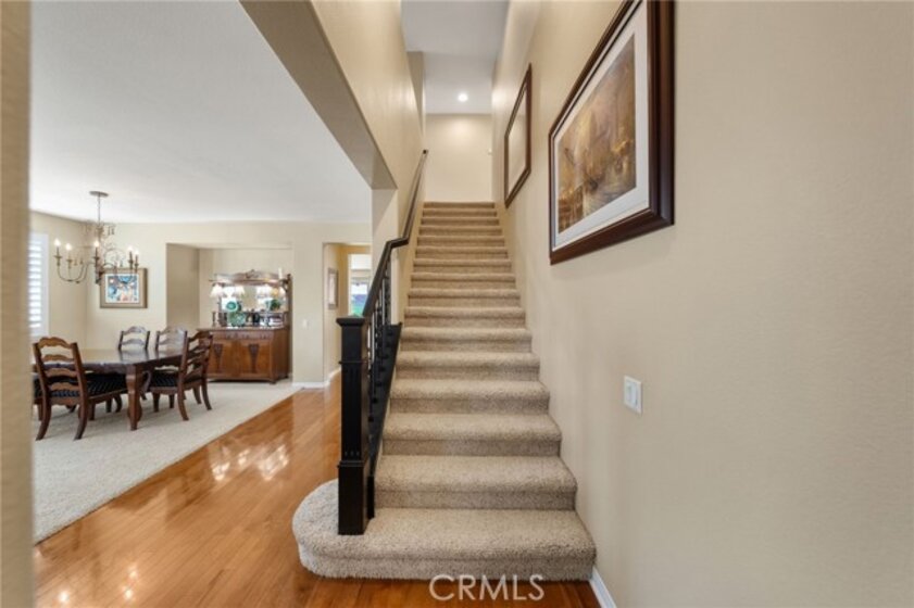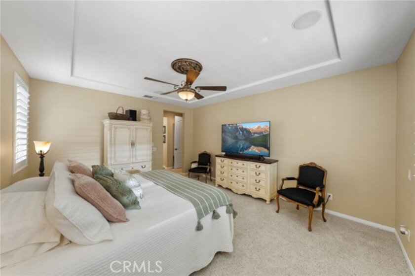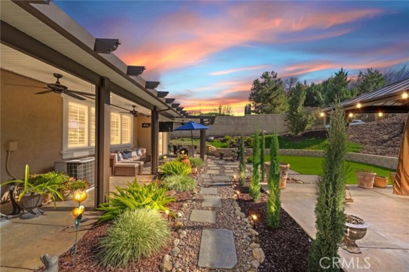 *ONE STORY LIKE LIVING! *2 MAIN FLOOR BEDROOMS INCLUDING THE PRIMARY! *SPACIOUS CORNER LOT! *SOLAR PANELS! *GUARD-GATED COMMUNITY! Welcome to 27665 Bottle Brush WY, a rare opportunity in the guard gated Greer Ranch community. Situated on a prime corner lot of over 10,000 sq ft, this unique floorplan lives like a ONE STORY with a MAIN FLOOR PRIMARY SUITE, a highly sought after feature with very few true single level options available in this neighborhood. Excellent curb appeal welcomes you with newer exterior paint and an upgraded leaded glass front door. This 4 BR, 3 BA home offers both functionality and timeless style in a serene hillside setting. As you enter, enjoy rich hardwood flooring and a spacious living and dining room enhanced by plantation shutters. At the front of the home is a secondary BR with mirrored wardrobe and an attached bath featuring a walk in shower with new glass enclosure. The main floor laundry offers abundant storage and is conveniently located near the 3 car tandem garage with built in shelving. The open concept kitchen flows seamlessly into the family room and features granite counters, a large center island, brand new stainless steel appliances including a hood, and a walk in pantry. The family room is warm and inviting with recessed lighting, ceiling fan, custom built in cabinetry, and a cozy fireplace. Down the hall, retreat to the private MAIN FLOOR PRIMARY SUITE with large windows overlooking the beautifully landscaped backyard. The primary bath offers dual sinks, a soaking tub, separate shower, and a spacious walk in closet. Upstairs, custom wrought iron balusters lead to two generously sized rooms including one dedicated BR and a loft that can easily serve as BR 4, plus a full bath. The backyard is thoughtfully designed with drought tolerant landscaping, pops of color, artificial turf, an alumawood patio cover with ceiling fans, and a pergola seating area. A spacious side yard includes a storage shed. Additional upgrades include solar panels to save you $$, a whole house fan, and newer interior paint. Greer Ranch offers 24 hour security, pool, spa, parks, hiking and biking trails, and vibrant community events. Conveniently located near the 215 & 15 freeways, shopping including Target, Home Depot & Costco, medical facilities, and top rated Murrieta schools, all while enjoying privacy and natural surroundings. Don't miss the opportunity to call this beautiful house your new home!