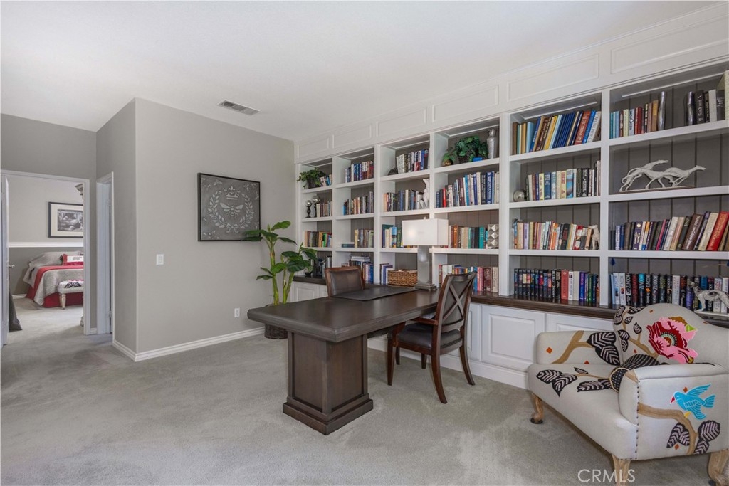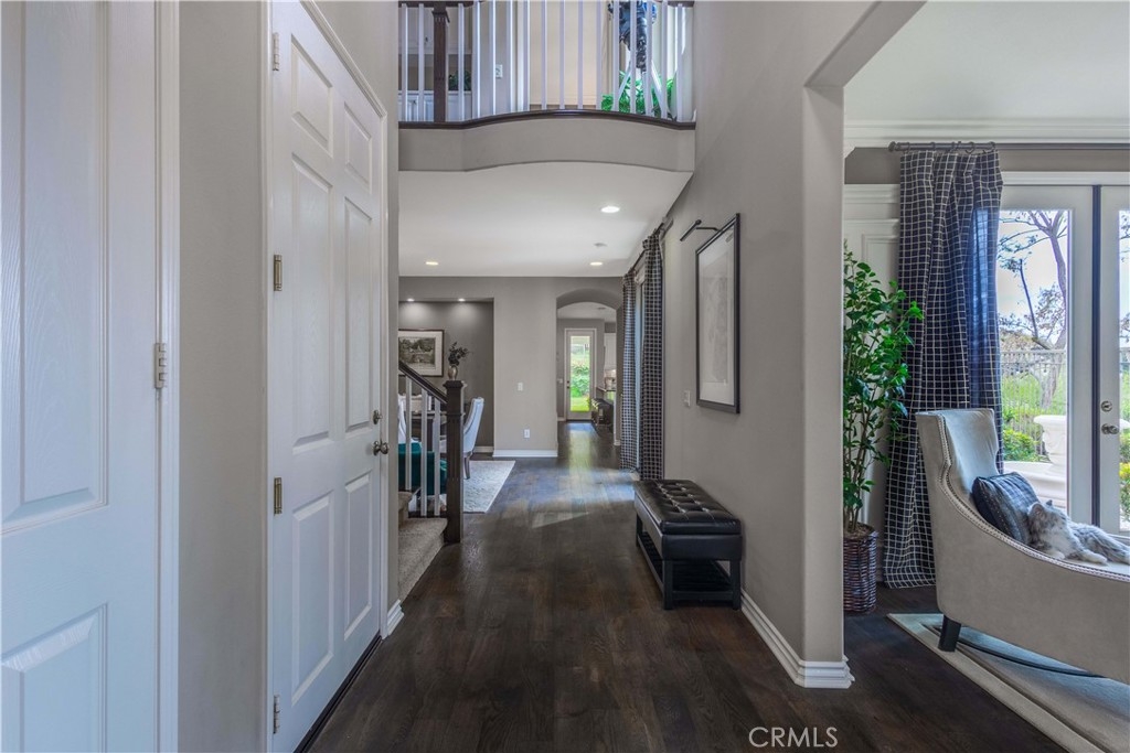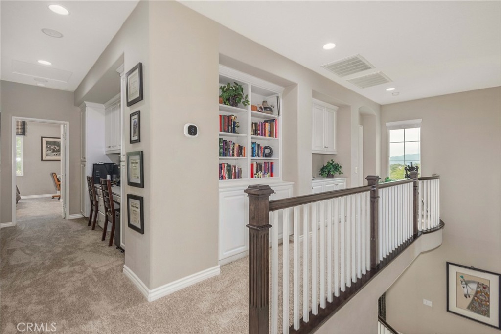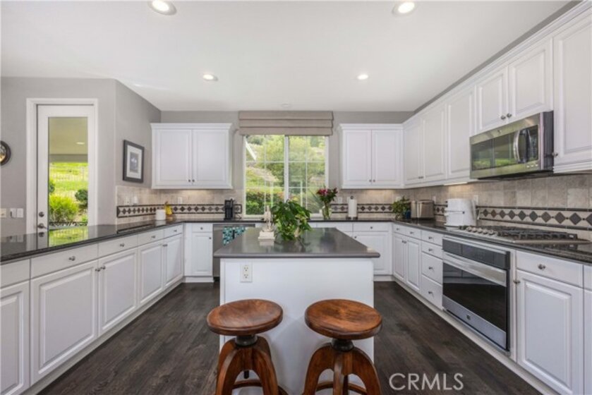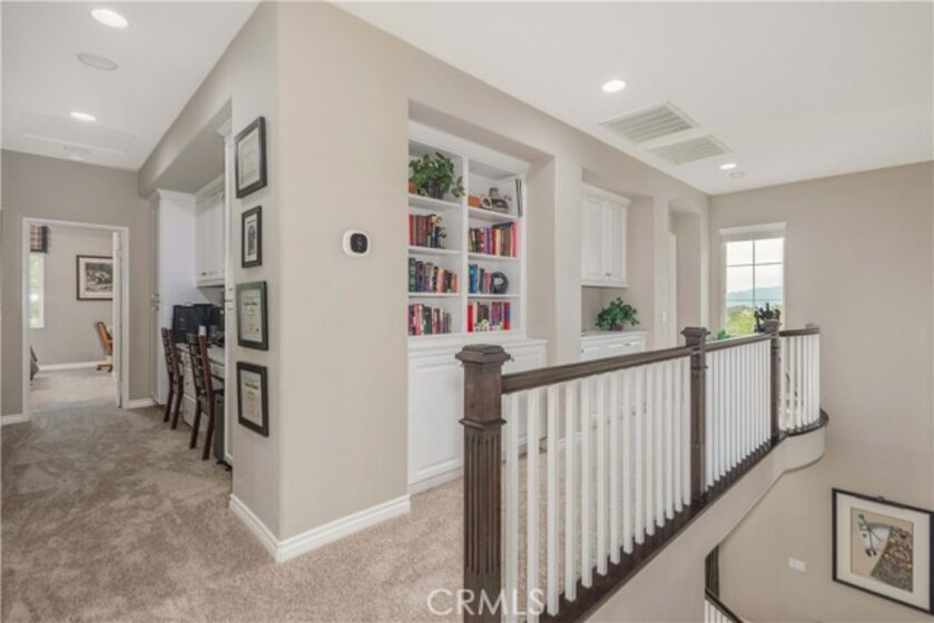 Luxury Living in the Prestigious Guard-Gated Community of Greer Ranch Experience the lifestyle you deserve in this absolutely stunning home, ideally situated at the end of a quiet cul-de-sac on a premium corner lot with no neighbors in front, back or on the right side of the property. Enjoy breathtaking, sweeping panoramic views of the hills and valley, offering both privacy and serenity. From the moment you arrive, you’ll be captivated by the meticulously manicured landscaping and inviting brick walkway leading to a charming front porch—the perfect place to relax with your morning coffee while taking in the views. Originally a Model this exceptional home is filled with high-end upgrades & thoughtful details throughout, including crown molding, wainscoting, custom paint, elegant window treatments, and multiple custom built-ins such as bookcases, desks, and entertainment centers. A multi-room audio system enhances the home’s modern luxury, while brand-new carpeting & rich hardwood flooring complement the impressive 18-foot ceilings in the formal entry. The versatile floor plan includes a downstairs bedroom with a full bathroom nearby—ideal for guests or multi-generational living. The spacious gourmet kitchen features granite countertops with a full backsplash, stainless steel appliances, & an abundance of cabinetry, making it perfect for both everyday living and entertaining. The expansive owner’s suite is a true retreat, complete with a private sitting area and custom built-in entertainment center—perfect for unwinding at the end of the day. The en-suite bathroom offers a walk-in shower, dual vanities, & a large walk-in closet. Upstairs, you’ll find 4 additional generously sized bedrooms, including one with its own private bathroom. A conveniently located upstairs laundry room includes built-in storage and a utility sink. Step outside to your tranquil backyard oasis, where you’ll enjoy stunning sunset views over the hills. The space is designed for relaxation and entertaining, featuring a custom-covered patio with ceiling fan and a beautiful brick courtyard centered around a soothing fountain. Enjoy resort-style amenities, including an Olympic-size pool, kids pool, tot lots, clubhouse, and scenic walking trails. Convenient access to the 215 & 15 freeways, and just minutes from shopping, dining, Temecula wineries, and the Promenade Mall—all within the highly acclaimed Murrieta School District. This is luxury living at its finest!