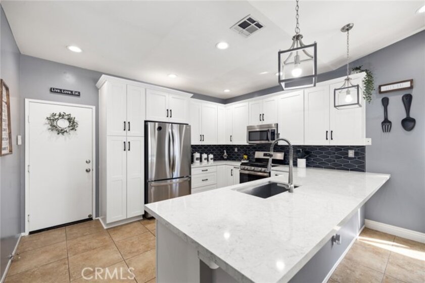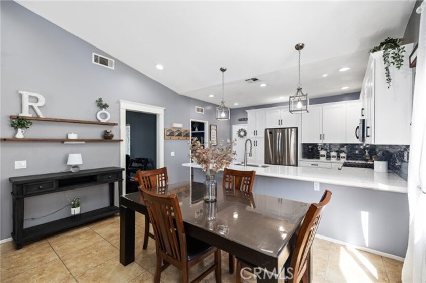 Gorgeous single-story home with a 3-car garage located in the highly coveted West Murrieta Grizzly Ridge community. From the moment you arrive, you’ll appreciate the charming gated private courtyard and impressive double-door entry. Inside, the home features updated LVP flooring throughout the majority of the home and brand-new carpet in the bedrooms, creating a fresh and modern feel. The completely remodeled kitchen showcases updated cabinetry, beautiful quartz countertops, stainless steel appliances, modern LED lighting, and stunning custom pendant lighting over the breakfast bar. The kitchen offers bar seating, a dining area just off the kitchen, and an additional formal dining room, perfect for everyday living or entertaining. The kitchen opens seamlessly to the inviting family room with a cozy fireplace, while a separate formal living room provides additional space for gatherings.The spacious primary suite features a walk-in closet, relaxing soaking tub, and separate step-in shower. Down the hall you’ll find three additional bedrooms and a full bathroom, providing comfortable space for family or guests. Step outside to your private backyard retreat, complete with a large covered patio, low-maintenance turf, custom walkway, and updated vinyl fencing—perfect for relaxing or entertaining. Additional highlights include an indoor laundry room with custom storage and a spacious 3-car garage. All of this in a prime West Murrieta location with NO HOA and LOW TAXES.