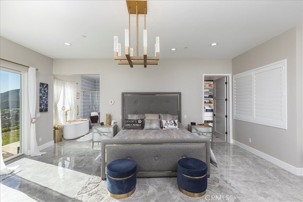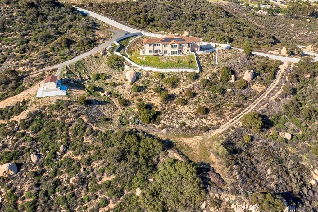Elevated to capture breathtaking panoramic views of city lights, the golf course, and the mountains, this exceptional 2022 custom estate offers refined living across 5,057 sq. ft. on 6.31 private acres. Designed for luxury and comfort, the home features 5 ensuite bedrooms which includes dual primary suites plus 2 powder rooms. Closets were professionally done by the Container Store. The residence showcases sophisticated living spaces including two offices, billiard room (pool table negotiable), 3 wet bars, sound system throughout including the 3 car garage. Thoughtful details continue with Plantation shutters, professionally designed kitchen and premium built-ins, laundry room with a dog wash station. Move-in ready, the home includes all kitchen appliances. Outdoor living is elevated with a free-standing jacuzzi, BBQ island, and breathtaking views from every angle. Additional amenities include owned solar, plus a 1,300 sq. ft. (approx) detached garage/shed, gated entry, low HOA, and favorable low taxes. Supported by septic, propane, and a nearby high-pressure fire hydrant. A rare opportunity to own a turnkey luxury estate with extraordinary views and amazing privacy.