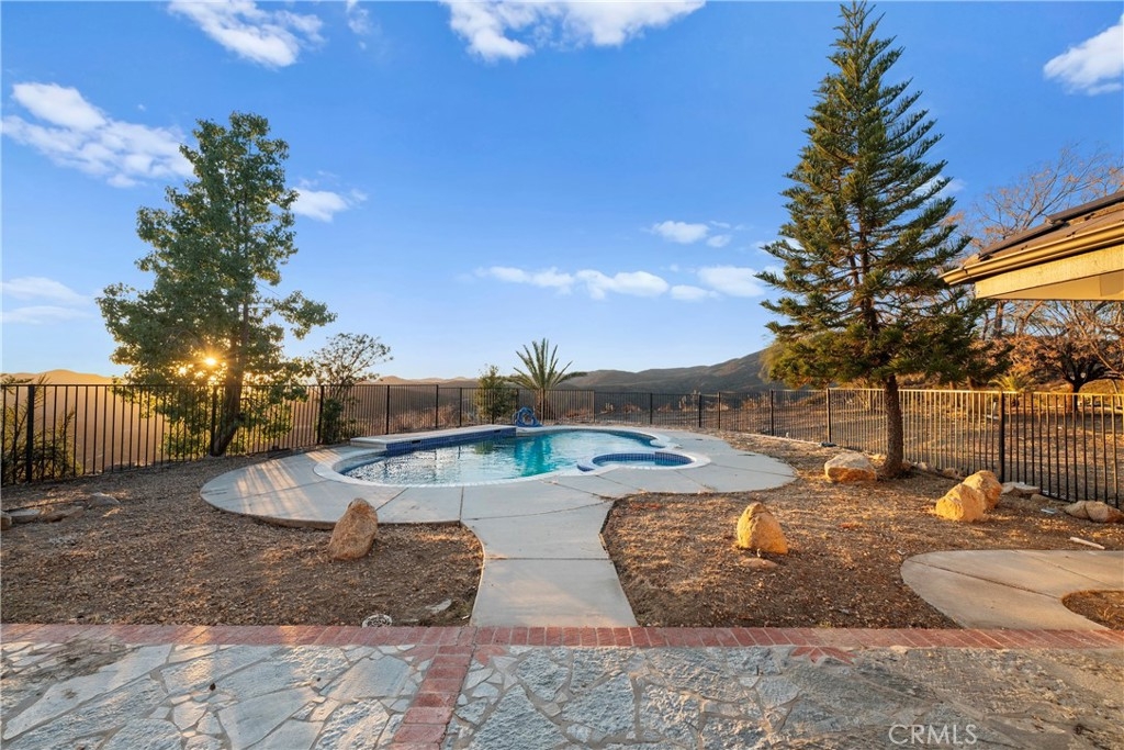 Nestled in the serene and highly desirable La Cresta community, this custom-built single-story home offers the perfect blend of privacy, elegance, and natural beauty. Situated on a sprawling 10-acre estate, this stunning property boasts breathtaking panoramic sunset views from the backyard, making it the ultimate retreat for those seeking peace and tranquility. Step inside to find a thoughtfully designed layout featuring 4 spacious bedrooms and 3 full bathrooms. The master suite, complete with an en-suite bathroom, offers unobstructed views of the surrounding landscape, providing a private sanctuary to unwind. A junior master suite provides additional comfort, while two additional bedrooms are tucked away in a separate wing of the home for optimal privacy. The interior features high-pitched ceilings that create an airy, open ambiance, complemented by warm wood floors throughout. The heart of the home is the expansive kitchen, perfect for entertaining, with ample counter space and room for culinary creativity. Step outside to a backyard oasis featuring a sparkling pool and spa, surrounded by large, mature trees that enhance the home’s secluded feel. Whether you’re relaxing by the pool, hosting gatherings, or simply enjoying the sunset, this outdoor space is truly a haven. Additional features include a 3-car garage, ideal for vehicles or storage, and the property’s proximity to town ensures convenience without sacrificing privacy. This exceptional home is a rare gem offering a lifestyle of comfort, beauty, and tranquility in one of La Cresta’s most sought-after locations. Don’t miss this opportunity to make it yours!