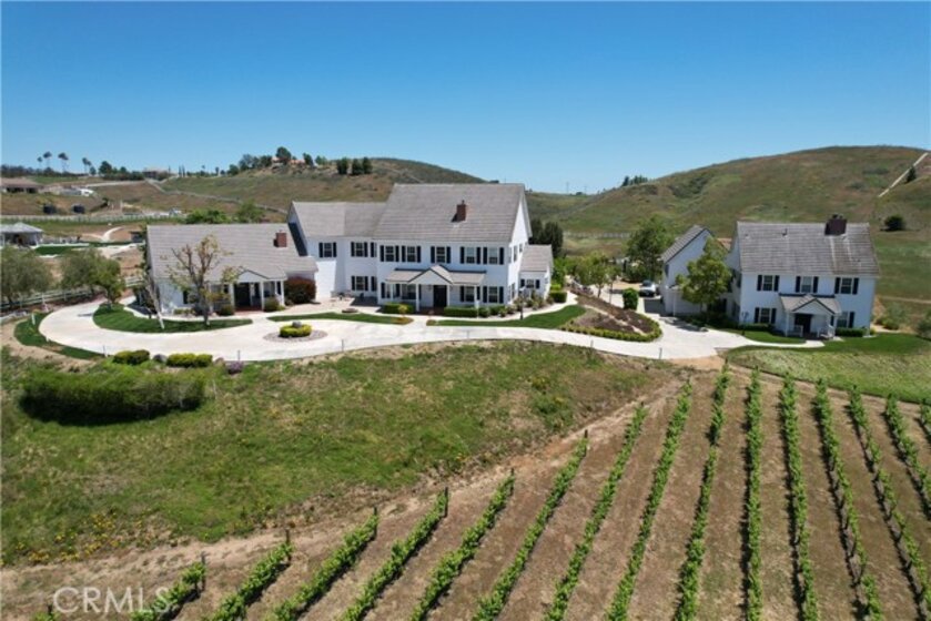 Nestled in the picturesque community of La Cresta, this exceptional property boasts three classic traditional style homes totaling 9222 square feet of square footage and is situated on a sprawling five-acre estate. The property's serene setting combined with its stunning architecture and vineyard views creates a truly unique and desirable living experience. This is a unique opportunity for a family compound, corporate retreat or rental income. The home sits atop a gentle hill covered in almost three acres of Pinot Grigio and reached by a sweeping driveway past the gated entry. Each home is a stand-alone residence and offers a blend of modern convenience and classic charm. All three residences offer three bedrooms, two with expansive bonus rooms and full-service kitchen with open floor plans. A beach type setting offers a fenced in pool, sand, pergola and three oversized umbrellas that are permanent fixtures. Three covered structures house the horses which includes an arena and room to grow. Whoever said, "you can't have it all," obviously never saw this property. If these attributes check off your boxes, please see this charming country estate.