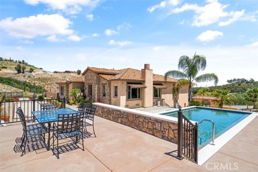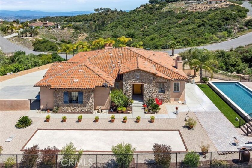 PERFECT LOW-MAINTENANCE ESTATE!!! A WONDERFUL COMBINATION OF PRIVACY, MULTI-GENERATIONAL USE, LOW MAINTENANCE & TURNKEY LUXURY IN LA CRESTA! This home is one of the rare opportunities on the Santa Rosa Plateau to own 5 acres, but without the maintenance. “Lock-and-Leave” properties here are rare, making this a perfect weekend retreat, family vacation estate, or full-time residence for those who want the ultimate in privacy and serenity, yet not wanting the responsibility of working the land. This beautiful estate offers a mature fruit orchard and pristine garden area, with most of the manicured grounds on low-maintenance drip systems, high-end turf, tasteful hardscape and room to further expand the agriculture, if you desire. There is also ample room for an ADU, pool house or workshop. The home’s unique floorplan is conveniently set up as two independent spaces - The primary floor hosts the main living areas, dining room, outdoor living room balcony, ensuite primary bedroom, laundry, 3-car garage and chefs’ kitchen with high-end appliances, butlers pantry and extra-large walk-in pantry. Down a stairway, accented by a custom iron gate, you will find another living room, 3 additional bedrooms, massive closets, and a spacious gym, which would also make a great theater room. From the lower level, walk out to the private patio and access the grounds, which include an authentic bocce ball court and fabulous pool with dining deck. The entire estate (inside and out) is equipped with sound and alarm systems, high ceilings, and on-trend details, making it not just turnkey luxury, but a festive home to share with friends and family. Expansive views, almost no traffic, peaceful location, and wide-open spaces with lots of parking compliment this INCREDIBLE TURNKEY ESTATE! *****SANTA ROSA PLATEAU: 5-acre minimum parcels (10-acre minimum. in SR West), just minutes to schools, restaurants, hospitals, grocery stores, 15 Fwy & Temecula Wine Country. Enjoy this peaceful ranch community w/no commercial businesses, robust social activities, miles of private community trails & 1000s of acres of Ecological Reserve…All less than 1.5 hours from LA, SD, OC, Palm Springs & Big Bear. Discover the country, yet convenient, lifestyle of La Cresta, Tenaja & the Communities of the Santa Rosa Plateau!