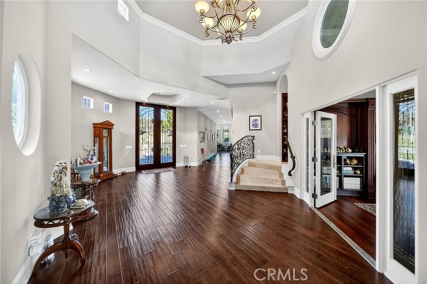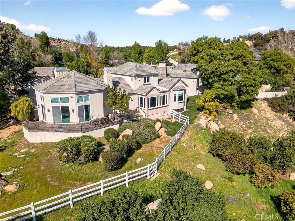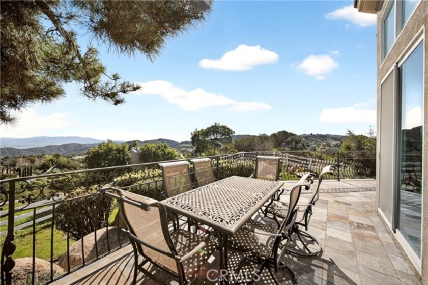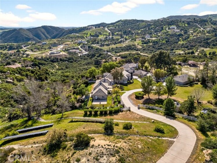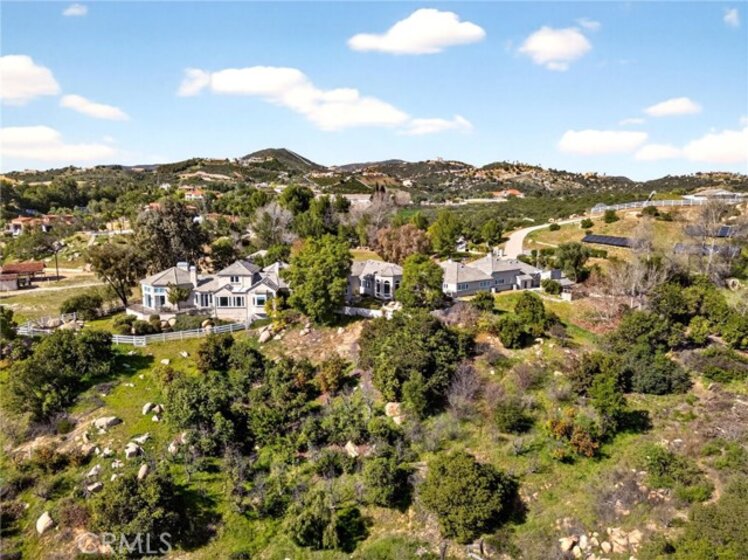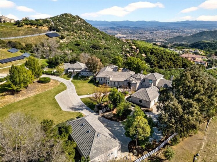 Perched high in the rolling hills of La Cresta, this extraordinary five-acre estate is the definition of secluded luxury and timeless elegance. Framed by expansive, panoramic views and surrounded by natural beauty, the property blends refined French country design with grand-scale living in one of Murrieta’s most coveted enclaves. The main residence offers 4 bedrooms and 3 beautifully appointed bathrooms, showcasing soaring ceilings, exquisite architectural details, and thoughtfully curated finishes throughout. A stately library invites quiet moments of reflection, while the breathtaking great room commands attention with an unforgettable, show-stopping fireplace—an architectural centerpiece that anchors the home and sets the tone for elegant entertaining. A wet bar for entertaining off the kitchen which boasts the most high-end appliances. Designed for both multigenerational living and ultimate flexibility, the estate includes an attached 3-bedroom, 2-bath ADU, ideal for guests, extended family, or a private retreat. Outdoors, the land unfolds with endless potential—whether for entertaining under open skies, enjoying peaceful sunsets, or simply taking in the elevated views that stretch across the valley. Completing the property is a detached four-car garage (including the 2 attached car to the home), offering ample space for car enthusiasts, storage, or creative pursuits. Every element of this estate has been thoughtfully designed to deliver privacy, presence, and prestige—an exceptional offering where luxury, space, and setting come together in perfect harmony.