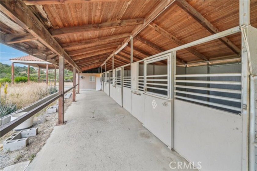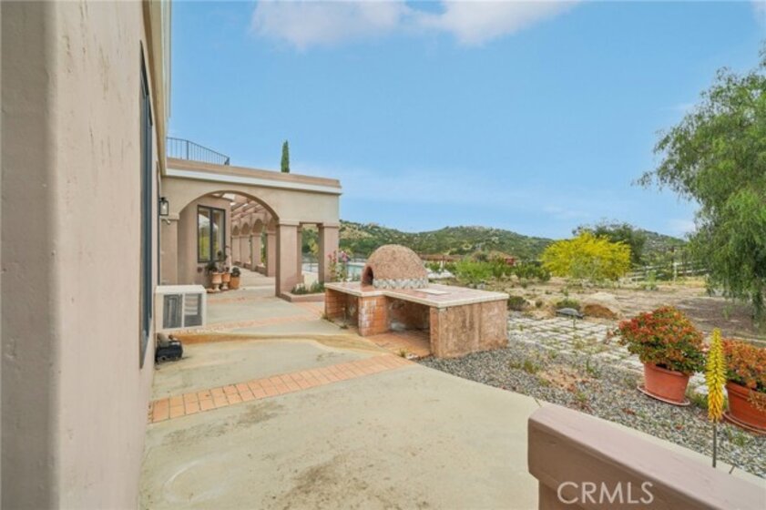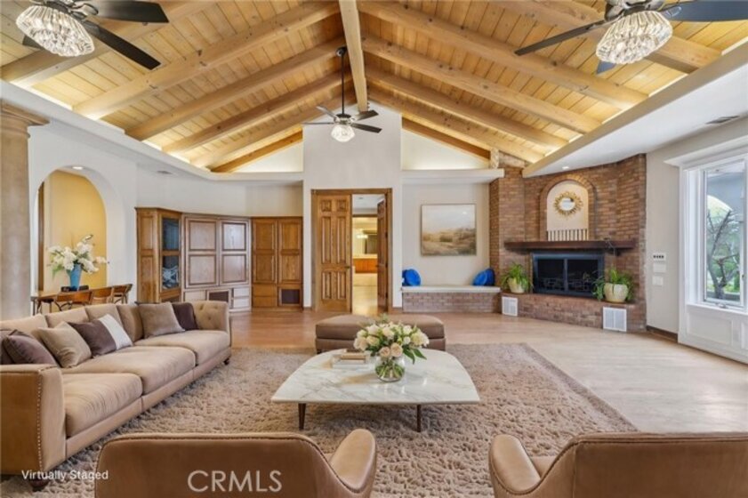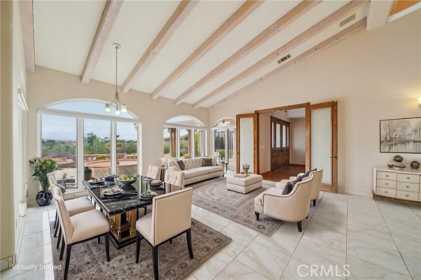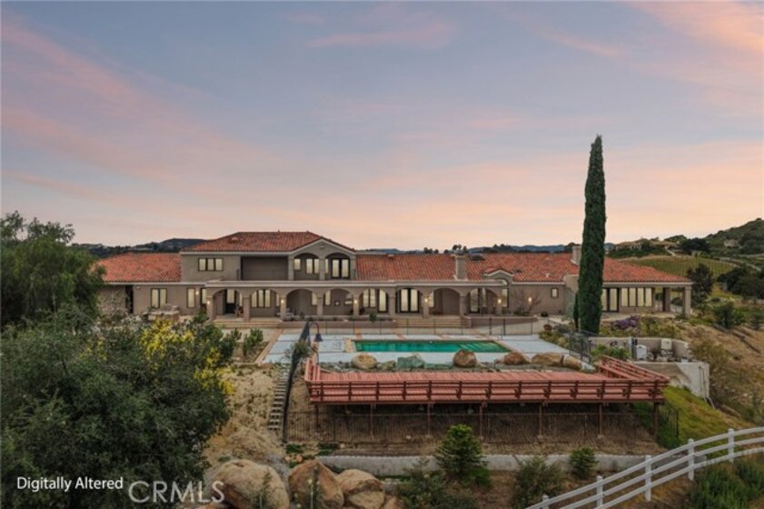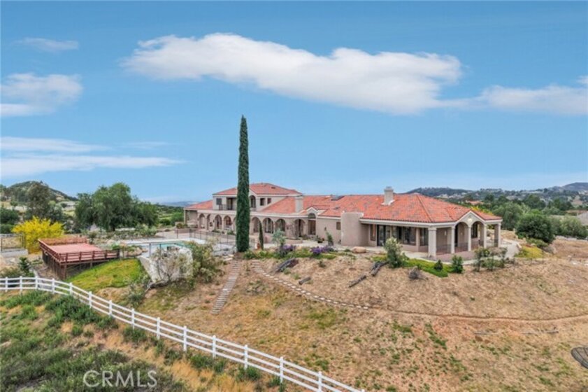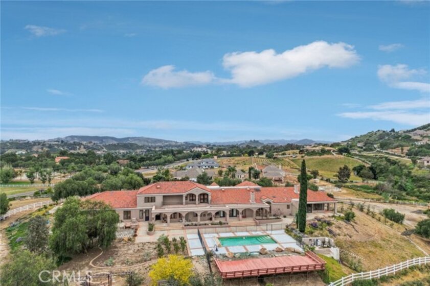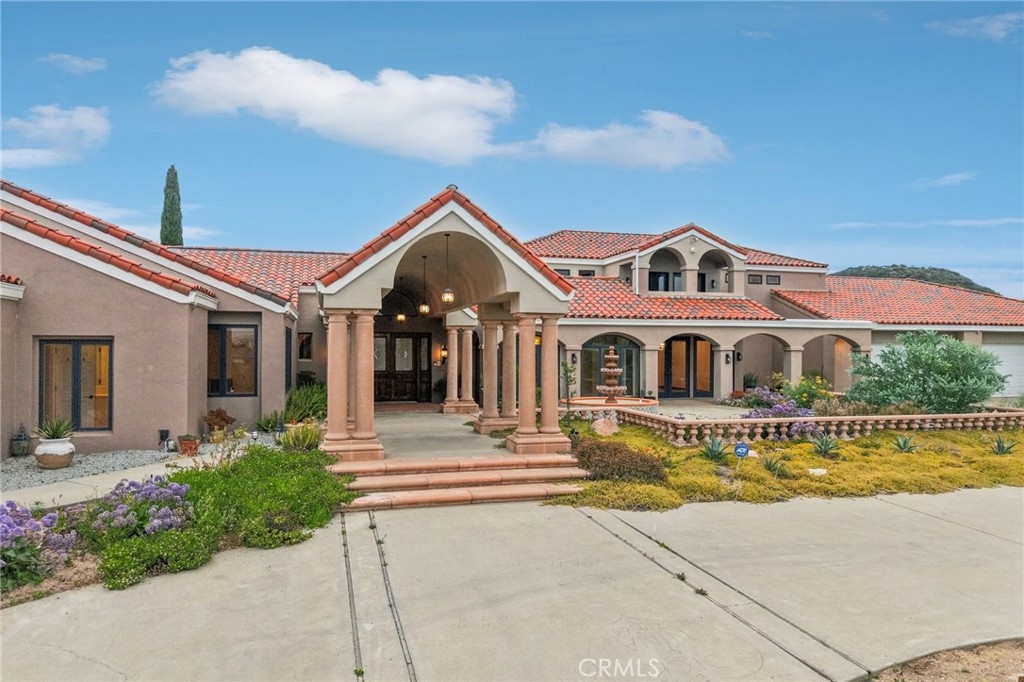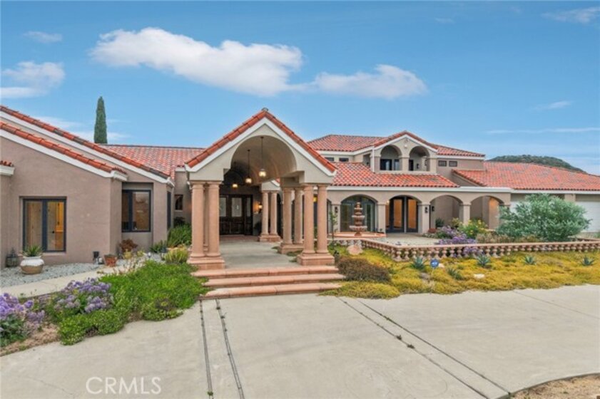 Experience elevated country living in this extraordinary equestrian estate in the prestigious La Cresta community. Set on 5.55 scenic acres, this one-of-a-kind property captures sweeping panoramic views from nearly every room and offers an unmatched blend of luxury, versatility, and lifestyle. Beyond the grand double-door entry, a dramatic foyer with terra cotta tile leads to elegant formal living and dining spaces featuring marble flooring, soaring wood-beamed ceilings, and expansive windows framing breathtaking mountain and garden vistas. The impressive family room is designed for gathering, complete with a fireplace, custom built-ins, rich wood flooring, and French doors that open to the outdoor living areas. The chef’s kitchen offers granite countertops, a large center island, ample cabinetry, and picturesque views. Multiple flexible spaces—including a private office, den, and spa room—provide endless options for work, relaxation, and entertaining. The luxurious primary suite is a private retreat with a fireplace, dedicated office, outdoor access, and a spa-inspired bathroom featuring a soaking tub, dual vanities, and dual walk-in closets. Upstairs, dual staircases lead to a spacious loft, three additional bedrooms, and a large view balcony. Designed for multi-generational living or income potential, the property includes a studio casita with full bath and kitchenette, as well as a converted caretaker’s residence attached to the barn with its own living space, kitchen, and bedrooms. Equestrian and outdoor amenities abound, including a 5-stall barn, RV garage, fenced pool with view deck and outdoor kitchen, and an indoor spa. A leased solar system adds efficiency to this remarkable estate. This is a rare opportunity to own a private, view-rich compound with exceptional flexibility in one of La Cresta’s most sought-after settings.