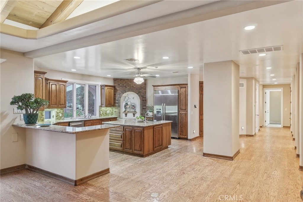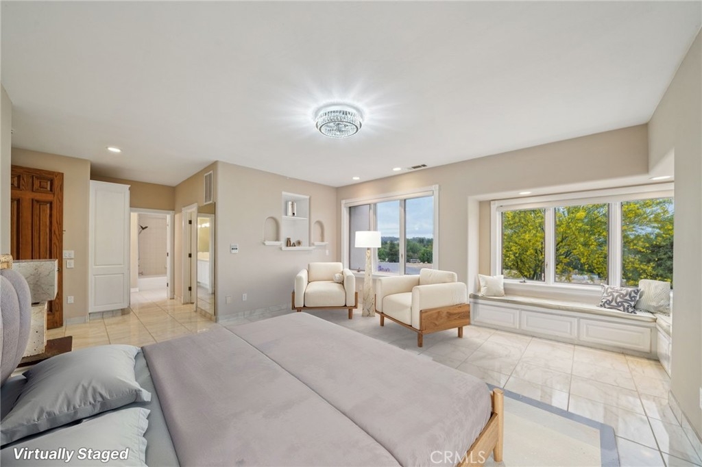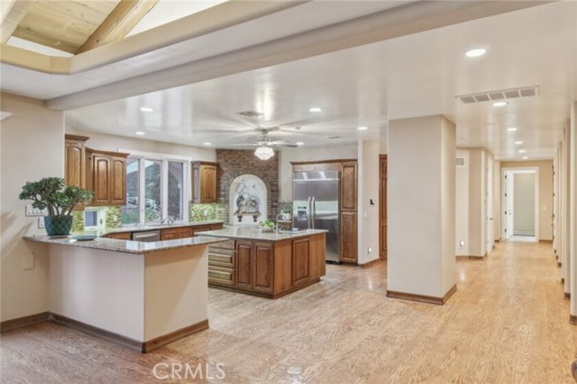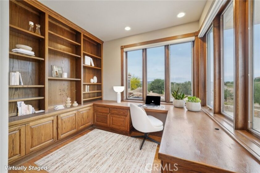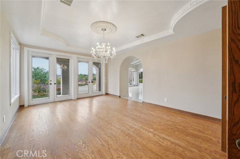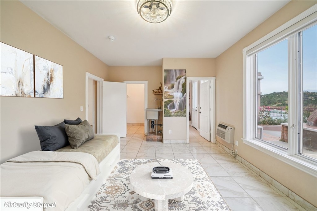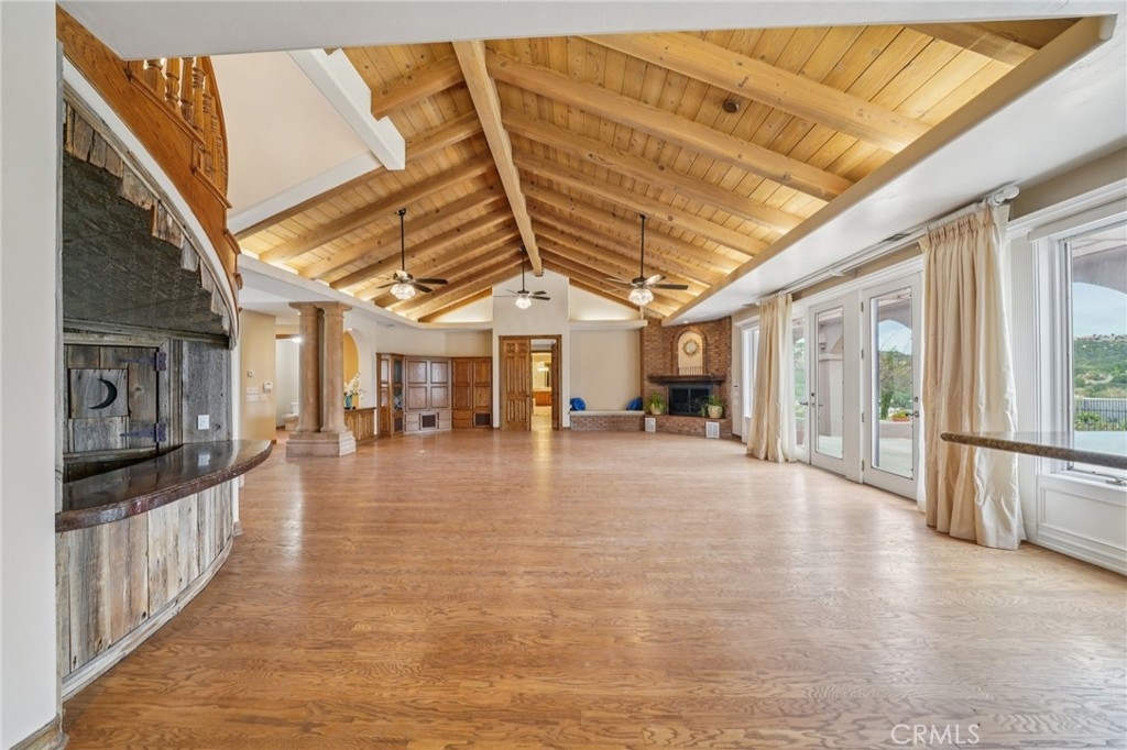 Experience elevated country living in this extraordinary equestrian estate in the prestigious La Cresta community. Set on 5.55 scenic acres, this one-of-a-kind property captures sweeping panoramic views from nearly every room and offers an unmatched blend of luxury, versatility, and lifestyle. Beyond the grand double-door entry, a dramatic foyer with terra cotta tile leads to elegant formal living and dining spaces featuring marble flooring, soaring wood-beamed ceilings, and expansive windows framing breathtaking mountain and garden vistas. The impressive family room is designed for gathering, complete with a fireplace, custom built-ins, rich wood flooring, and French doors that open to the outdoor living areas. The chef’s kitchen offers granite countertops, a large center island, ample cabinetry, and picturesque views. Multiple flexible spaces—including a private office, den, and spa room—provide endless options for work, relaxation, and entertaining. The luxurious primary suite is a private retreat with a fireplace, dedicated office, outdoor access, and a spa-inspired bathroom featuring a soaking tub, dual vanities, and dual walk-in closets. Upstairs, dual staircases lead to a spacious loft, three additional bedrooms, and a large view balcony. Designed for multi-generational living or income potential, the property includes a studio casita with full bath and kitchenette, as well as a converted caretaker’s residence attached to the barn with its own living space, kitchen, and bedrooms. Equestrian and outdoor amenities abound, including a 5-stall barn, RV garage, fenced pool with view deck and outdoor kitchen, and an indoor spa. A leased solar system adds efficiency to this remarkable estate. This is a rare opportunity to own a private, view-rich compound with exceptional flexibility in one of La Cresta’s most sought-after settings.