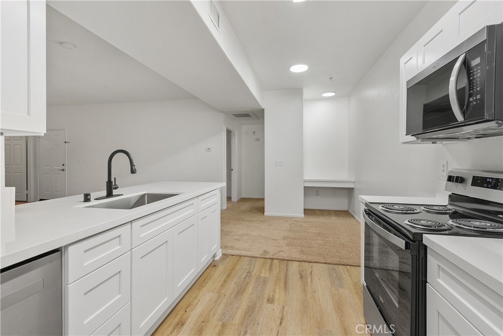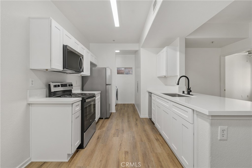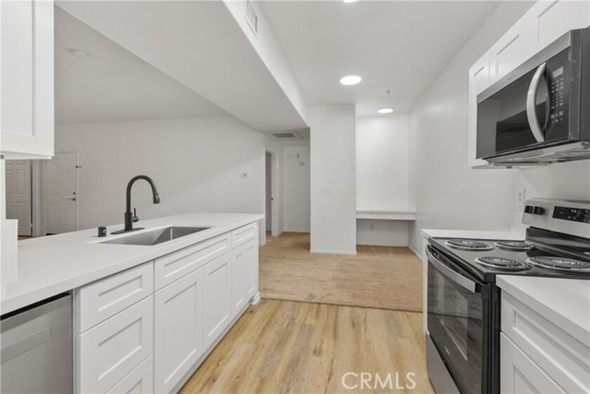 VA & FHA APPROVED! Welcome to this brilliantly updated lower-level end-unit condo that offers the perfect blend of comfort, convenience, and true turnkey living. Fresh paint, new flooring, and brand-new cabinetry create a bright, modern atmosphere throughout. The kitchen shines with new stainless - steel appliances—including oven, dishwasher, microwave, and fridge - plus quartz countertops. An in-unit laundry room with washer adds everyday ease so you can move right in with confidence. Enjoy two generously sized bedrooms, each featuring a large walk-in closet, along with two full bathrooms that provide comfort and privacy. The open concept layout enhances the home’s inviting flow, ideal for both daily living and entertaining. Parking is effortless with your own dedicated carport and a private One Car Garage—perfect for two personal vehicles. The location is unbeatable: the first building on the right as you enter the community, and unit 2412 is in the back of the building, plus just minutes from freeway access and a short drive to the vibrant shopping, dining, and entertainment and Wine Country of Murrieta and Temecula. The Villas at Madison Park is a gated community offering exceptional amenities, including a clubhouse, sparkling pool, spa, sauna, fully equipped gym, racquetball court, parks, assigned covered parking, and ample guest parking. The HOA is low and covers, water and sewer! We welcome your consideration of ownership, to own this newly renovated condo, with low taxes, in a highly desirable gated neighborhood, and remember… your home happiness is just a call away!