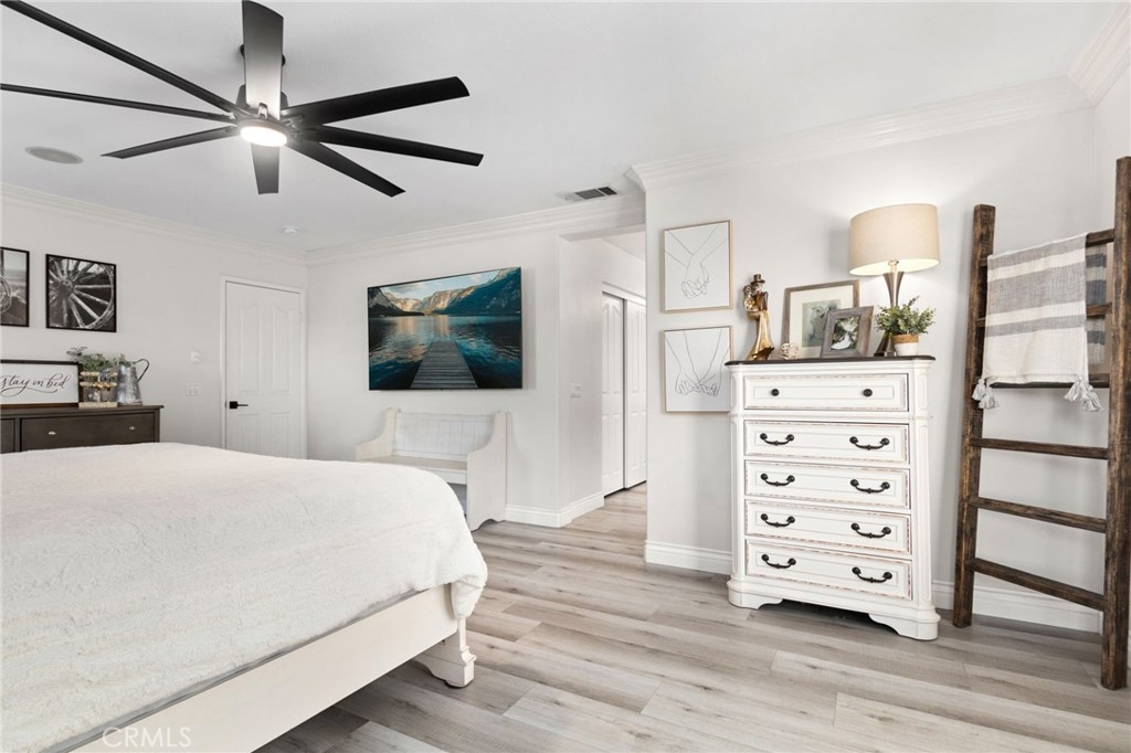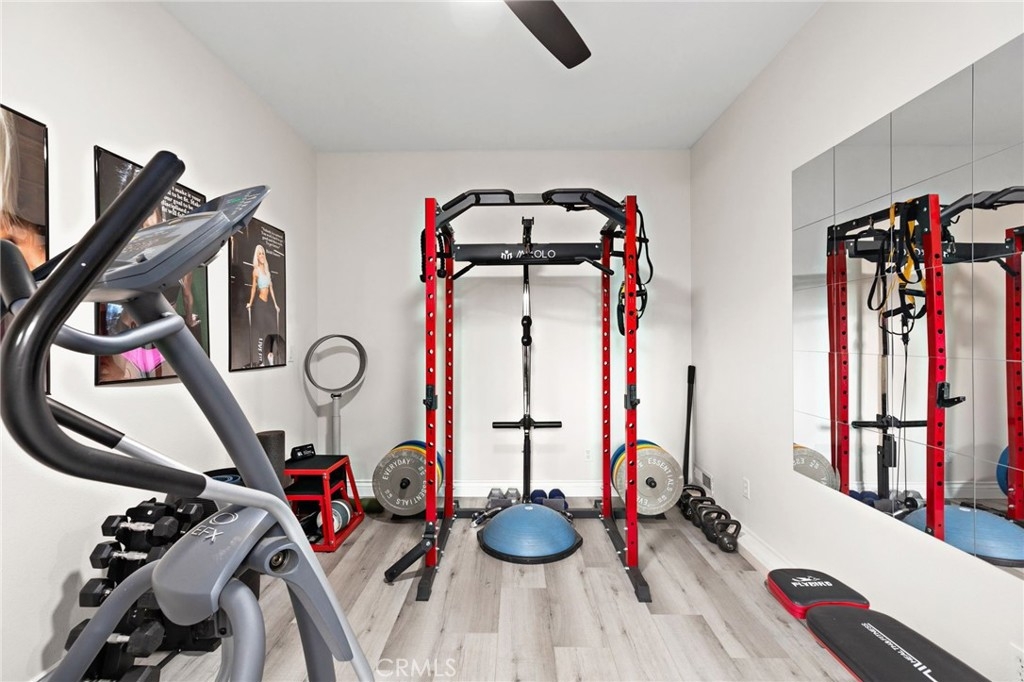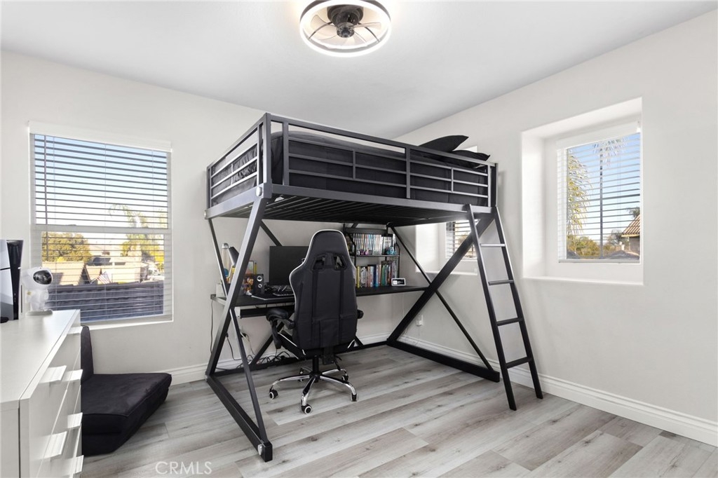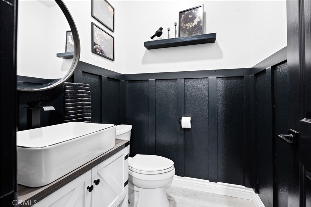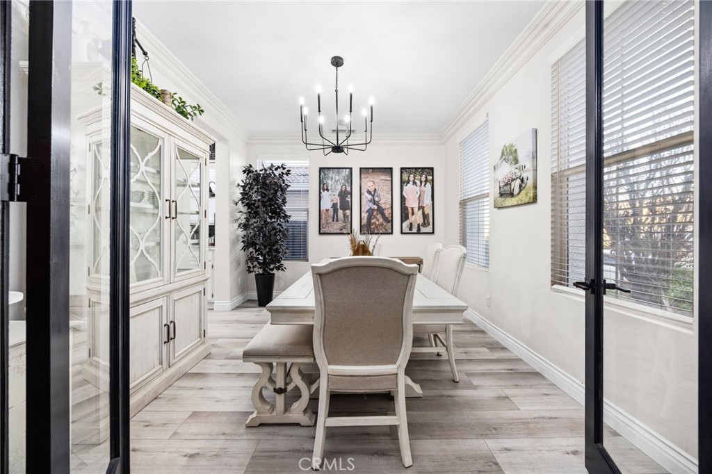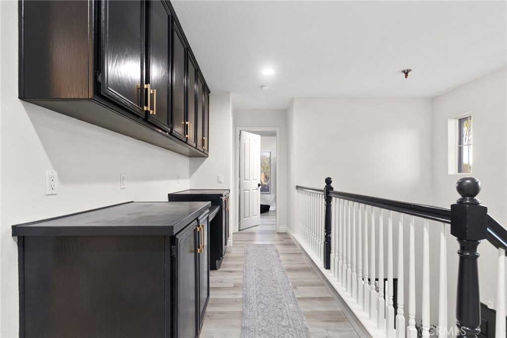 Welcome to this beautifully curated 4-bedroom, 2.5-bath, 2,301 sq ft two-story home, where refined modern farmhouse design meets elevated comfort in a highly desirable Murrieta community. From the moment you enter, soaring ceilings and new wide-plank LVP flooring create a light, sophisticated atmosphere throughout the main living spaces. The heart of the home is the stunningly updated kitchen, featuring crisp quartz countertops, upgraded gold hardware, modern black backsplash, a butler’s pantry or perfect coffee station, and generous prep space that opens seamlessly to the family room. The formal dining area has double door and an entrance from the kitchen/butlers pantry to the dining room (fancy!). All bedrooms are located upstairs, including well-sized secondary bedrooms that share a hall bath with dual sinks, while the primary suite offers a luxurious retreat complete with crown molding, a spacious walk-in closet, and an ensuite bath with dual vanities, a separate soaking tub, and a walk-in shower. A thoughtfully converted third-car garage adds versatility as a dedicated gym or hobby space with backyard access and water hook-ups. Outdoors, enjoy a private backyard oasis showcasing lush tropical landscaping, a sparkling pool and spa, mature fruit trees, and an expansive patio cover with extra height, lighting, fans, TV and outlets, perfect for elevated outdoor entertaining. Conveniently located near well-regarded schools including Oak Meadows Elementary School, Bell Mountain Middle School, and Santa Rosa Academy, this stunning home blends timeless style, thoughtful upgrades, and resort-inspired living in one of Murrieta’s most sought-after neighborhoods.