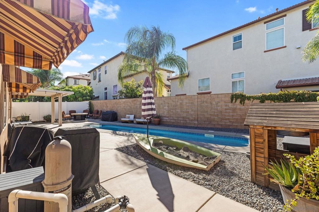 This beautifully maintained, move-in ready residence is located in the desirable Murrieta Highlands area and offers a fantastic blend of comfort, space, and modern lifestyle. Boasting approximately 2,459 square feet of living space, this home features 4 bedrooms, 2 full bathrooms, and sits on a generous 6,534 sq ft lot. Step inside to find a light and open floor plan with a welcoming living room and a cozy fireplace, central air conditioning for year-round comfort, and plenty of room to spread out. The kitchen and dining area provide the perfect setting for everyday living and entertaining alike. You’ll find the spacious primary suite with its own en-suite bathroom, complemented by three additional well-appointed bedrooms and full baths — ideal for family, guests, or even a home office. Outside, the landscaped yard invites relaxation and outdoor enjoyment with a pool. A three-car attached garage offers ample parking and storage.