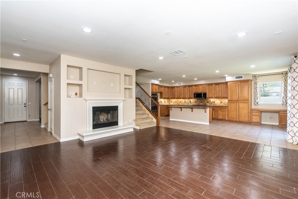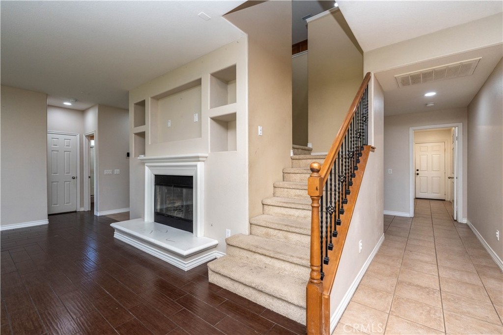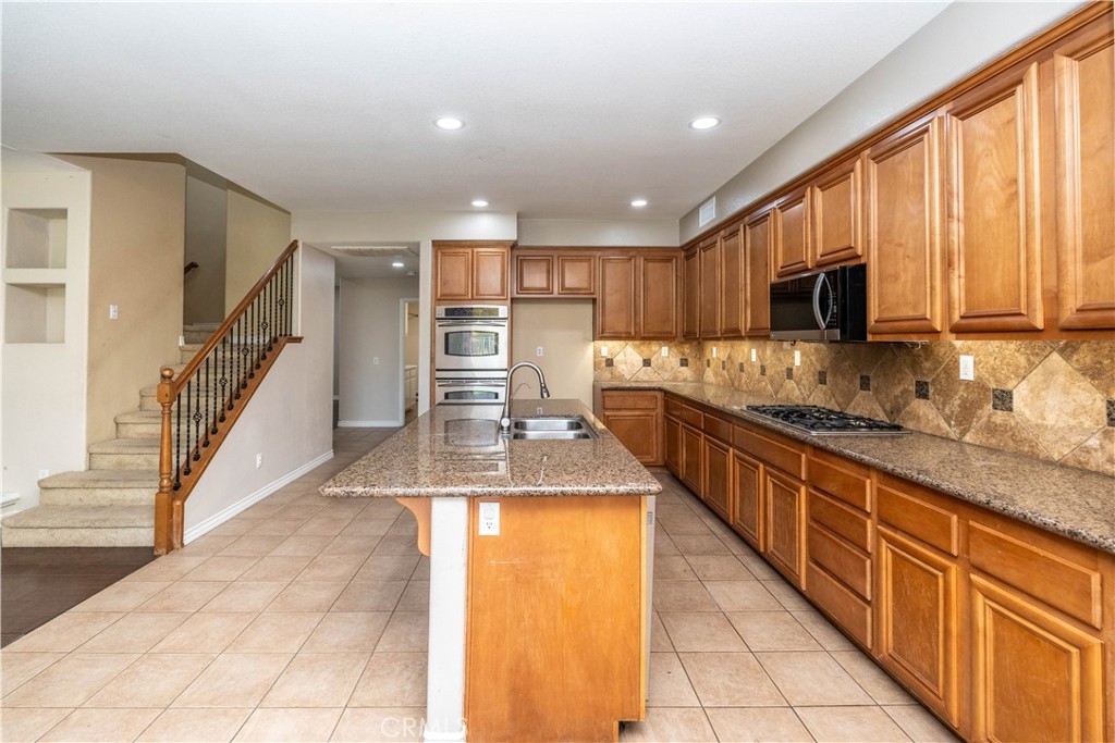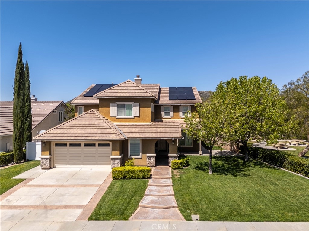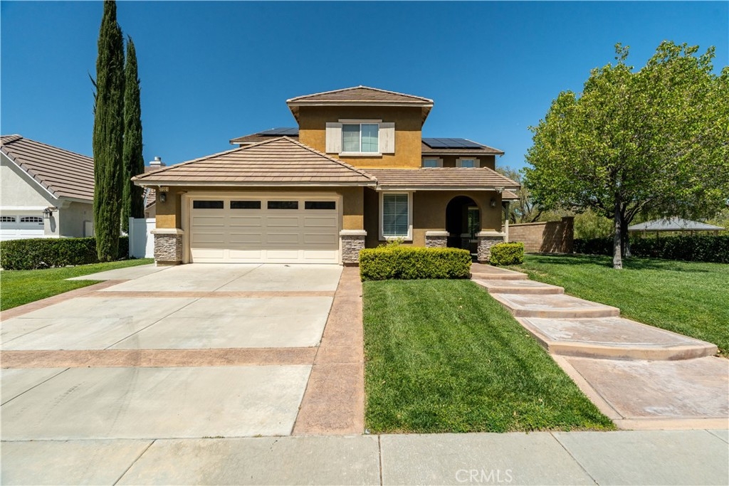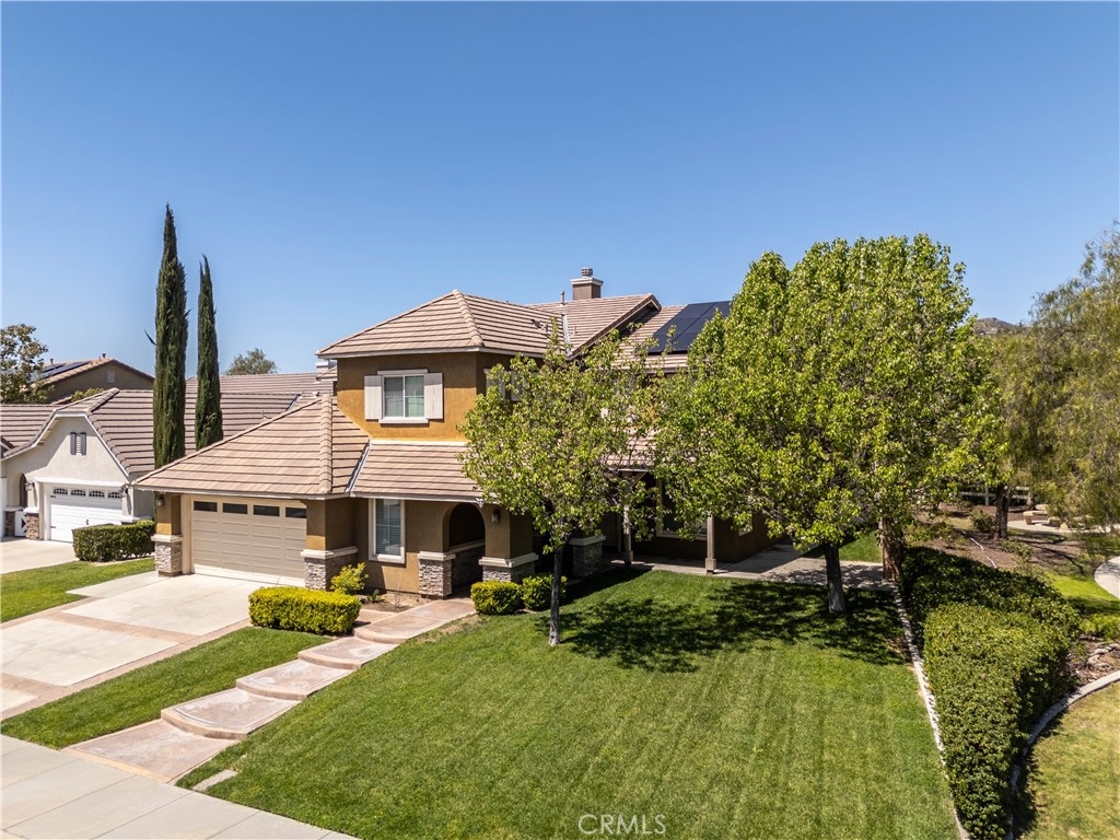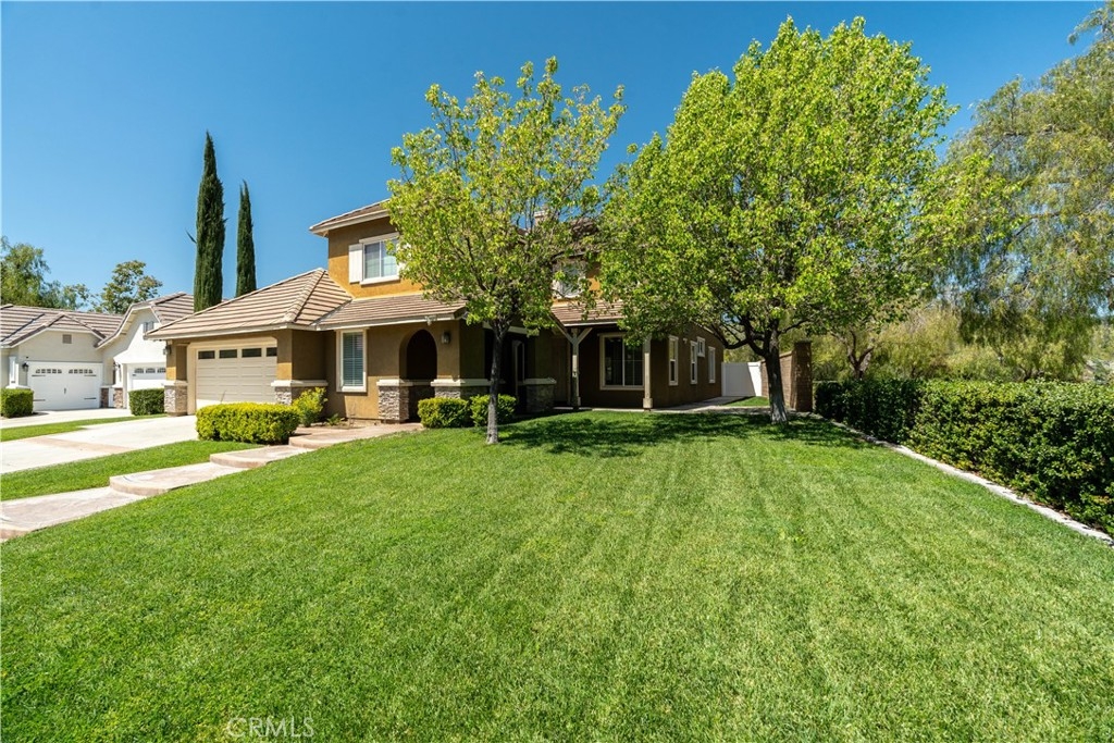 Spacious home located in Murrieta Oaks offering a generous floor plan. Entering the home you are welcomed by separate formal living and dining areas with wood laminate flooring and dual staircases to the upper level from both the front of the home and the Great Room. The chef’s kitchen is equipped with stainless steel appliances, upgraded cabinetry, granite countertops, and an oversized center island perfect for meal preparation and gatherings. The open-concept family room includes a cozy fireplace. A bedroom and full bathroom are conveniently located on the main floor. Upstairs, a large loft area with ample storage space. The expansive primary suite features a balcony with serene views of the mountains and greenbelt, plus a luxurious bathroom with custom tile, a deep soaking tub, large vanity, and a walk-in closet. Additional features include an indoor laundry room with cabinetry and sink, a three-car tandem garage, and no rear or right-side neighbors—offering enhanced privacy. Conveniently located near freeways, shopping, hospitals, parks, and within walking distance to an elementary school. A must-see home in a prime location!