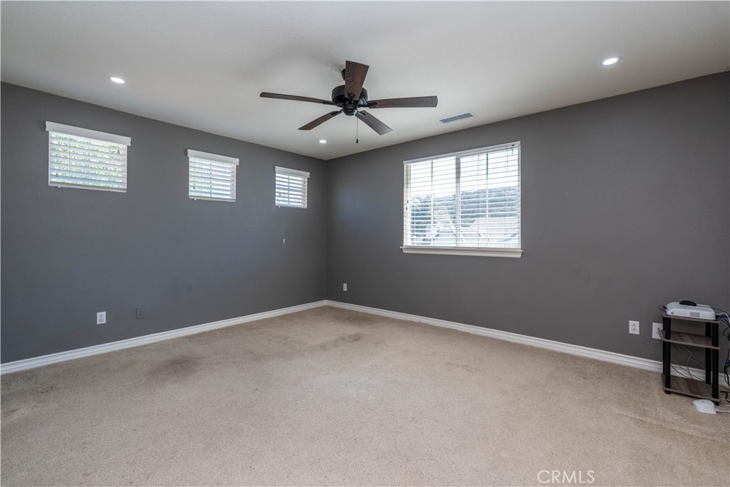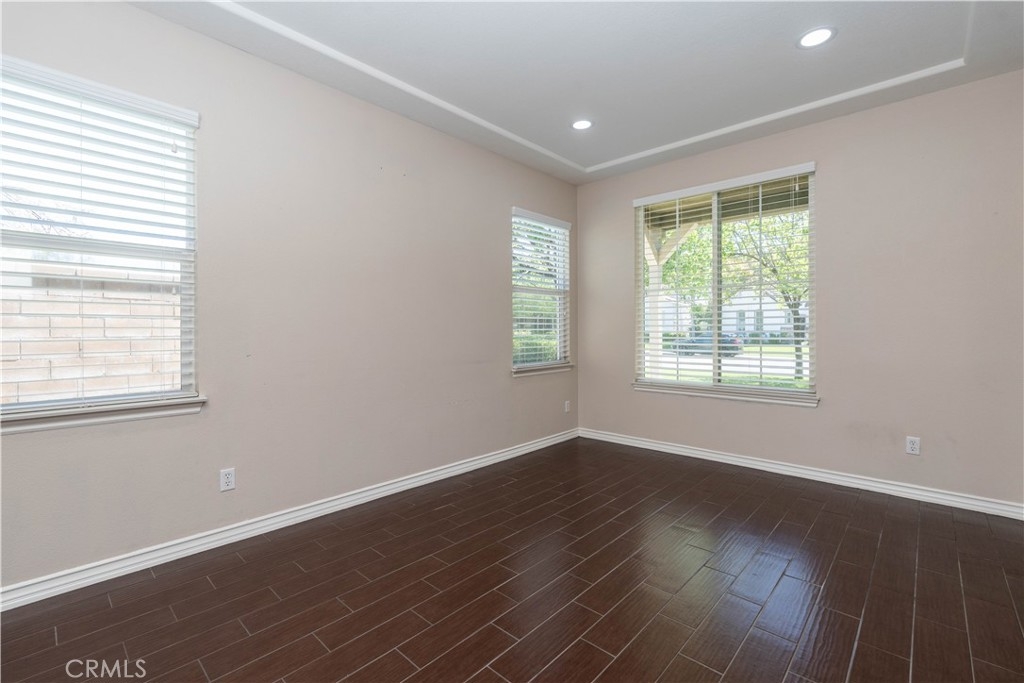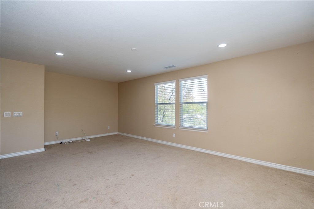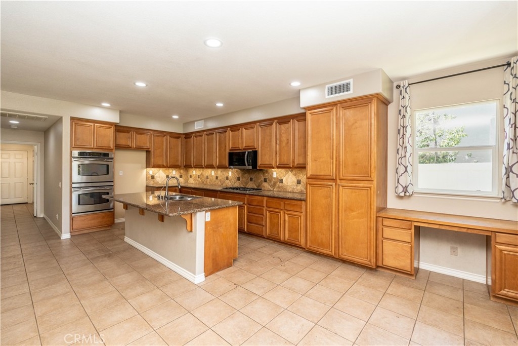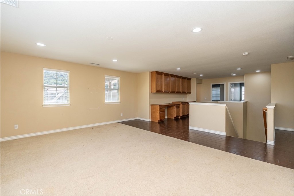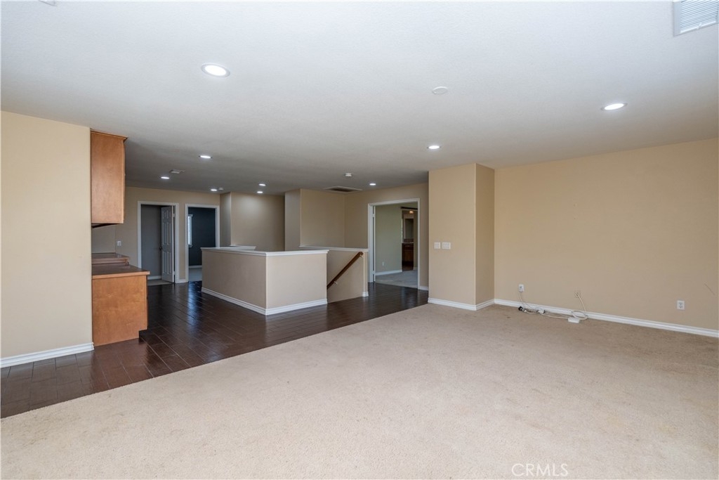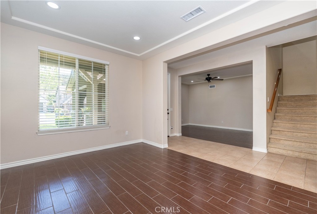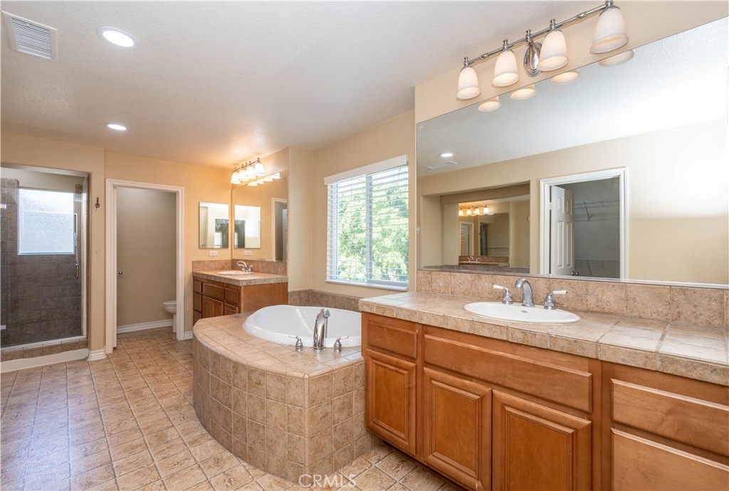 Spacious home located in Murrieta Oaks offering a generous floor plan. Entering the home you are welcomed by separate formal living and dining areas with wood laminate flooring and dual staircases to the upper level from both the front of the home and the Great Room. The chef’s kitchen is equipped with stainless steel appliances, upgraded cabinetry, granite countertops, and an oversized center island perfect for meal preparation and gatherings. The open-concept family room includes a cozy fireplace. A bedroom and full bathroom are conveniently located on the main floor. Upstairs, a large loft area with ample storage space. The expansive primary suite features a balcony with serene views of the mountains and greenbelt, plus a luxurious bathroom with custom tile, a deep soaking tub, large vanity, and a walk-in closet. Additional features include an indoor laundry room with cabinetry and sink, a three-car tandem garage, and no rear or right-side neighbors—offering enhanced privacy. Conveniently located near freeways, shopping, hospitals, parks, and within walking distance to an elementary school. A must-see home in a prime location!