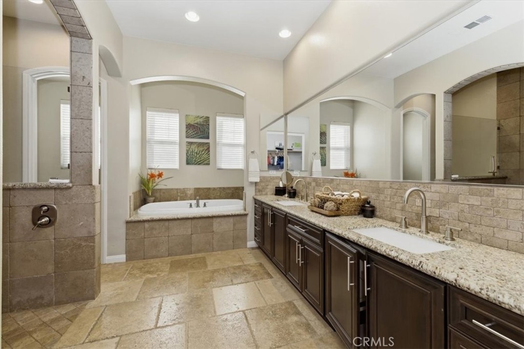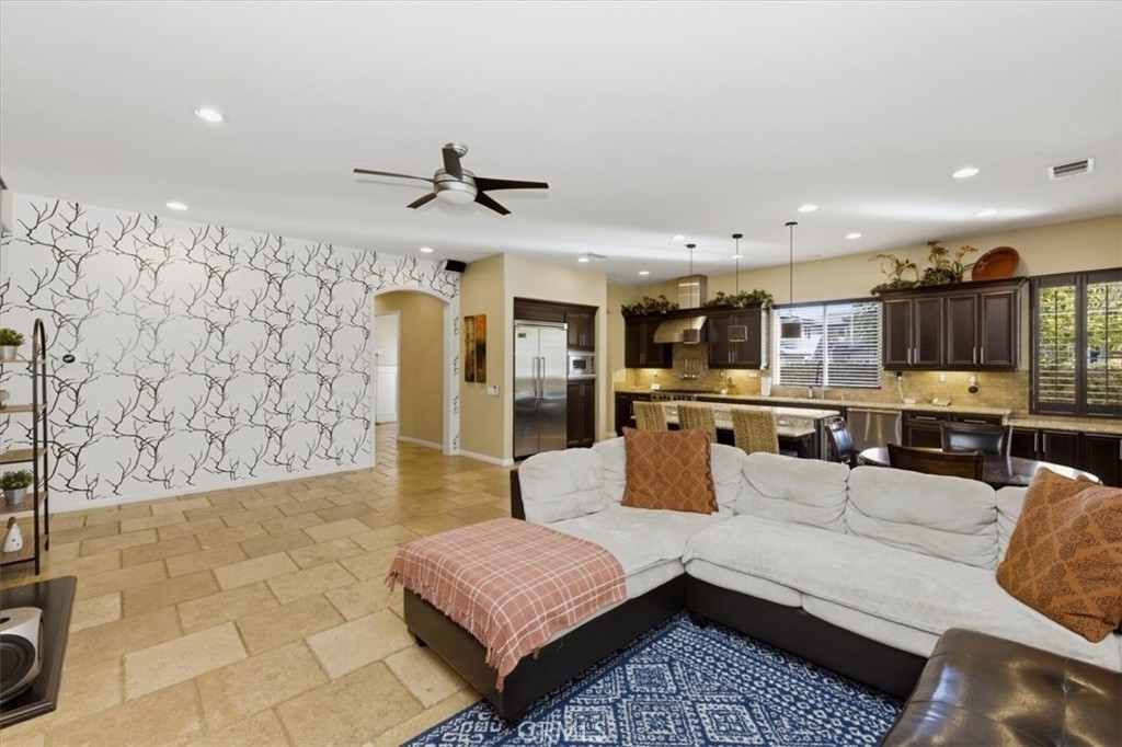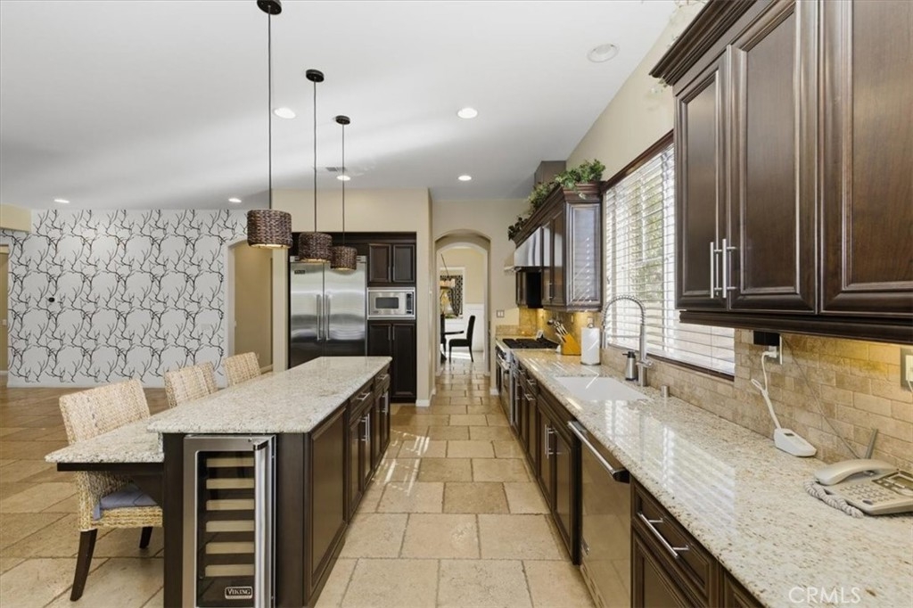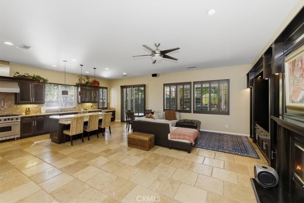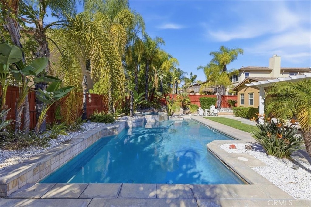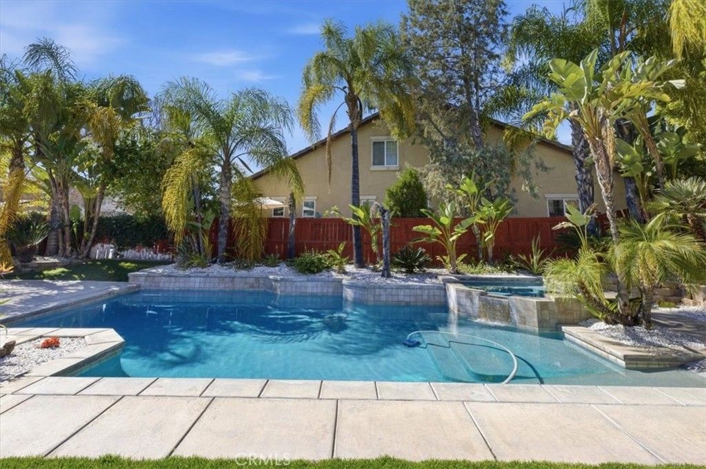 Hard to find upgraded single story home with entertainer's dream pool backyard. This upgraded and meticulously maintained home offers a spacious and well designed floor plan with great amenities and a back yard paradise. The upgraded kitchen features Viking stainless appliances and includes a large center island, walk-in pantry and loads of cabinets and counter space. The kitchen on one side opens to a large family room with an inviting fireplace. On the other side of the kitchen the butler's pantry leads into the formal dining room. Off of the dining room is a cozy living room/den/sitting room. There is direct access to both a double and single car garages. The primary bedroom has direct access to the pool and spa area. The primary bath features an over-sized walk-in shower, dual walk-in close. Home includes water softener and leased solar. Make sure to check out the virtual tour and schedule an appointment to see it in person.