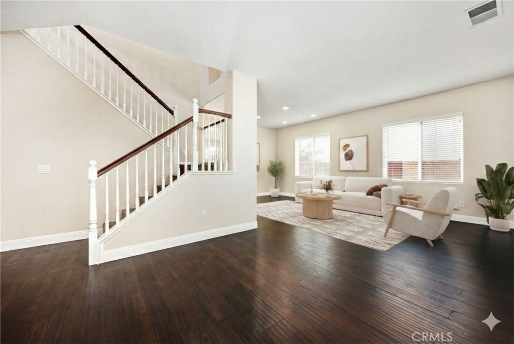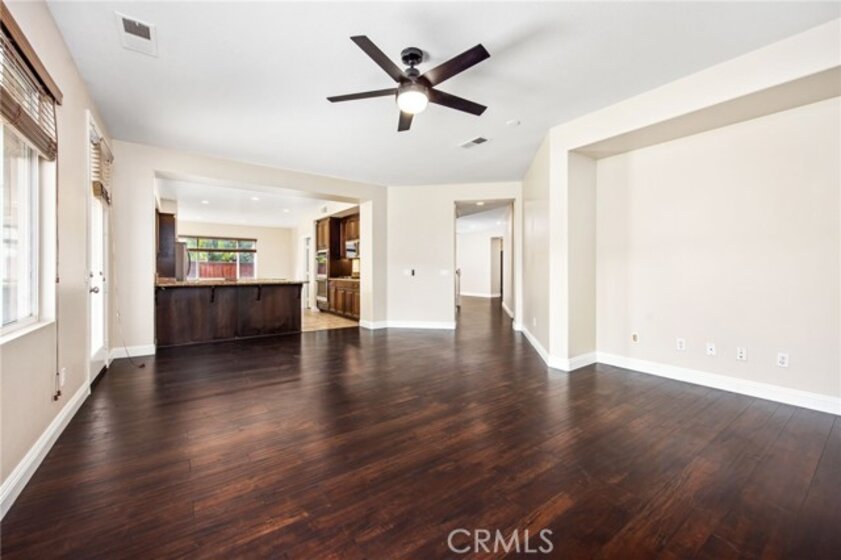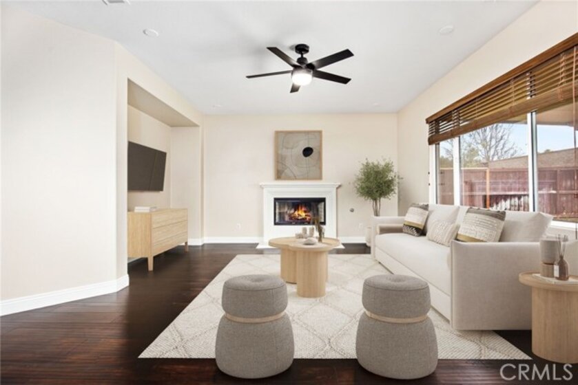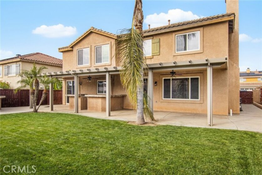 Spacious and thoughtfully designed, this 5-bedroom, 3.5-bath home offers approximately 3,233 square feet of living space with a flexible floor plan and extensive upgrades throughout. The main level features a bedroom and full bath, ideal for guests or multi-gen use needs, along with expansive living and dining areas accented by large windows and recessed lighting. The open-concept kitchen includes granite countertops, an oversized center island with bar seating, espresso cabinetry, a walk-in pantry, stainless steel appliances, and double ovens. The kitchen flows seamlessly into the family room with a fireplace, creating a functional and inviting gathering space. Additional main-level features include a powder room, smart thermostat, and smart-enabled lighting and fans. Upstairs, you’ll find four additional bedrooms, an open landing with built-in desk workspace, and a dedicated laundry room. The primary suite offers generous proportions, a large walk-in closet, and a spa-inspired bathroom featuring a custom walk-in shower with multiple shower heads and designer finishes. The backyard is designed for entertaining with multiple outdoor islands, built-in BBQ, sinks, and electrical and speaker pre-wiring. A covered patio with ceiling fans provides shaded outdoor living space, and the yard offers ample room for future customization. Additional highlights include laminate wood flooring in common areas and stairs. Conveniently located near parks, shopping, dining, and commuter routes, this home combines space, functionality, and modern upgrades in a well-established Murrieta neighborhood with award winning Murrieta schools.