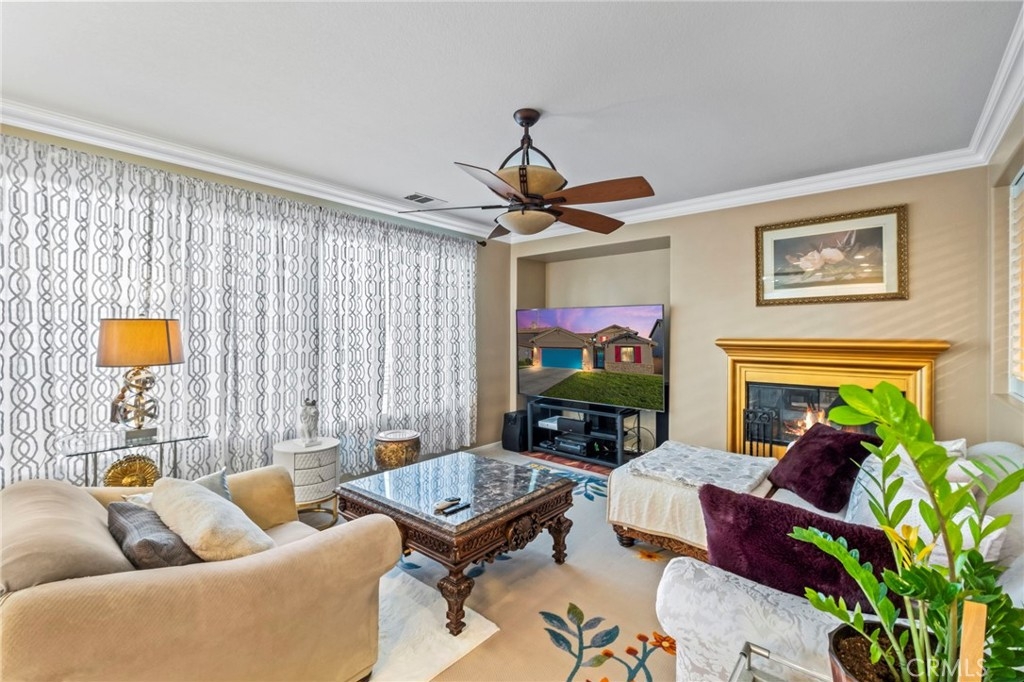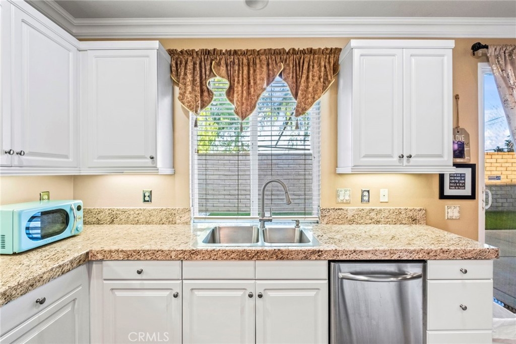 Welcome to this beautifully maintained turnkey home, featuring 4 bedrooms and 3 baths! As you step inside, you'll be greeted by elegant crown molding and a flowing floor plan that creates a warm and inviting atmosphere. The spacious kitchen is a true highlight, complete with an eat-in area and a generous granite island, perfect for culinary enthusiasts. You'll find plenty of bright white cabinets to store all your cooking essentials, seamlessly connecting to the cozy family room, where a charming fireplace adds an extra touch of comfort. Step outside to discover a low-maintenance backyard with artificial grass, ideal for relaxation and outdoor gatherings. A full bath and a bedroom located downstairs offer great versatility, whether you need a home office or a comfortable guest room. Upstairs, the expansive ensuite main bedroom features a generous walk-in closet and a luxurious bathroom with a separate tub and walk-in shower. Two additional bedrooms share the second level, along with the third full bath. Located within the highly regarded Murrieta school district and conveniently close to shopping and commuting options, this lovely home is sure to impress. Don’t miss the opportunity to see this gem—schedule your visit today before it’s snapped up by another discerning buyer!