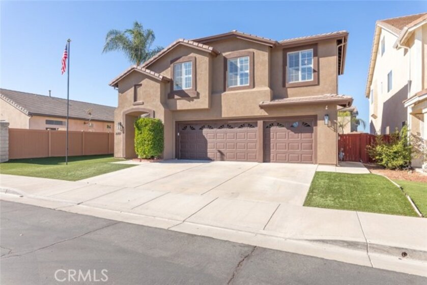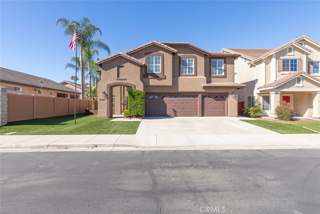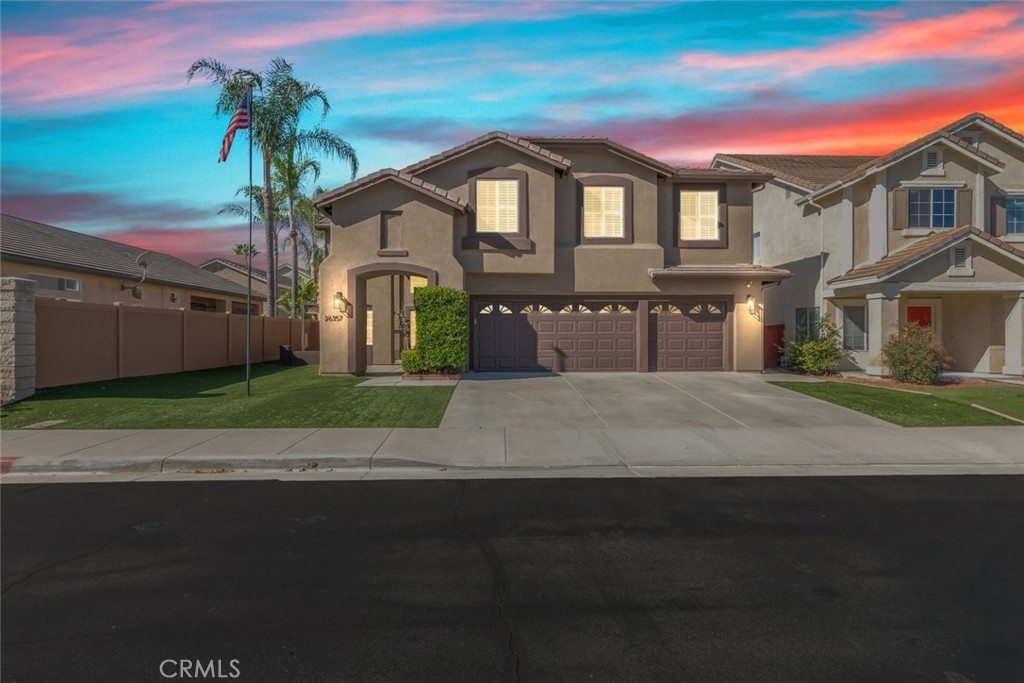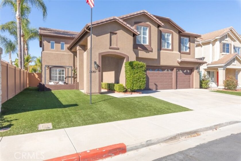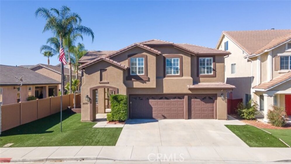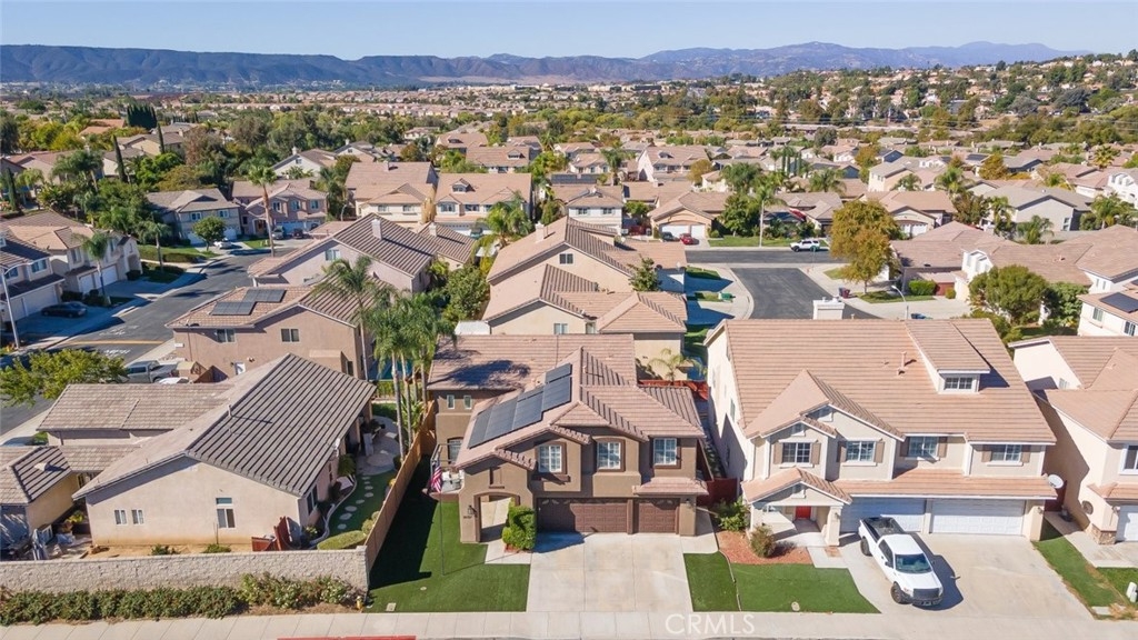 Set within a desirable gated community in Murrieta, this elegant two-story home with 3 car garage offers a blend of modern convenience and comfort. The fully paid-off solar system with net metering is a standout feature, providing sustainable energy and significant savings that can be easily transferred to the new homeowner. As you step inside, the freshly painted interior and brand-new carpets create an inviting atmosphere. The spacious living area, highlighted by high ceilings and a cozy fireplace, flows effortlessly into the dining and kitchen spaces, creating an ideal environment for gatherings and relaxation. The kitchen features granite countertops, plentiful cabinet space, and a functional island perfect for culinary endeavors and casual dining. Upstairs, you will find a loft that can also be used as an addition bedroom; as well as the generously sized primary suite is a true retreat, complete with an en-suite bathroom featuring dual sinks and ample space for relaxation. Additional rooms are well-suited for various uses, whether as bedrooms, home offices, or creative spaces. Outdoors, the property features low-maintenance turf in both the front and backyard, providing the beauty of lush greenery without the upkeep. The backyard is well-suited for outdoor dining, entertaining, or simply unwinding. Situated near local amenities, parks, and schools, this home offers not just a place to live, but a place to thrive. Experience the ease and comfort this move-in-ready home provides within its secure and welcoming community.