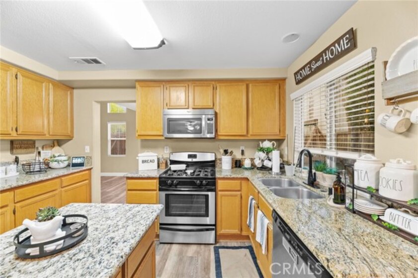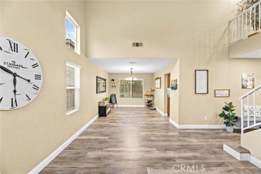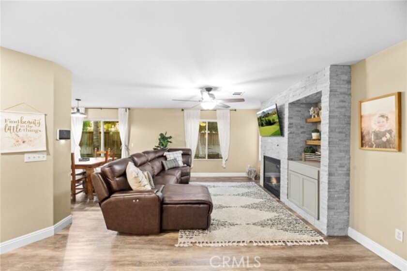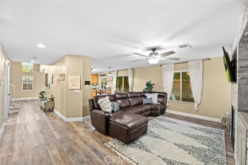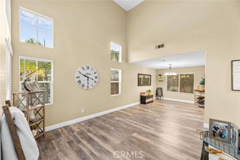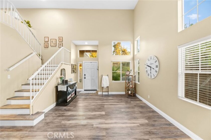 Set within a desirable gated community in Murrieta, this elegant two-story home with 3 car garage and side boat storage space offers a blend of modern convenience and comfort. As you step inside, the upgraded luxury vinyl plank flooring and vaulted ceilings create an inviting atmosphere. The spacious formal living area, highlighted by high ceilings large dining space, flows effortlessly into the kitchen, creating an ideal environment for gatherings and relaxation. The kitchen features granite countertops, plentiful cabinet space, and a functional island perfect for culinary endeavors and casual dining. The family room is spacious with a cozy stone faced fire place and a bonus flex space for an office or den. The main floor also features a full bathroom. Walking Upstairs, you will find a bonus room/ loft that can also be used as an addition bedroom; as well as the generously sized primary suite with a large retreat, complete with an en-suite bathroom featuring dual sinks and dual closets and ample space for relaxation. Additional rooms are well-suited for various uses, whether as bedrooms, home offices, or creative spaces. Outdoors, the property features low-maintenance concrete with mature trees and some grass, providing the beauty of lush greenery without the upkeep. The backyard is well-suited for outdoor dining, entertaining, or simply unwinding. Situated near local amenities, parks, and schools, this home offers not just a place to live, but a place to thrive. Experience the ease and comfort this move-in-ready home provides within its secure and welcoming community.