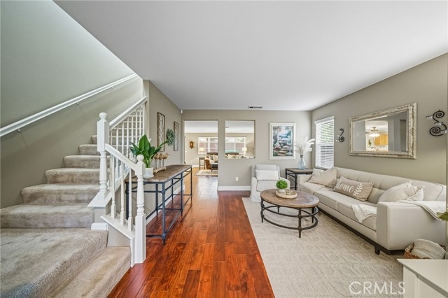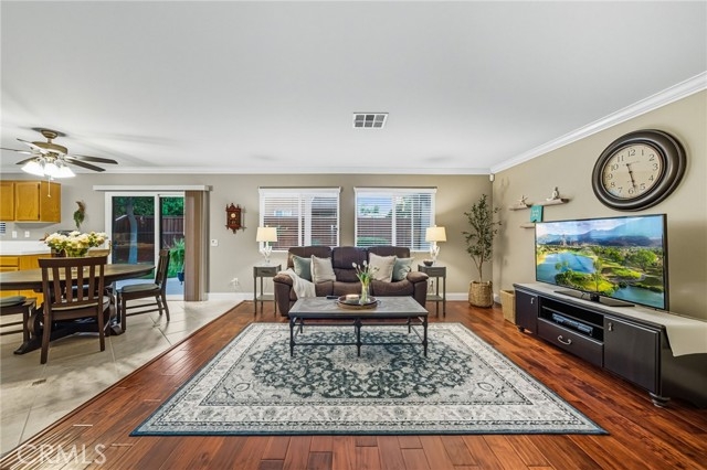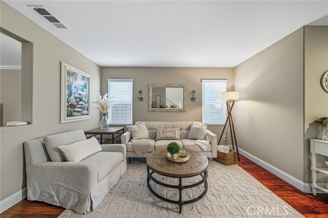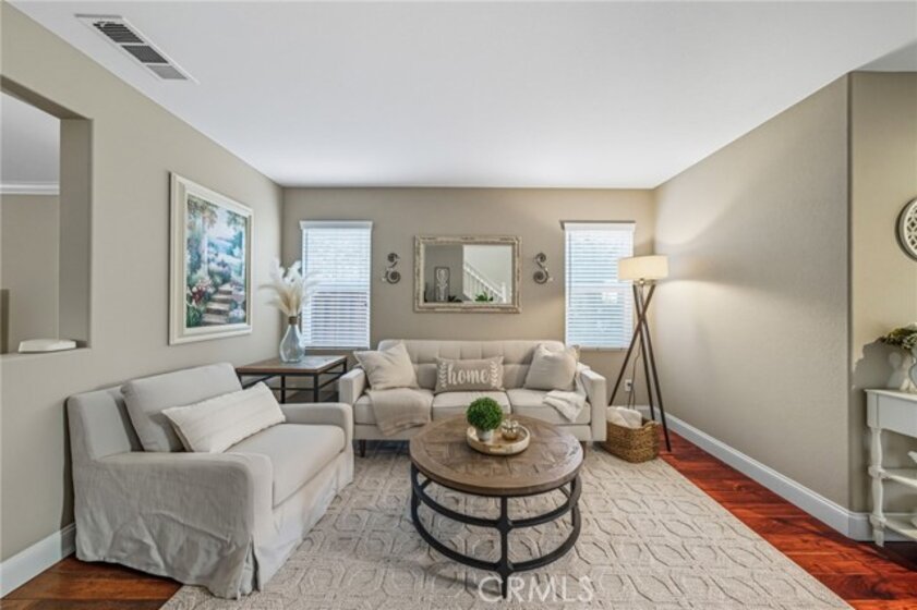Welcome to this beautifully cared-for 3 bedroom, 3 bathroom two-story home in the desirable Rancho Bella Vista neighborhood. Owned and lovingly maintained by the original owners, this home shines with pride of ownership and thoughtful updates throughout. Inside, you’ll find a bright and inviting layout with wood flooring, crown molding in the living room, plantation shutters in the primary bedroom, all new baseboards, and fresh interior paint. The downstairs powder room has been refreshed with a new vanity, light fixture, and mirror. Additional updates include new toilets, new bathroom flooring, and a recently replaced HVAC system and air conditioner for year-round comfort. The exterior is freshly painted and enhanced with new windows, sliding door, and new screens, plus a covered patio with privacy screens—perfect for relaxing or entertaining. The garage is outfitted with suspended storage racks, offering plenty of organization for an active lifestyle. This home is ideally located within the highly rated Murrieta School District—less than a block from the elementary school and walking distance to the middle school, sports park, playground, and the community recreation center. Don’t miss this chance to own a turn-key home in one of Murrieta’s most sought-after neighborhoods!