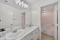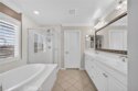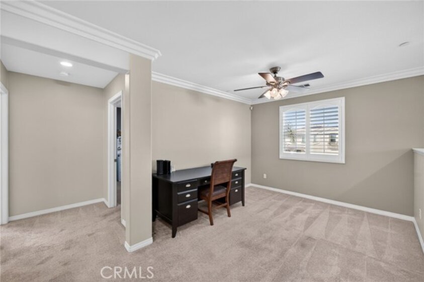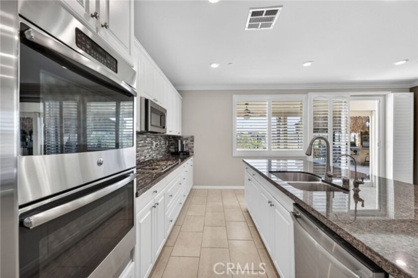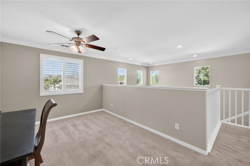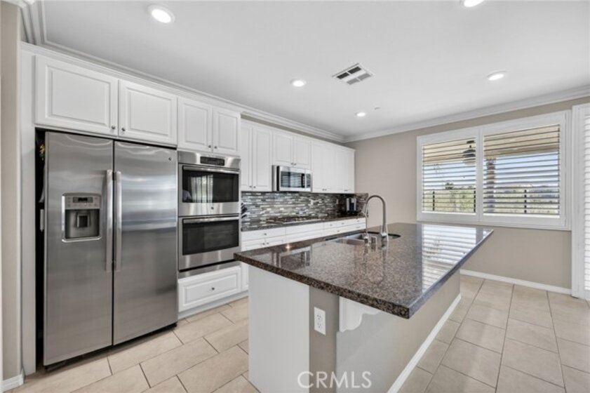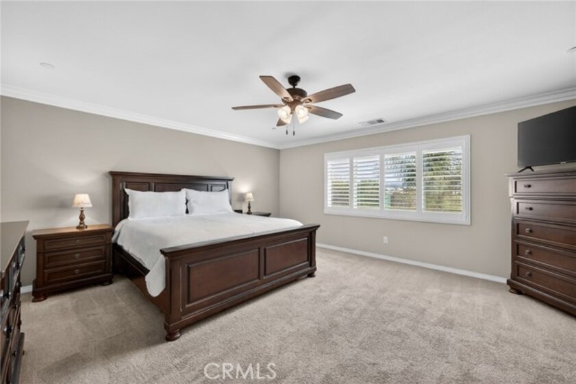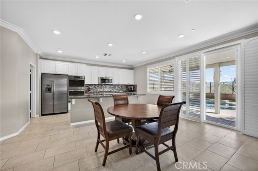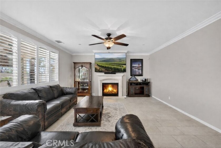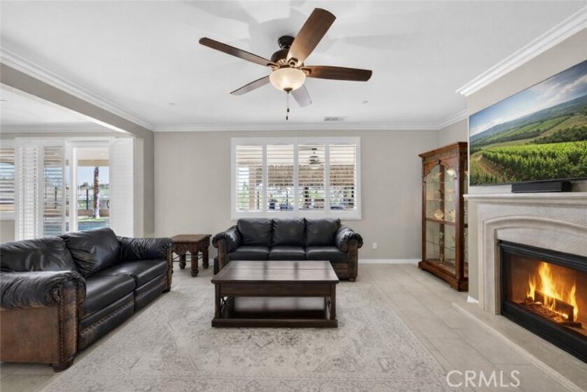 Welcome to your own private resort in the heart of Rancho Bella Vista! Situated on a rare double cul-de-sac with no rear neighbors, this beautifully upgraded 4 bedroom, 3 bathroom, 2,408 sq ft home offers privacy, views, and an entertainer’s dream backyard that truly sets it apart. Step outside and experience a backyard designed for unforgettable gatherings. The resort-style pool and spa with PebbleTec finish are complemented by a dramatic fire bowl, built-in fire pit, and a tiki bar complete with gas grill, under-counter refrigerator/kegerator, built-in TV, speakers, and ambient lighting. The authentic palapa-style thatched roofing creates the ultimate tropical vibe, while the full-length Alumawood patio cover provides shade and comfort year-round. The plexiglass rear fencing preserves breathtaking mountain views and open-space greenery, delivering complete privacy with no homes behind. A large side yard adds additional flexibility and functionality. Inside, the home continues to impress with a bright, open-concept floor plan and extensive upgrades throughout. The spacious kitchen features a large central island, granite countertops, custom backsplash, white cabinetry, double ovens, stainless steel appliances, and a huge walk-in pantry. Tile flooring runs throughout the main living areas downstairs, anchored by a cozy fireplace in the great room. Crown molding, plantation shutters, and LED lighting enhance the home’s refined yet comfortable feel. The custom glass front door includes an operable panel, allowing refreshing cross-breezes throughout the home. The thoughtful layout includes a downstairs bedroom and nearby three-quarter bath—ideal for guests or multigenerational living. Upstairs, you’ll find a generous open loft, two secondary bedrooms sharing a full bath, a convenient upstairs laundry room, and a spacious primary suite. The primary retreat offers a soaking tub, separate walk-in shower, dual vanities, and a large walk-in closet, all finished with the same crown molding and plantation shutters found throughout the home. With its rare location, unmatched privacy, panoramic views, and one-of-a-kind entertainer’s backyard, this Rancho Bella Vista gem is more than a home—it’s a lifestyle.