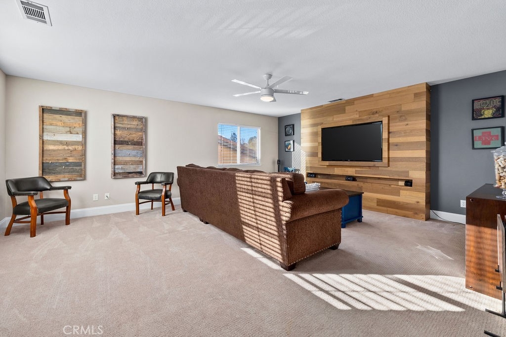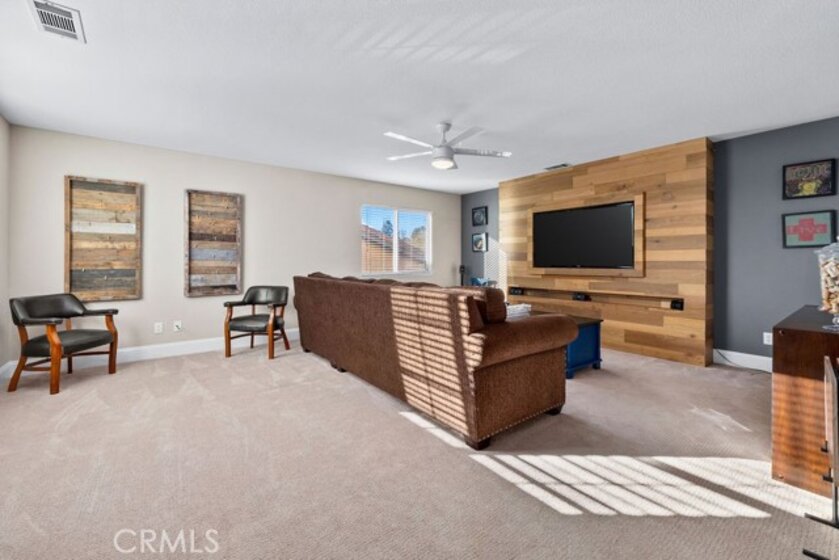 Welcome to 29188 Woodbridge Dr, a beautifully appointed residence set within an exclusive golf course community. This home combines thoughtful design, quality upgrades, and inviting indoor-outdoor living to create a truly elevated lifestyle. At approx 3,114 square feet, this property offers generous living space for both everyday comfort and ample entertaining. The designer-inspired kitchen makes cooking and hosting effortless. Dual ovens support large gatherings and holiday meals, while the layout keeps the chef connected to the conversation. Upstairs an expansive bonus room with a built-in 63” TV cabinet is ideal for movie nights, game days, or a private media lounge. Five well-sized bedrooms with 4 upstairs and one on lower level. The spacious primary suite features a massive walk-in closet and luxurious bathroom. Outdoors, the home transforms into an entertainer’s retreat. A built-in BBQ with dual infrared searing and rotisserie, plus a 24” beverage fridge, creates a true outdoor kitchen with ample counter space for prep and serving. The expansive covered living area offers year-round enjoyment, featuring a 55” TV, soundbar, sealed gas fireplace, and dual ceiling fans for comfort in every season. Paid for solar generates enough power for this home reducing your electrical bill to what could be considered a rounding error. Every upgrade has been thoughtfully selected to enhance both function and style. This home is impeccably maintained, turnkey, and ready for move-in!