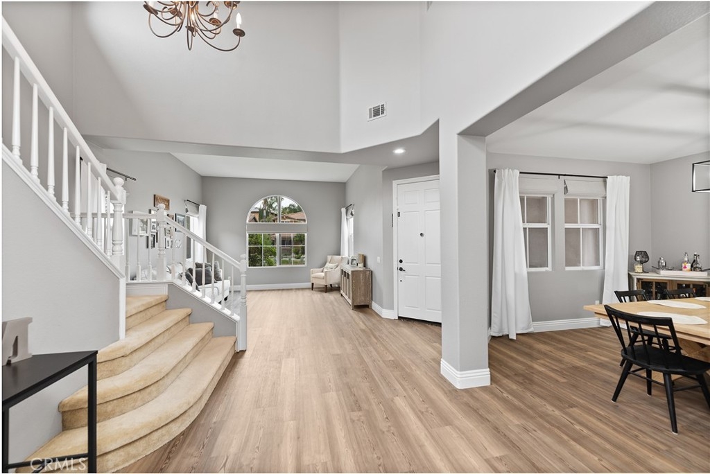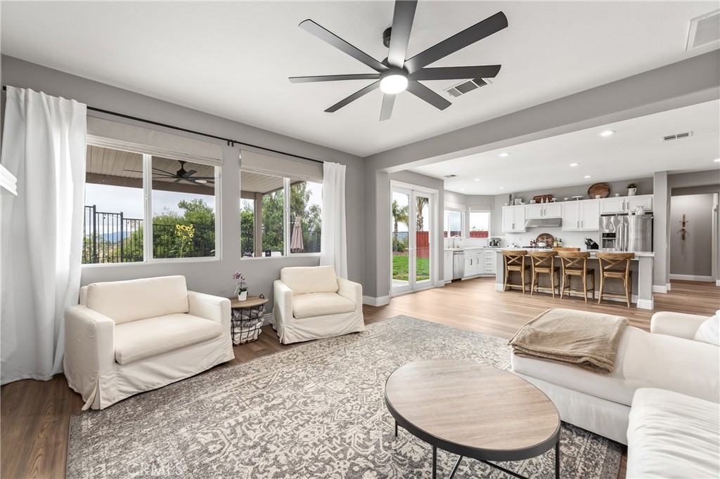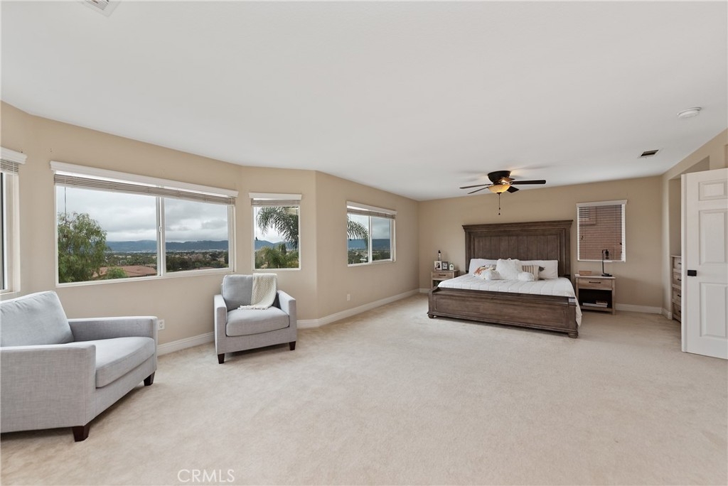 Welcome to this stunning view property with 4 bedrooms, 4 bathrooms, office, loft, nearly 40 feet of gated RV parking and the most comfortable floorplan in the community(NO HOA). As you step through the front door you are greeted by an open entry with formal living to the right, notice the high ceilings, luxury vinyl floors and the open feel of this home, you’ll feel transcended to a Magnolia Network television episode. To the left is the large formal dining room. The massive downstairs office can easily become a ground level in-law suite and notice the full bathroom downstairs. Step down the hall to the hub of family and friends, this open kitchen and great room is the perfect gathering spot. The kitchen has undergone a lite remodel with newer stainless steel appliances, upgraded hardware and quarts countertops. Head upstairs on the grand staircase or the secret staircase, yes this home has 2 sets of stairs! The large primary suite has incredible views of Murrieta and Temecula. Step into the primary bathroom with separate vanity areas, standing shower, jetted tub and huge walk-in closet. There are 3 other large guest rooms on this level, one has an attached en suite. Let your imagination run wild with the upstairs loft, imagine this as a movie room, another home office or 6th bedroom. The backyard features a new patio cover with ceiling fan, new concrete, a wonderful grassy area and of course fantastic views. Don’t forget the nearly 40 feet of gated RV parking. This community has NO HOA and it is only a 2 minute walk to the first tee at “The Golf Club at Rancho California”. Notable features of this home include; newer appliances, newer interior paint, newer window blinds, epoxy garage floor, newer patio cover, newer backyard and side yard concrete, LED recess lighting, ceiling fans, newer interior door hardware, newer luxury vinyl floors, newer appliances, quarts countertops, whole house fan, newer irrigation system, new French door to the backyard and newer wrought iron fencing. Don’t miss this one, make your appointment today.