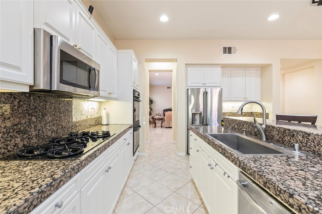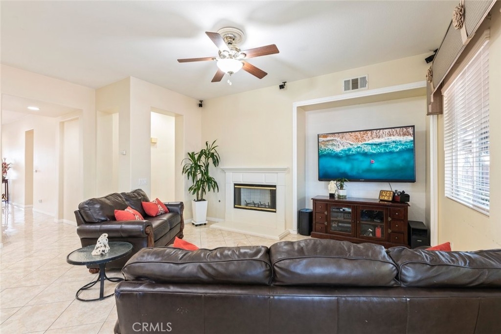 Welcome to this beautiful single-story 3-bedroom, 3-bathroom home, ideally situated on a quiet cul-de-sac in the prestigious Golf Club at Rancho California community. Just steps from the clubhouse and driving range—and with NO HOA and LOW TAXES—this spacious residence offers a rare blend of privacy, functionality, and style. Thoughtfully designed, the home features a light-filled layout with high ceilings, elegant tile flooring, neutral finishes, and abundant natural light. A custom beveled glass front door opens to a welcoming interior where a smart split-bedroom floor plan ensures separation and flexibility—ideal for guests, multigenerational living, or a home office setup. The formal living and dining areas flow into a warm family room with a cozy fireplace, while the open-concept kitchen is a true highlight. It boasts granite countertops, a large center island with bar seating, a gas stovetop, ample cabinetry, and a walk-in pantry—perfect for both everyday cooking and entertaining. A butler’s pantry adds extra prep and storage space. The private primary suite includes a spacious walk-in closet, dual vanities, a soaking tub, and a separate shower. One guest bedroom offers its own en-suite bath for added privacy, while all bedrooms are generously sized and well-positioned. Sliding glass doors lead to a full-width screened-in patio, currently used as a fitness and entertainment space complete with a bar island—ideal for relaxing or hosting. The backyard is a gardener’s dream, lined with 12 mature fruit trees and designed for low-maintenance enjoyment. Additional highlights include a dedicated laundry room, a two-car garage, and ample guest parking with no homes directly across the street—adding to the sense of openness and tranquility. Centrally located near I-15 and I-215 for easy commuting and just minutes from shopping, dining, top-rated schools, and the renowned Temecula Wine Country, this home combines lifestyle, location, and long-term value in a scenic golf course setting.