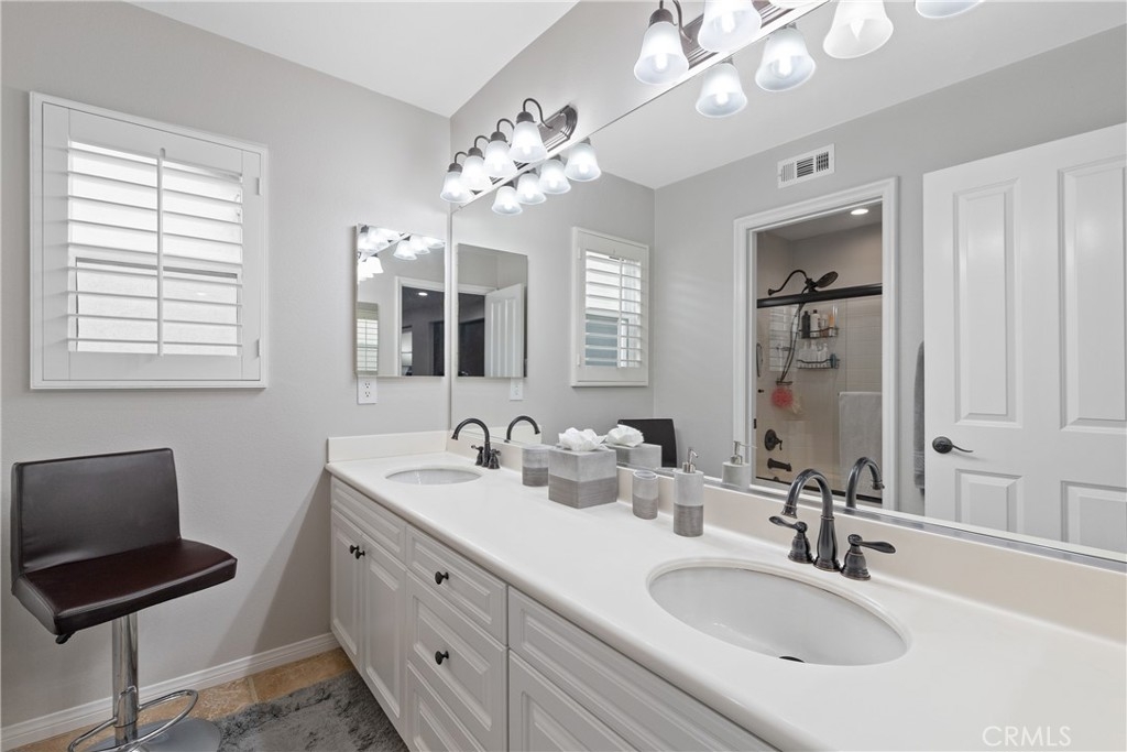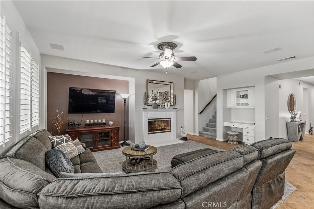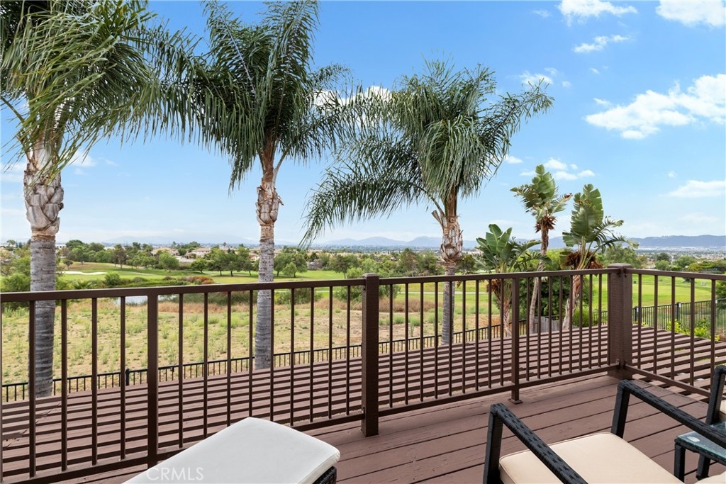 Beautiful Home on the SCGA Golf Course in the desirable community called "The Greens". As an added bonus, The Greens has no HOA. This home is located on the golf course and is upgraded with a courtyard in front and beautiful mature Pygmy Date Palms. As you drive up you will notice the nice curb appeal with the beautifully stamped terra cotta driveway. The home features plantation shutters throughout, formal living and dining area, a large kitchen with island and is upgraded with granite countertops. You have a double oven, large gas cook top and lots of cabinetry. The family room has a gas fireplace and a custom built-in media cabinet niche. A bonus room is located downstairs is perfect for the home office or a 5th bedroom for guests and a full bathroom. The large laundry room is conveniently located on the lower level. Coming up the stairs you will enjoy the beautifully upgraded iron railings and banister. Upstairs you have a spacious master suite with walk-in closets and a luxurious master bath with a separate tub and shower. The master bath features a dual sink vanity. This home also features a large deck off of the master bedroom which overlooks the SCGA golf course and the fabulous views. There are three additional large bedrooms and a full bath room with a separate shower and tub. The backyard has a concrete patio partially covered by the master deck above, lawn area and mature palms. The 3 car tandem garage has lots of cabinets installed. There are 2 A/C condensers for added efficiency. This home is located close to shopping and entertainment and Murrieta has great schools.