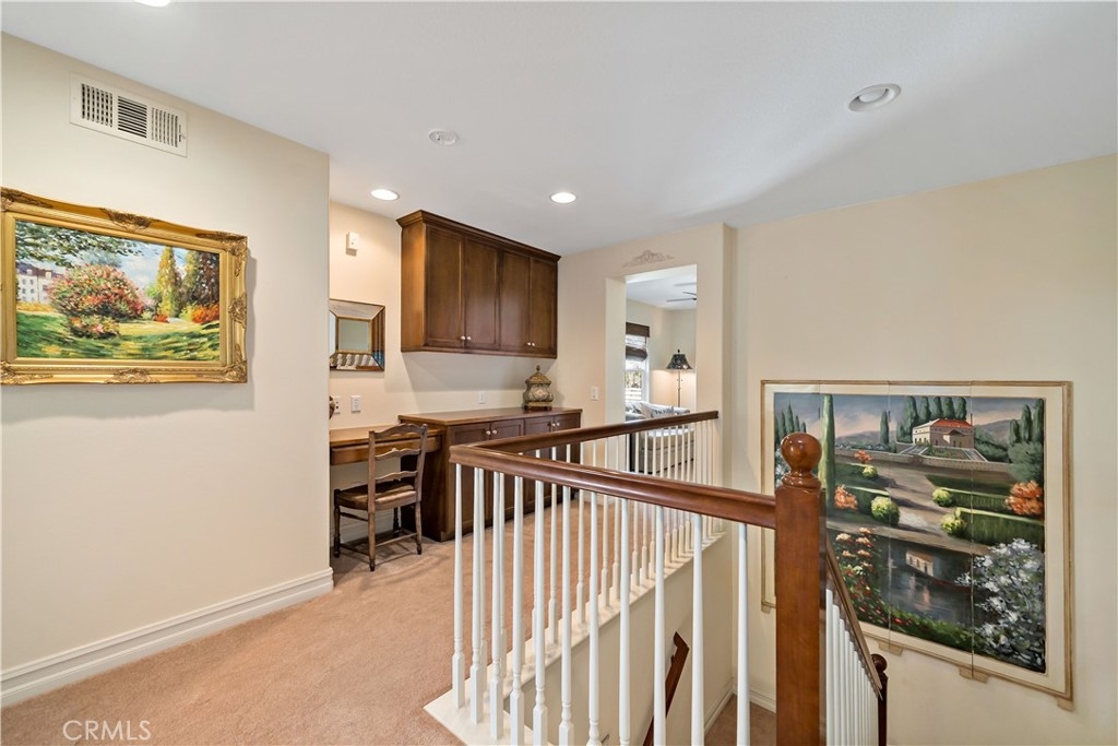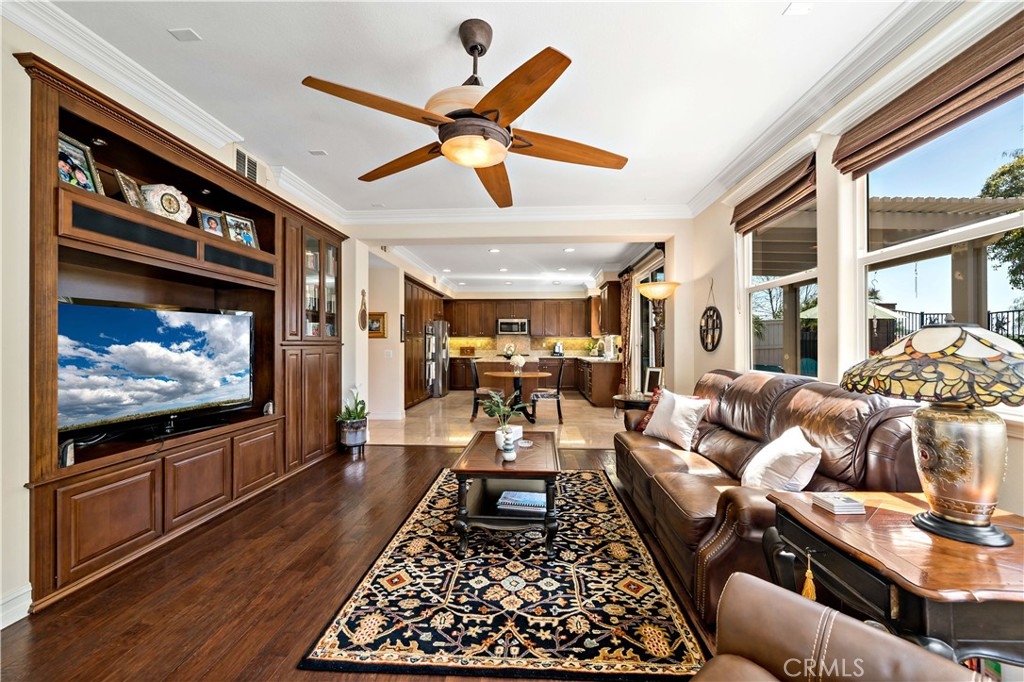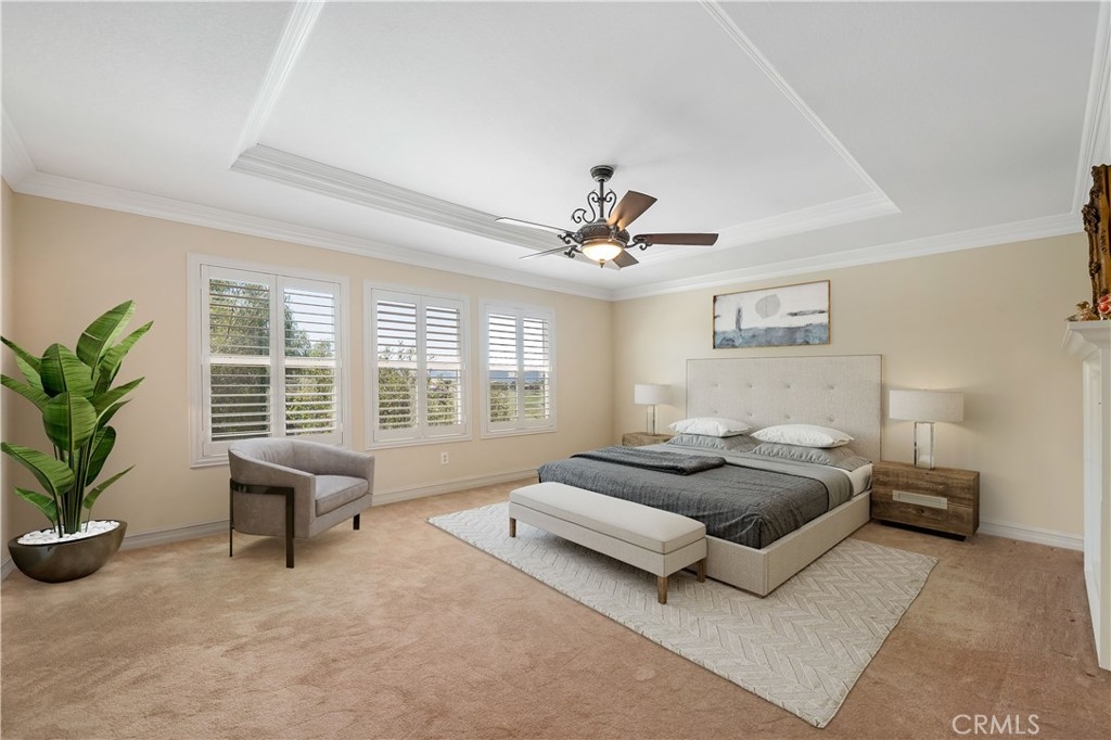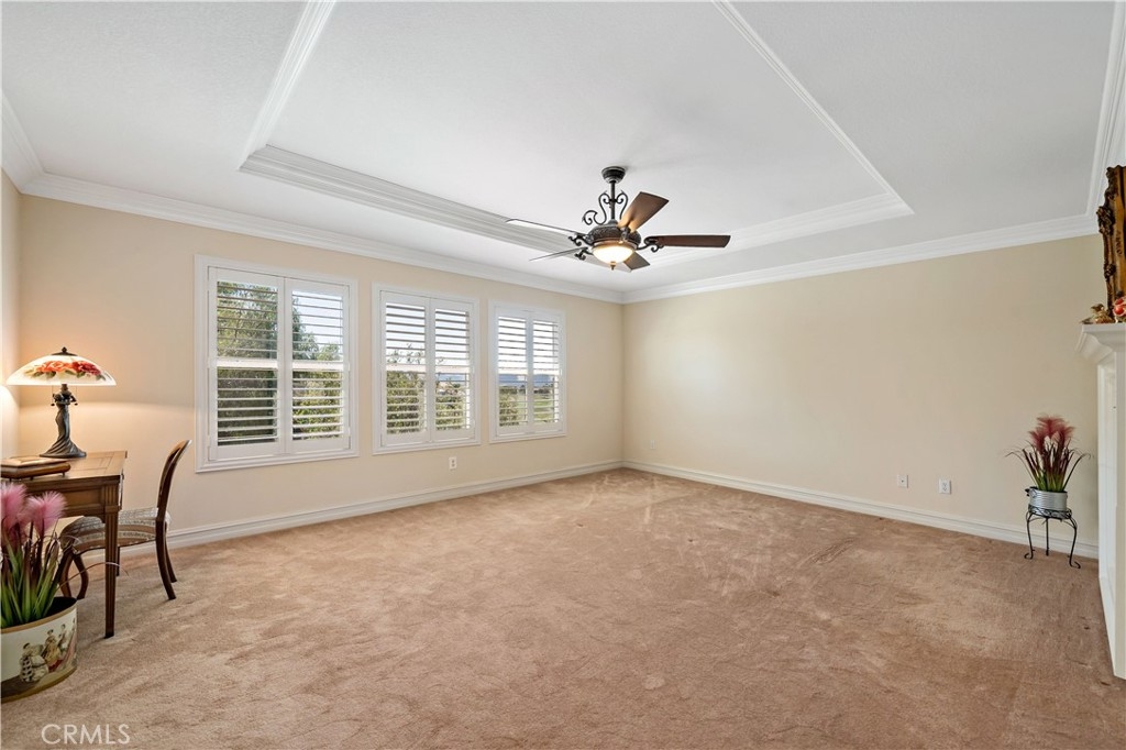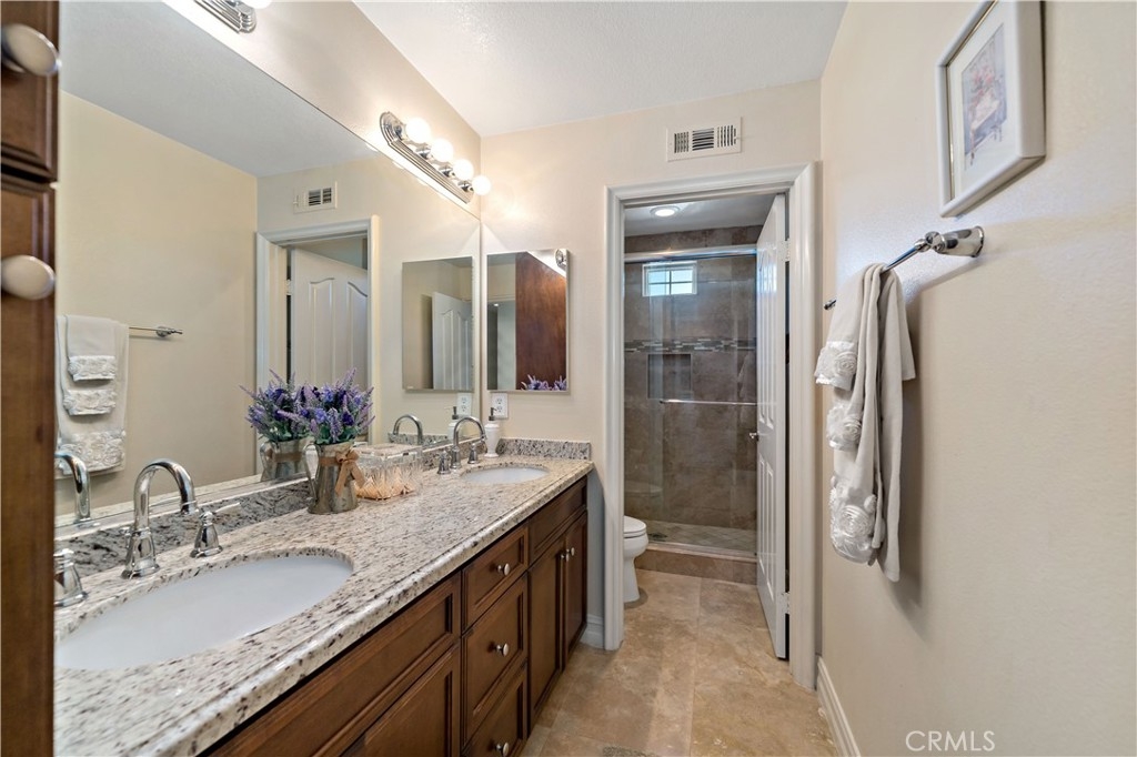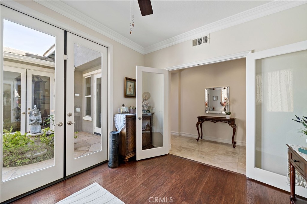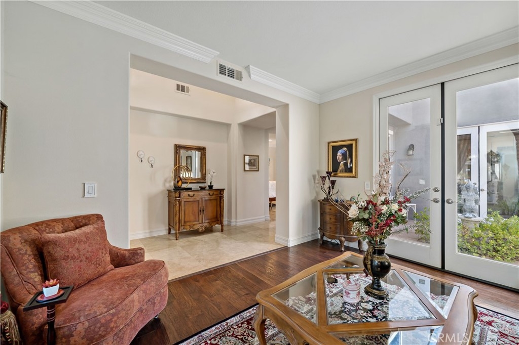 Welcome to your dream home in Murrieta, where stunning views of golf course and luxurious upgrades await! This property boasts 5 bedrooms plus a separate primary retreat that can be converted to a 6th bedroom. As you enter, you'll notice the formal living room, separate dining room/den and the downstairs bedroom (being used as office) all feature French doors that connect them to the serene side courtyard/French patio, perfect for your morning coffee or evening gatherings. Also on the main floor, the beautifully upgraded bathroom featuring a newer high end vanity with granite/quartz countertop, along with stylish light fixture and custom mirror. Now, let’s talk the chef's kitchen! It features gorgeous granite countertops, stainless steel appliances, and extra cabinets for all your culinary needs. The oversized kitchen island is perfect for meal prep or casual gatherings with friends and family. Head upstairs into the large expansive primary bedroom, where recessed ceiling and a two-sided fireplace creates a warm and inviting atmosphere. The primary retreat is a true sanctuary is a bonus seating area or hobby room. You’ll love the luxurious bathroom featuring a jetted tub, a stunning stone shower with frameless glass doors, and marble vanities for that touch of elegance, all with gorgeous views of the mountains. There is also an open bonus room which leads to the three well appointed secondary bedrooms. The endless upgrades include: travertine stone floors, wood flooring in living and family rooms, upgraded ceiling fans throughout the home, custom built ins in family room, retreat and upstairs hallway, plantation shutters, crown molding and 6 inch baseboards throughout, whole house water softener, 3 car tandem garage with storage and insulated garage door, PAID SOLAR and too many more to list! From the charming flagstone porch to the gorgeous backyard with mature landscaping, views of the golf course and mountains and the flexibility of no HOA, this home is the one you were waiting for!