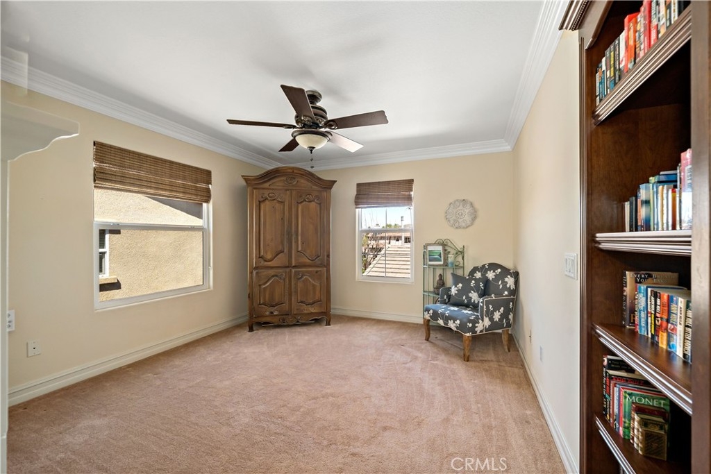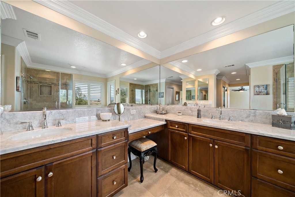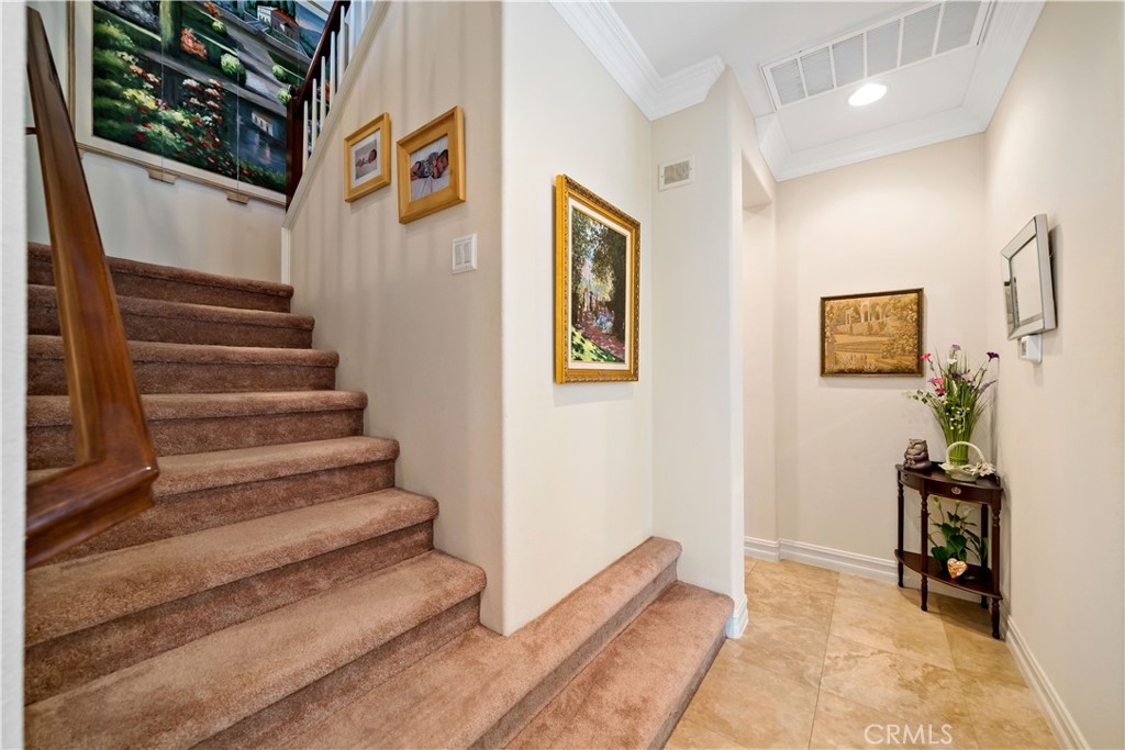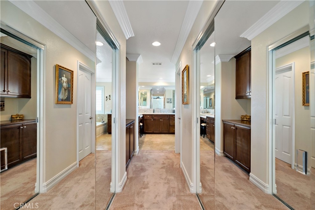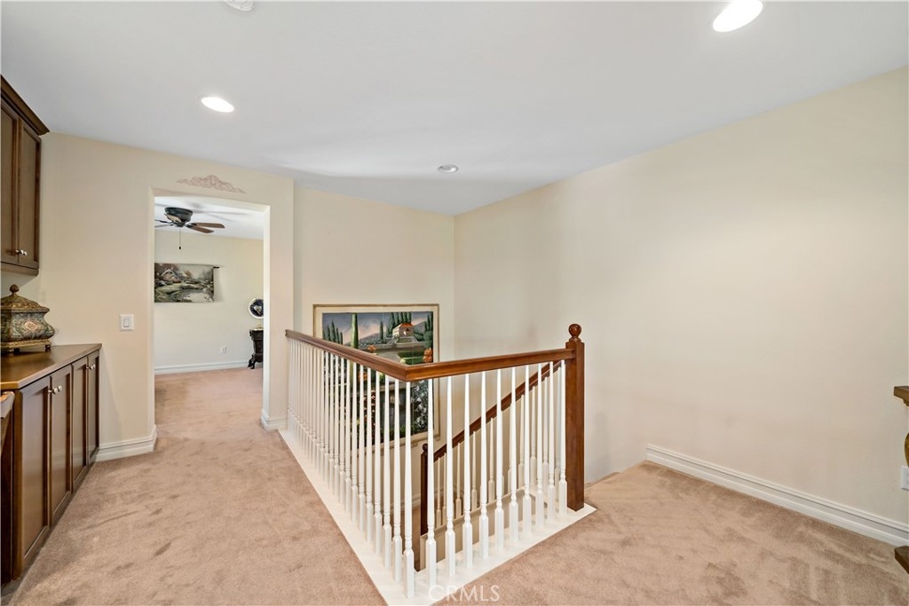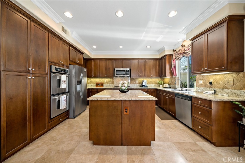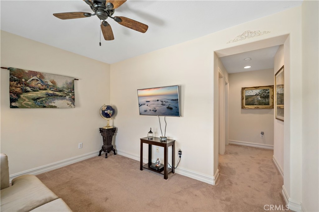 Welcome to your dream home in Murrieta, where stunning views of golf course and luxurious upgrades await! This property boasts 5 bedrooms plus a separate primary retreat that can be converted to a 6th bedroom. As you enter, you'll notice the formal living room, separate dining room/den and the downstairs bedroom (being used as office) all feature French doors that connect them to the serene side courtyard/French patio, perfect for your morning coffee or evening gatherings. Also on the main floor, the beautifully upgraded bathroom featuring a newer high end vanity with granite/quartz countertop, along with stylish light fixture and custom mirror. Now, let’s talk the chef's kitchen! It features gorgeous granite countertops, stainless steel appliances, and extra cabinets for all your culinary needs. The oversized kitchen island is perfect for meal prep or casual gatherings with friends and family. Head upstairs into the large expansive primary bedroom, where recessed ceiling and a two-sided fireplace creates a warm and inviting atmosphere. The primary retreat is a true sanctuary is a bonus seating area or hobby room. You’ll love the luxurious bathroom featuring a jetted tub, a stunning stone shower with frameless glass doors, and marble vanities for that touch of elegance, all with gorgeous views of the mountains. There is also an open bonus room which leads to the three well appointed secondary bedrooms. The endless upgrades include: travertine stone floors, wood flooring in living and family rooms, upgraded ceiling fans throughout the home, custom built ins in family room, retreat and upstairs hallway, plantation shutters, crown molding and 6 inch baseboards throughout, whole house water softener, 3 car tandem garage with storage and insulated garage door, PAID SOLAR and too many more to list! From the charming flagstone porch to the gorgeous backyard with mature landscaping, views of the golf course and mountains and the flexibility of no HOA, this home is the one you were waiting for!