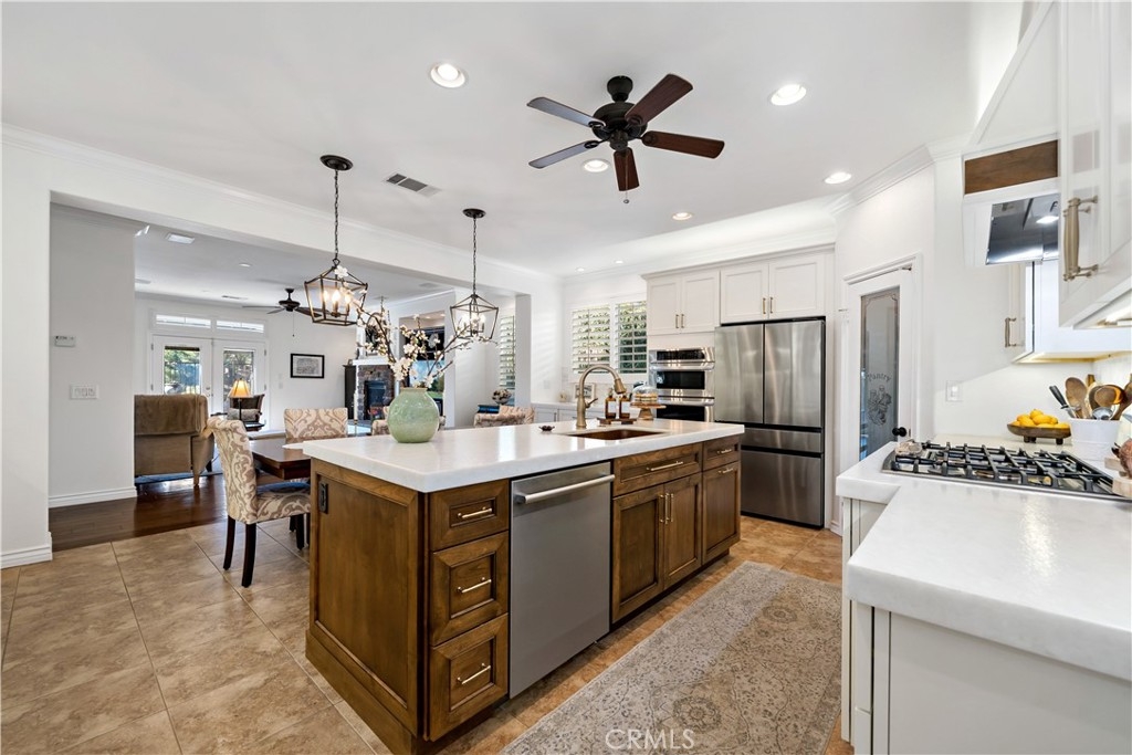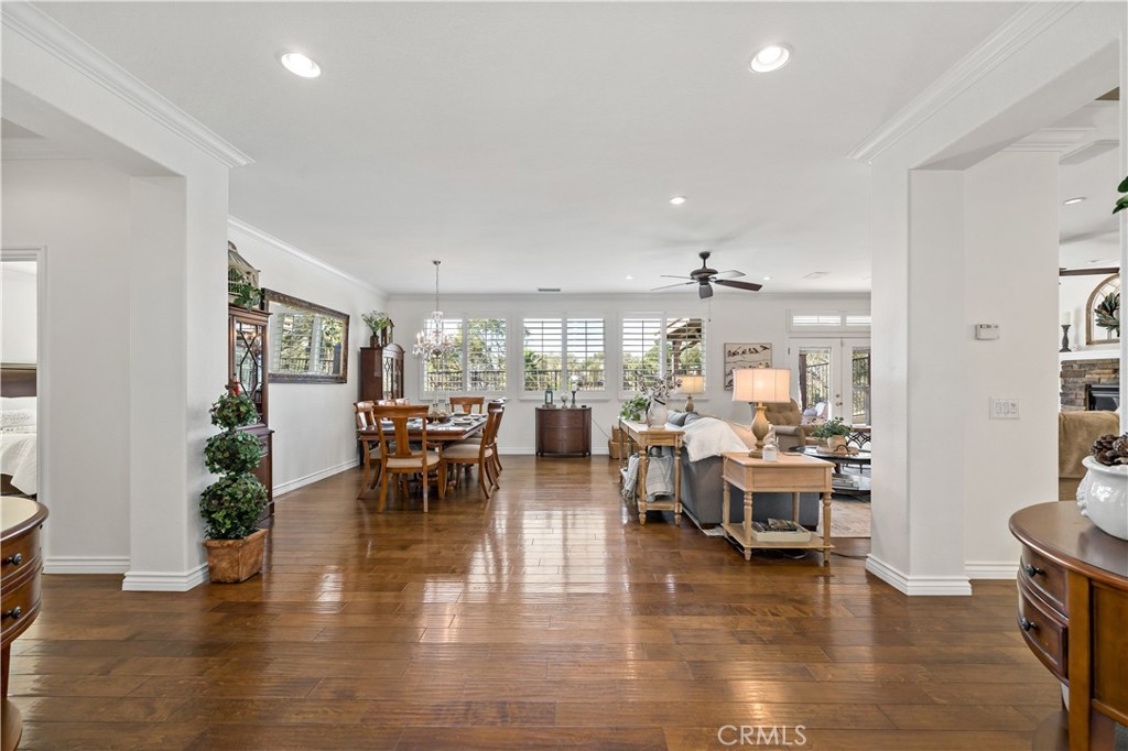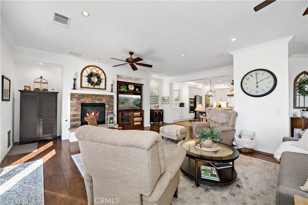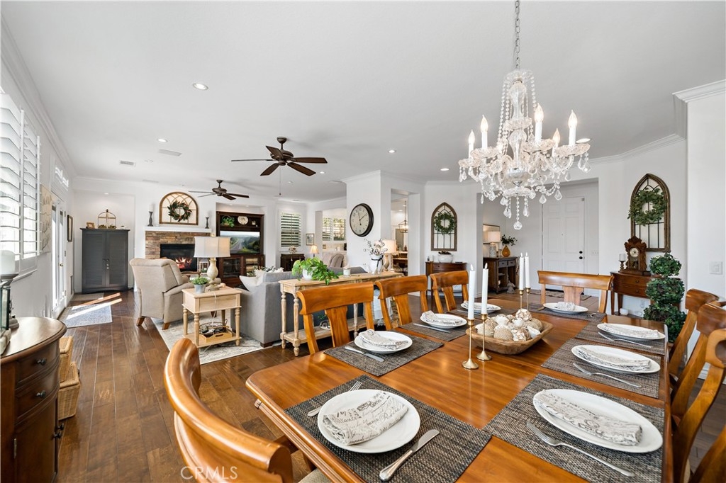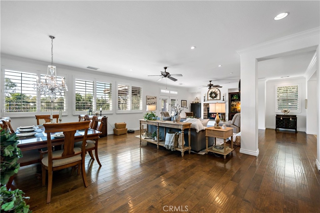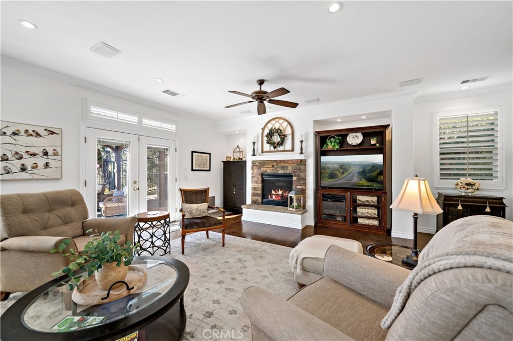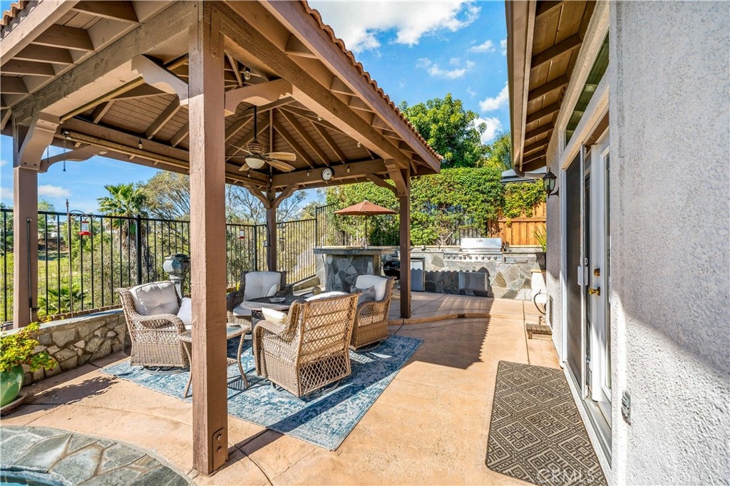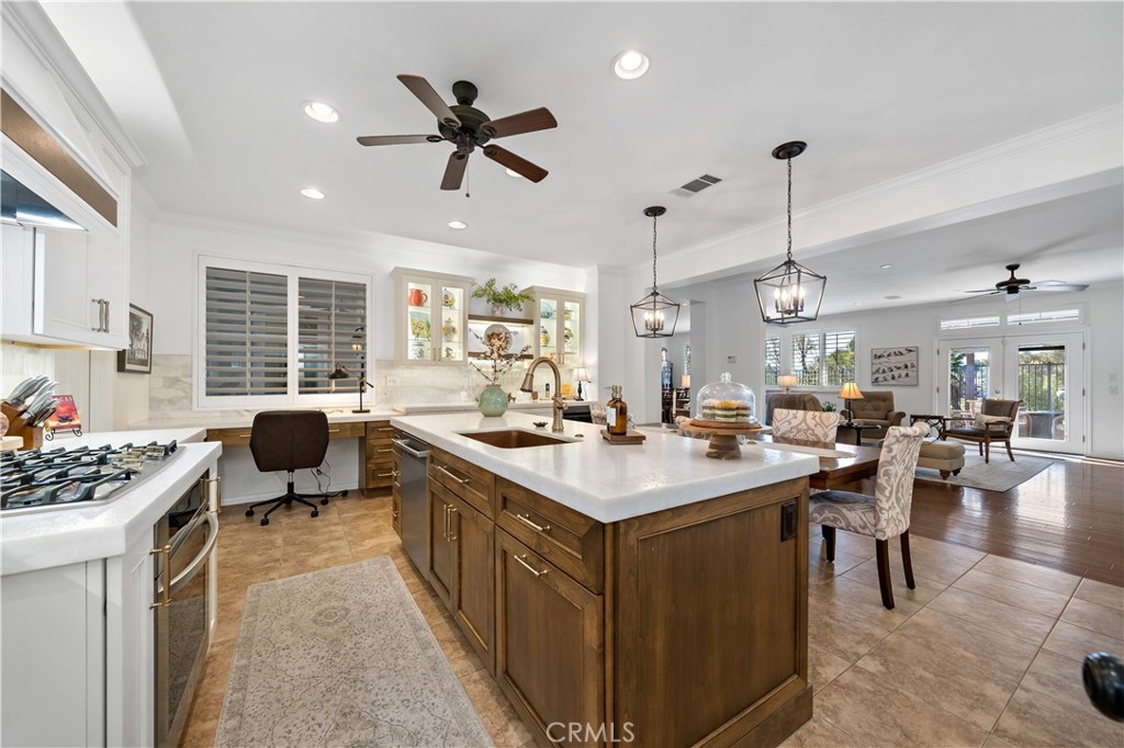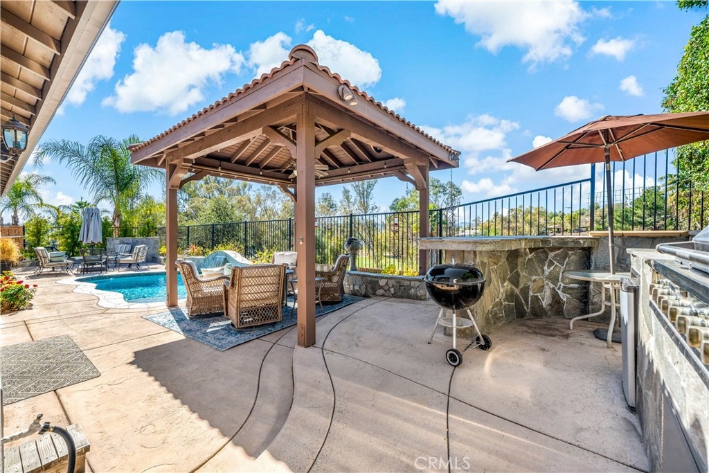 This home truly embodies the saying, "Entertainer's Delight!" Rare opportunity! Golf course views? Check! Sparkling pool, gourmet kitchen, money saving solar? Check, check, check! Welcome to 38693 Clearbrook Drive a home where you will instantly FALL IN LOVE. The freshly painted exterior exudes charm, complemented by manicured landscaping and lighted flagstone steps leading to the gated front courtyard. Step inside to discover an open floor plan filled with natural light, hardwood floors, soft neutral tones, and ceiling fans throughout. The formal dining and family rooms are seamlessly connected, creating the ideal space for hosting guests. A stacked-stone fireplace with hearth and mantel anchors the family room, accompanied by plantation shutters, recessed lighting, crown molding, and surround sound. This GOURMET KITCHEN has been recently remodeled to PERFECTION - a Chef's Dream! It boasts leathered MARBLE countertops and backsplash, Maple cabinetry with soft-close features and tongue-and-groove construction. Top-of-the-line appliances include a 5-burner stove, Bosch dishwasher, and THREE ovens. A stunning copper sink, built-in mixer shelving, wine refrigerator, and glass-front lighted cabinetry elevate the space to a whole other level of LUXURY. Enjoy ample storage, pull-out drawers, custom wood shelving, and a built-in desk. An eat-in dining area and elegant pendant lighting complete the kitchen. Adjacent to the kitchen is the laundry room with its own sink, and direct access to the epoxy-floored 2-car garage, offering plenty of storage. Behind the Formal Dining room, sits the Primary Bedroom Suite which offers French doors to the backyard. LOVELY barn door separates the beautiful 5-piece bathroom, a soaking tub, walk-in shower, dual vanities, and a spacious walk-in closet. Closer to the entryway, this home also includes a den/office which could become a 4th bedroom, two additional nicely sized bedrooms, and a full and half bathroom - which feels to be a separate wing of the home. Step outside to breathtaking Golf Course Views from the backyard, elevated above the 3rd Hole of The Golf Club at Rancho California. The sparkling pool w/ a streaming cascade feature is where you will want to spend those warm summer days. Multiple seating areas provide the perfect retreat to relax and unwind. An outdoor kitchen with a built-in BBQ, refrigerator, and stone bar making outdoor entertaining effortless. Lower taxes and no HOA! Minutes from Temecula Wine Country.