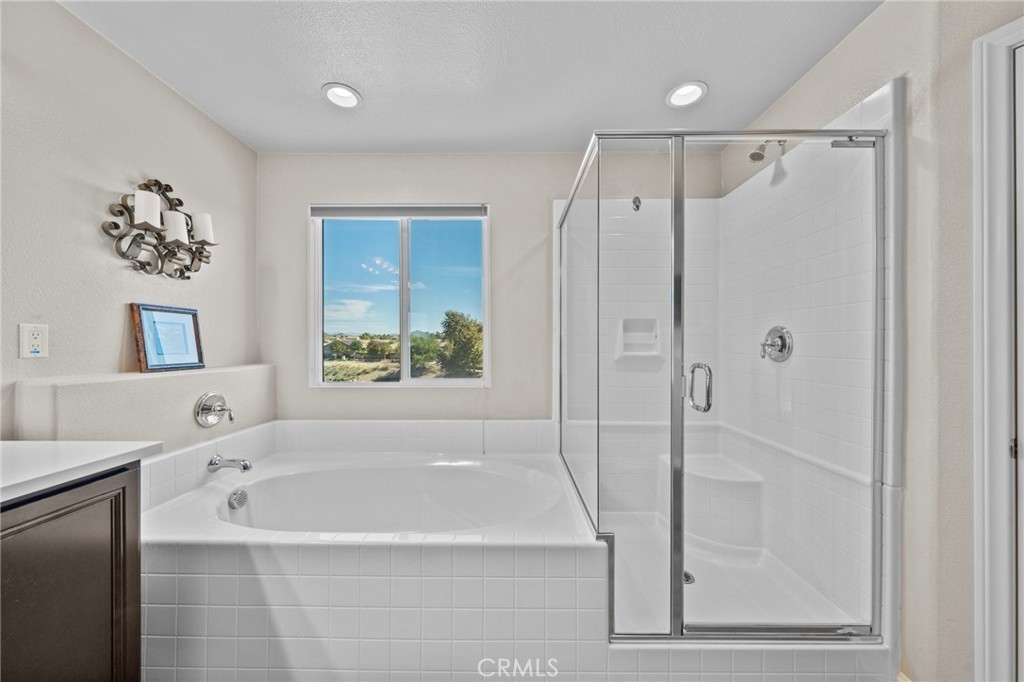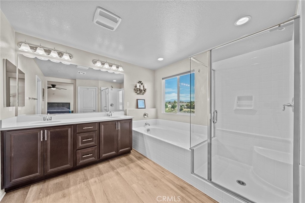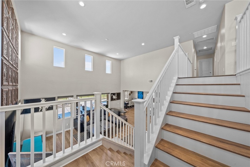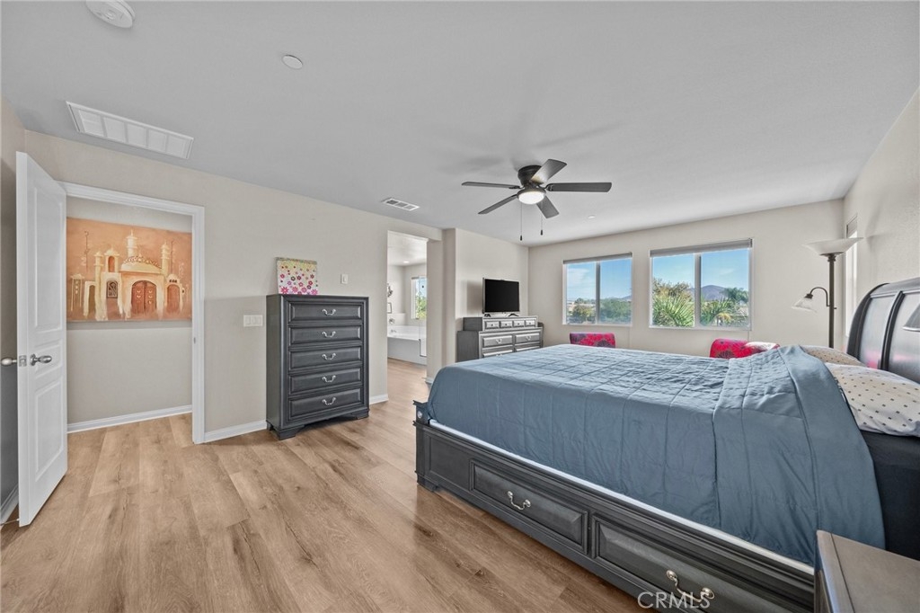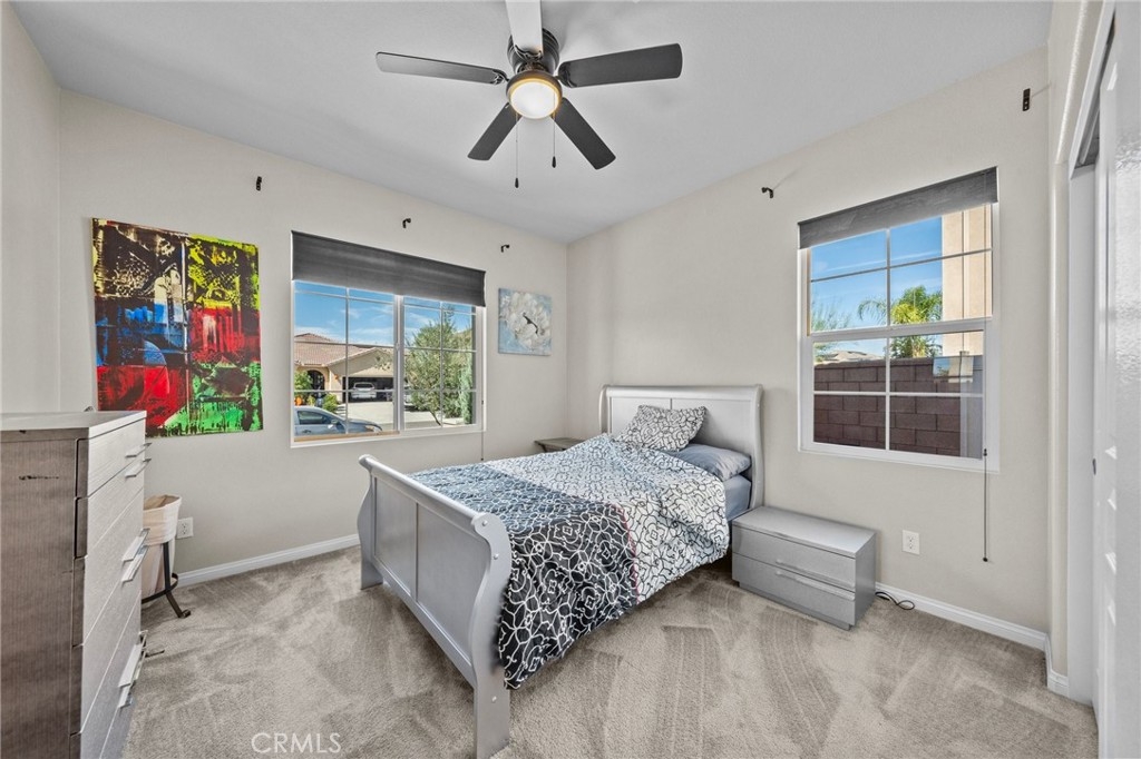 Welcome home!! Discover the epitome of comfort and luxury living in this stunning 4-bedroom, 3-bathroom, loft & office home perfectly situated on a premium lot, cul-de-sac street, in the renowned community of Spencer's Crossing. Featuring a 3-car tandem garage with overhead storage and custom front landscaping, this residence is designed for both comfort and elegance. As you arrive you are welcomed by the beautifully manicured front yard which features low-maintenance landscaping with drought-tolerant plants, lush artificial grass, and a lime tree. The large covered front porch invites you to relax and enjoy the beautiful surroundings. As you enter, you are greeted by an Office/Den area to your right, perfect for remote work or study. The main floor bedroom to your left is conveniently located next to a full bathroom perfect for guest. LVP flooring throughout the main living areas. Continuing down the hall, the space opens up into a bright and inviting family room with vaulted ceilings, flowing seamlessly into the heart of the home, the kitchen. The gourmet kitchen features espresso-colored high-end cabinetry, granite countertops, stainless steel appliances, newer dishwasher, plenty of storage, and walk-in pantry! The large kitchen island faces the family room, making it an ideal setup for entertaining. Step outside to the large covered Aluma wood patio, complete with 2 ceiling fans, providing the ideal space for outdoor gatherings year-round. Low-maintenance landscaping. With no direct rear neighbors, the yard offers both privacy and tranquility. On the second floor, you'll find a spacious loft, two additional bedrooms, plenty of storage space, and the expansive primary bedroom featuring an en suite bath and a walk-in closet. Additional highlights include a quite cool fan, large laundry room with a sink, folding table, & closet. The home boast fully paid solar panels, helping you save on energy cost. Enjoy access to the community's Resort-style amenities such as pools, parks, playgrounds, dog park, clubhouse, and so much more. You'll also enjoy the convenience of being just minutes from award-winning schools, shopping, and nearby freeways making this the perfect place to call home. This house is an absolute MUST SEE!