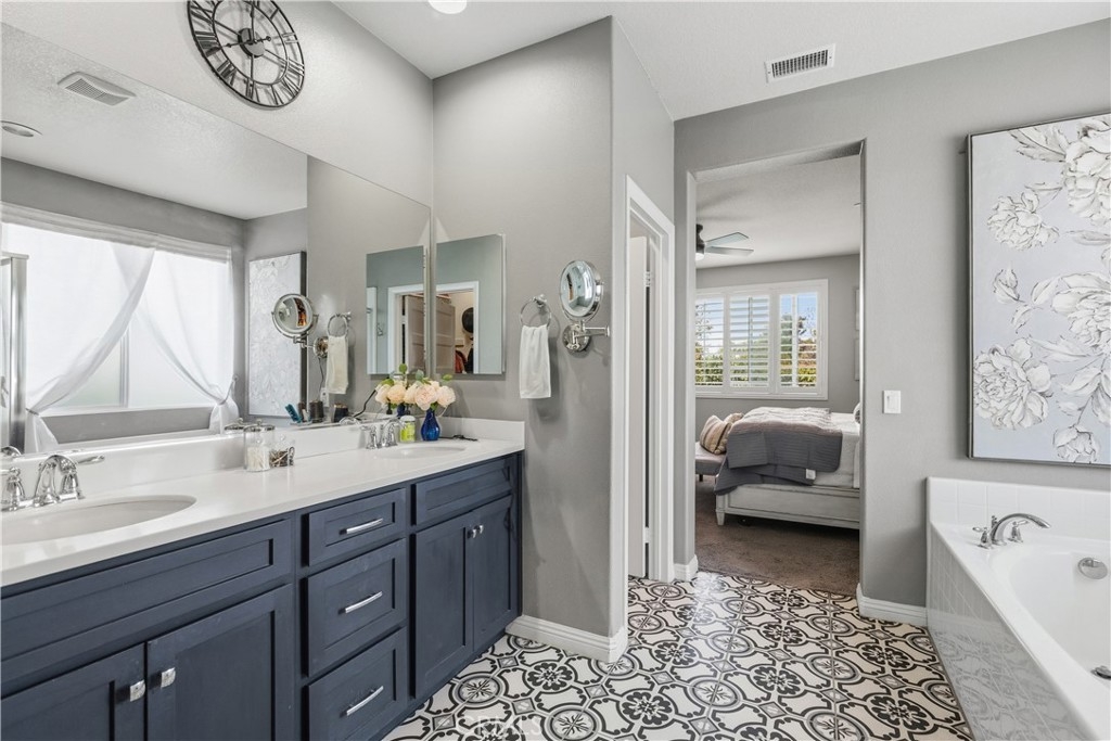 Beautifully maintained and thoughtfully designed, this single-story home in the highly desirable Spencer’s Crossing community offers 4 bedrooms, 2 bathrooms, and approximately 2,214 square feet of comfortable living space. Step inside to an open and inviting floor plan featuring a spacious family room with a cozy fireplace, perfect for relaxing or entertaining. The kitchen is the heart of the home, complete with a large center island, abundant counter space, and a dining area with views of the backyard. A separate formal dining room provides additional space for gatherings and special occasions. The primary suite offers a private retreat with an attached bathroom featuring dual sinks, a soaking tub, and a separate shower. Three additional bedrooms provide flexibility for family, guests, or a home office. Enjoy low-maintenance outdoor living with turf in both the front and backyard. The backyard also features a covered, paved patio ideal for outdoor dining and entertaining. Located just minutes from Clinton Keith shopping, dining, and everyday conveniences, with easy access to the 215 freeway for commuters. Residents of Spencer’s Crossing enjoy HOA amenities including pools, spa, sports parks, playgrounds, and beautifully maintained common areas. This home offers comfort, convenience, and community all in one.