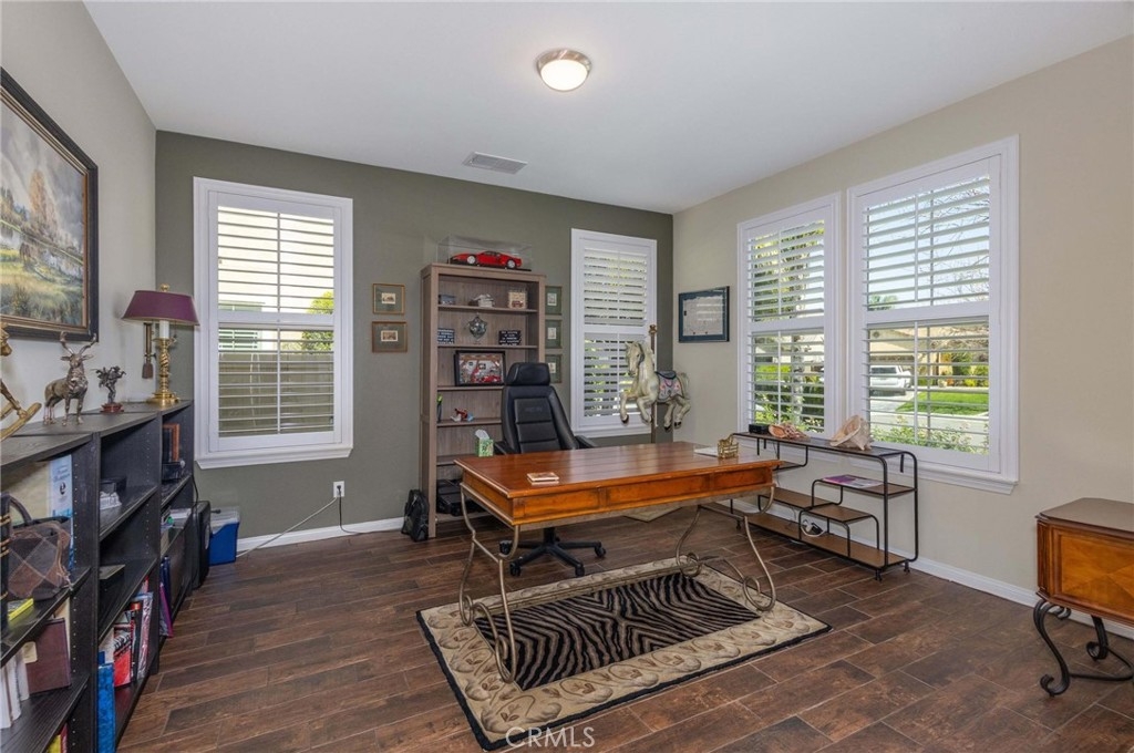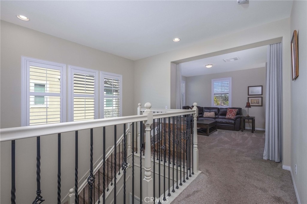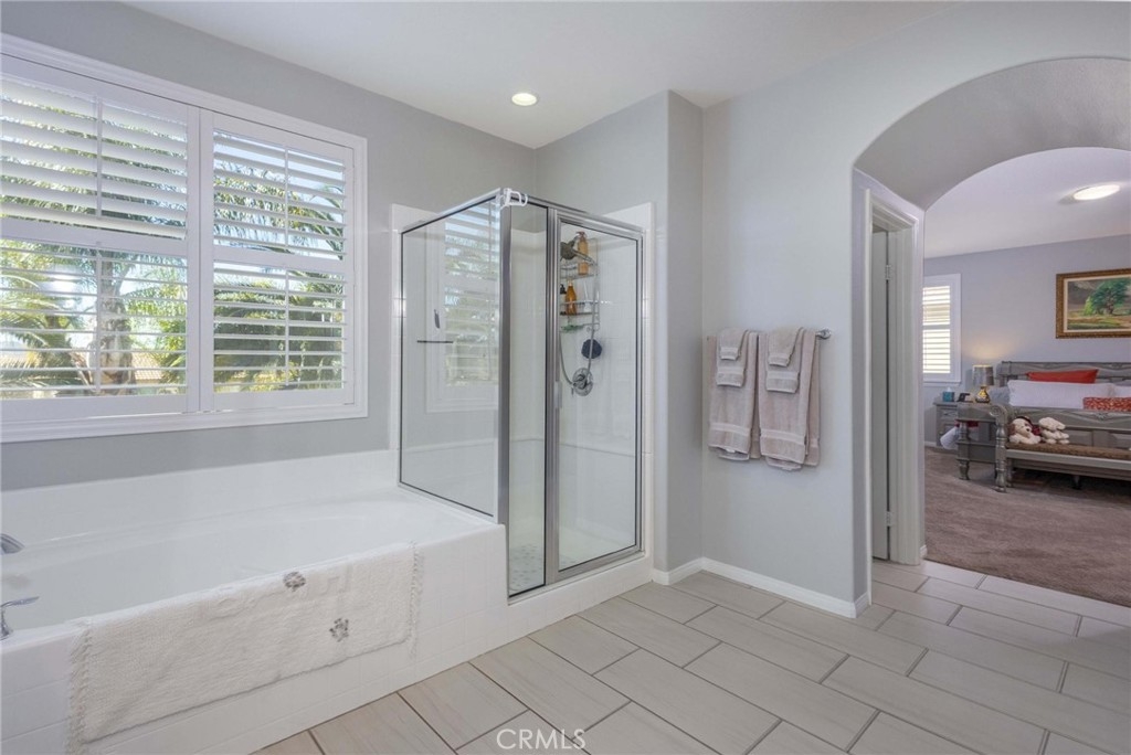 Immaculate, move-in ready home with exceptional upgrades and curb appeal! The freshly painted exterior, well-manicured landscaping, and private backyard with patio and included gazebo create the perfect outdoor retreat. Inside, enjoy plantation shutters throughout and durable, no-maintenance tile flooring. The flexible floor plan features an office and formal dining area at entry, with a wood-finished barn door that allows the front space to be closed off for added privacy. The open-concept great room seamlessly connects the fully equipped kitchen, dining area and living room with a cozy fireplace. A main-level, multi-generational suite includes a studio bedroom, compact kitchen, and full bath-ideal for guests or extended family. The two car garage is equipped with an electric vehicle charging station. Upstairs offers a spacious family/media room, large laundry room, a beautiful primary suite, three additional bedrooms (one with a private full bath) and a full double sink hall bathroom to accommodate the two additional bedrooms. Located in the desirable Spencer Crossing community with resort-style amenities, including a sports park, junior Olympic pool, spa, and clubhouse.
