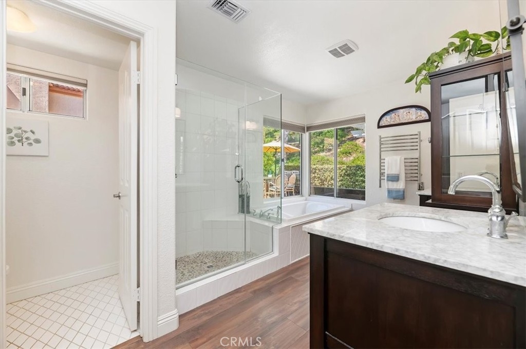 Beautiful, single-level home located in The Colony, a 55+ resort-style community! You can move right into this turn-key home. You'll appreciate all the upgrades/renovations which include wood shutters, engineered wood and vinyl plank flooring, neutral interior paint, stacked stone fireplace, updated kitchen, updated guest bathroom, and a remodeled primary bathroom with dual quartz vanities, walk-in shower with custom tile and pebble flooring, and a jetted bathtub! The beautifully designed and maintained landscaping creates a relaxing outdoor environment. The garage has lots of built-in cabinets and extra work area or storage space. The Colony is the perfect place to enjoy an exciting lifestyle with family and friends. Choose from various indoor and outdoor social events, sports, and clubs. See the spectacular clubhouse with a lounge, banquet room, library, gym, atrium, game rooms, and a hair and nail salon. A beautiful oasis swimming pool, two spas, an outdoor BBQ area, and lighted Tennis and Pickleball / Paddle Tennis courts with LED lighting. There are too many groups and activities to list! The HOA waters and maintains the front yard landscaping. The Cal Oaks Golf Course is located within the community. You and your home are protected within a 24-hour gate-guarded, master-planned community. The Colony is strategically located near shopping, medical centers, parks, the Temecula Valley wineries, and Pechanga Casino Resort and Spa! For the Home Photo Video Tour - Copy and Paste this Link to your favorite browser: https://thephotodewd.tf.media/x2227447