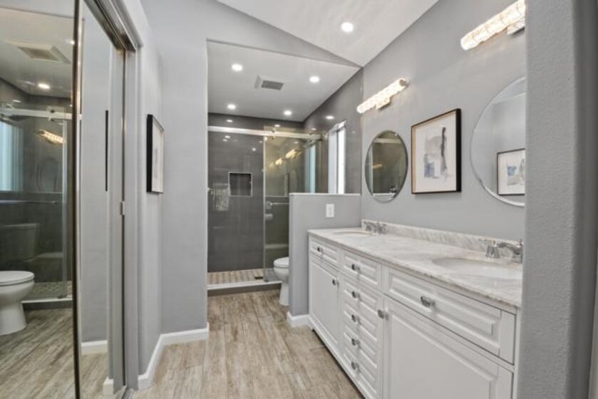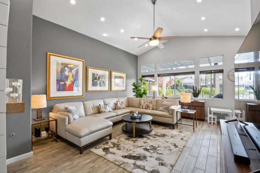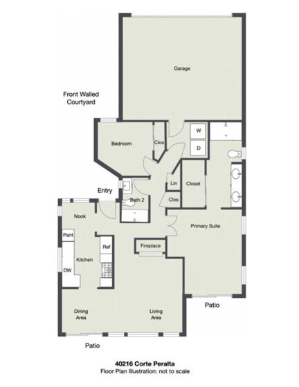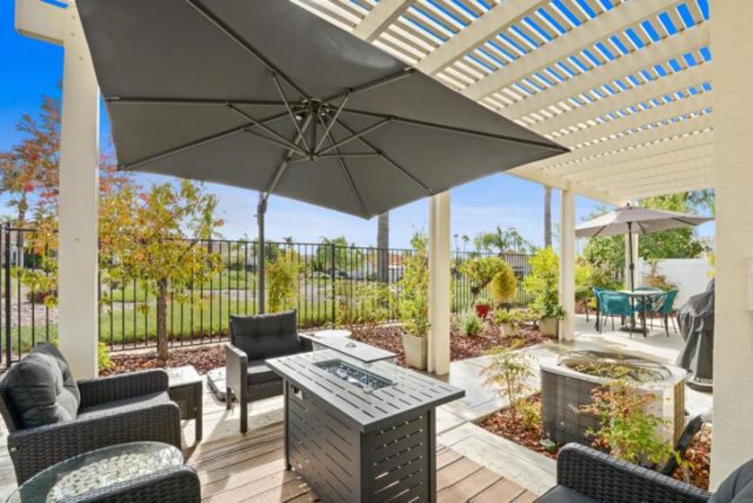 Designer Lives Here! It feels like a brand new home. Fully Upgraded 2 bedroom 2 bath Single-Story Greenbelt Home in The Colony - one of Southern California's most sought-after 55+ gated communities offering resort-style amenities and 24-hour guard-gated security. Stunning, meticulously remodeled home, where every square inch has been transformed with exquisite craftsmanship & attention to detail. Enjoy the convenience of nearby shopping and dining, including Historic Downtown Murrieta, as well as the renowned Temecula Wine Country...all just moments away. You enter the property through the beautiful landscaped gated walkway. Inside, you'll find tile wood-look flooring, vaulted ceilings, and an abundance of natural light in the expansive great room with an impressive fireplace featuring a custom shiplap surround. A large sliding glass door leads to your east-facing patio, perfect for morning coffee with tranquil greenbelt views, and afternoon shade for relaxing or entertaining. The Remodeled kitchen features crisp white cabinetry, added pantry & new Stainless appliances. Primary Suite Retreat - The spacious primary bedroom boasts a vaulted ceiling, ceiling fan & direct patio access. The Remodeled ensuite bathroom includes dual sinks, an oversized designer tiled walk-in shower, a walk-in closet & additional storage. ADDITIONAL HIGHLIGHTS: Recessed LED Lighting throughout. EV Charger installed in Garage. Guest bathroom is remodeled with stunning designer tile. Step outside onto your private patio and take in the views of the open space that lies just beyond your home. Relax under the Alumawood cover & delight in the presence of your very own peach, lemon, and orange trees. Say goodbye to the hassle of front yard maintenance, as the HOA takes care of it all, including watering the lawn. COMMUNITY: The state-of-the-art clubhouse offers a grand ballroom, fitness center, library, beauty salon & billiards room. The clubhouse serves as the vibrant heart of this community. Outdoor enthusiasts will find a wealth of recreational options at their fingertips. Swimming pool, engage in friendly matches on the pickleball, tennis, bocce ball & shuffleboard courts. And for golf enthusiasts, the neighboring Cal Oaks Golf Course winds its way through the community, providing magnificent views & endless enjoyment. The Colony homeowners voted to purchase the golf course & if the HOA wins the bid, there will be a ONE-TIME assessment of $1,995 per home.