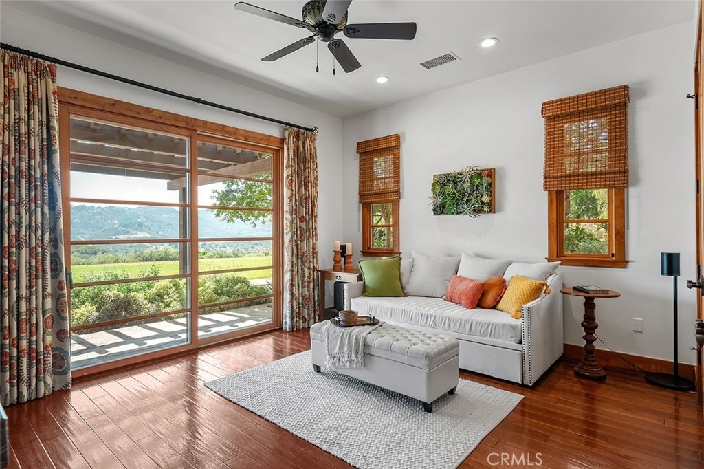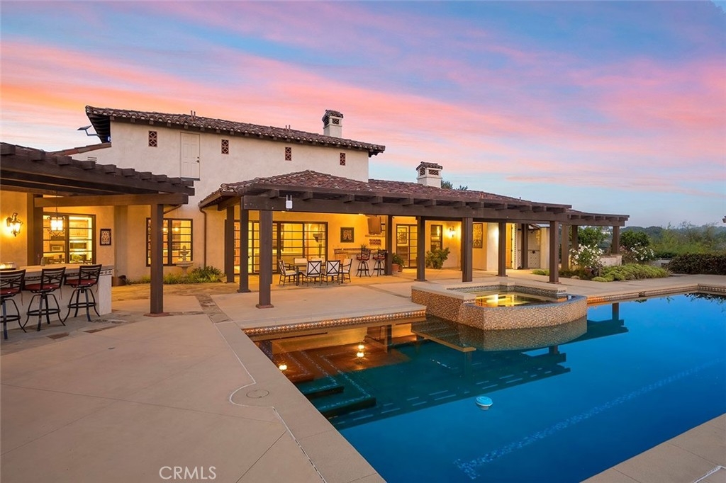 Welcome to “HARMONY RANCH” – A SANCTUARY…AND CROWN JEWEL OF THE SANTA ROSA PLATEAU! Masterpieces with these amenities are not only unique in this marketplace, but only rarely come to market. To build this exquisite estate again would require years in the creative process, lengthy custom construction, expansive usable land with panoramic views, and would cost millions over this asking price! Lived in very gently since its inception, it is available now to the most discriminating buyers. THIS IS A LIFESTYLE!…From the moment you enter the security gate, the ambiance of 28+ private acres envelopes you, leading you on a peaceful journey past mature landscaping, equestrian pastures, a custom expandable 4-stall barn, half bath, chicken coop with AC & lighted arena to the exquisite 5-BD single-story Mediterranean home, flanked by mature olive trees and adorned with an authentic courtyard with Spanish-tiled fireplace, fountain & covered seating. Drive further to find a charming vineyard, prolific & diverse orchard & second access gate. Step inside the luxurious estate to find upscale details throughout, including high-end flooring, quality custom windows & doors, top-of-the-line appliances, Taj Majal Quartzite counters, designer fixtures, beamed ceilings, recently installed wifi indoor/outdoor sound system, wifi thermostats & security, 2 primary suites – each with exterior access and one with a fireplace, soaking tub with view, steam shower & additional outdoor half bathroom/shower. The 2 garages with fresh epoxy flooring provide room for 5 cars, plus workspaces. Entertain in the stylish backyard with 100% privacy, a sprawling grassy lawn, the 60’x20’ saltwater lap pool, infinity edged spa, multiple covered seating areas, a well-equipped outdoor kitchen, custom lighting and spellbinding unobstructed views of sunsets over the neighboring Cleveland National Forest mountains. A 2nd future building pad, your own private water well for irrigation (new extensive wifi-enabled watering systems), multi-camera security system, paid-for Solar & 30kW Battery system top off the long list of amenities for this one-of-a-kind estate, which is nothing short of a SANCTUARY – CONNECTING LUXURY LIVING TO AWE-INSPIRING NATURE IN A WAY FEW GET TO EXPERIENCE! ****Discover the Santa Rosa Plateau: 5-ac minimum, minutes to town, miles of trails & 1000s of acres of Ecological Reserve…All less than 1.5 hours from LA, SD, OC, Palm Springs & Big Bear. ***SEE VIDEO & SUPPLEMENTS FOR MORE INFO***